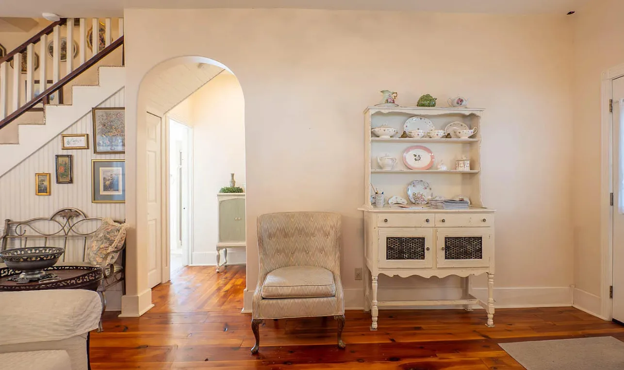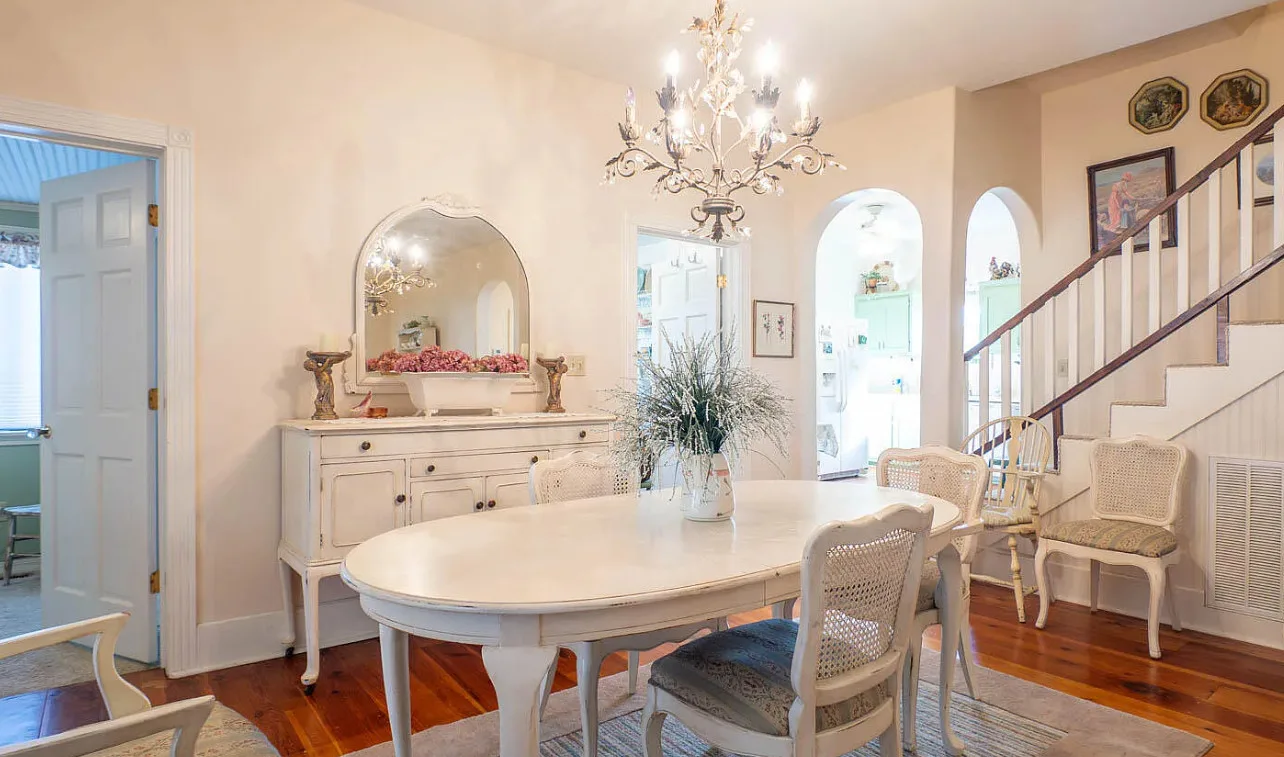 Pretty in pink! Known as Grandma’s House, a successful Airbnb that was featured in Avenues Magazine in 2018. It was built in 1900. It is located in Mammoth Spring, Arkansas. The house features a covered front porch, large back deck, crown moulding, chair rails, wide baseboards, some original wood floors, french doors, bead board and a jetted tub. Three bedrooms, two bathrooms and 1,690 square feet. $249,900