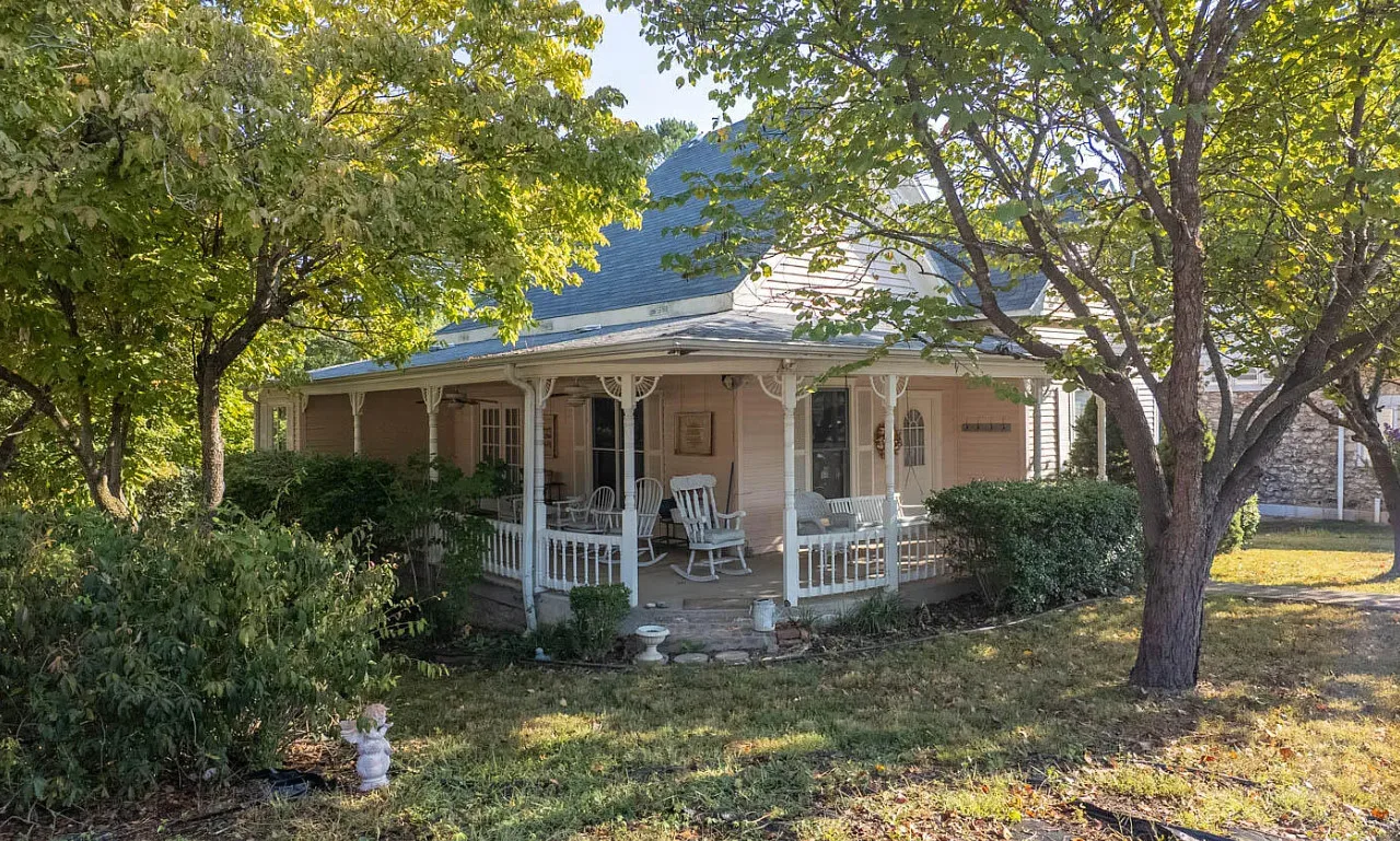 Historic Gem in the OzarksStep back in time with this enchanting Victorian-style home, proudly standing for more than a century. Built prior to 1909–as seen in a historic photo of the neighboring church’s construction–this residence blends timeless architecture with modern comforts. A classic wraparound porch welcomes you, perfect for coffee, conversation, or watching small-town life. Inside, the spacious living room offers soaring 10-foot ceilings and hardwood flooring reclaimed from a local shop, adding a unique story to the home’s legacy. The living room flows seamlessly into the dining area with access to a guest bedroom, laundry room with outside entry, and a kitchen boasting abundant cabinetry and updated appliances including refrigerator, stove, microwave, and dishwasher. Step out from the kitchen to the back deck, ideal for grilling or entertaining in the shaded backyard.The property is partially fenced and landscaped with mature trees, while a detached garage with concrete floors and electric provides both parking and shop potential. Back inside, another main-level bedroom and a custom-tiled bathroom deliver comfort and charm, featuring a jetted tub and walk-in shower. Upstairs is currently used as a third bedroom and includes two cozy alcoves for sleeping, play, or office space, plus a full bath and extra storage. The small unfinished basement houses utilities but also doubles as a storm shelter or storage.This home carries a rich legacy–once ”Grandma’s house,” later ”GG’s Cottage,” a successful Airbnb featured in Avenues magazine in 2018. Just a five-minute walk to the famed Spring River with world-class trout fishing and floating, the location blends small-town Ozarks living with outdoor adventure. Whether you’re seeking a family home or an income-producing investment, this historic property offers character, charm, and opportunity.