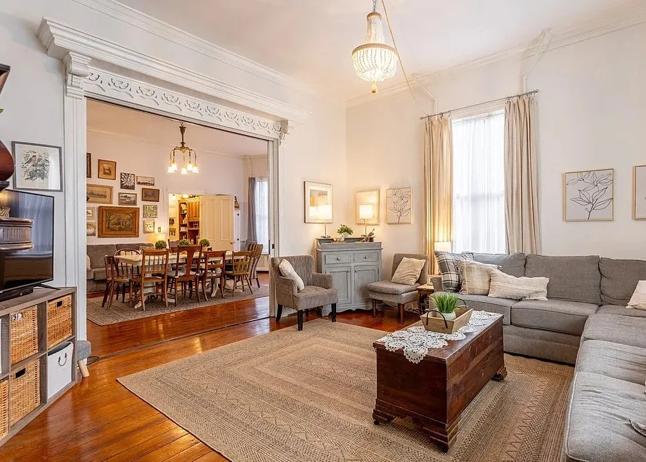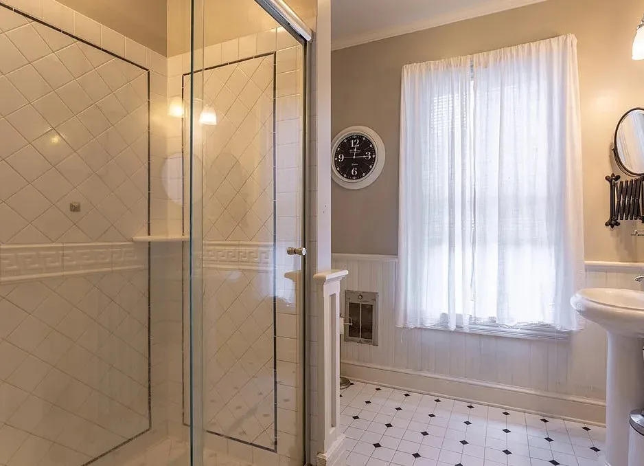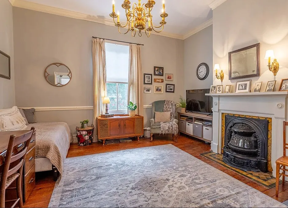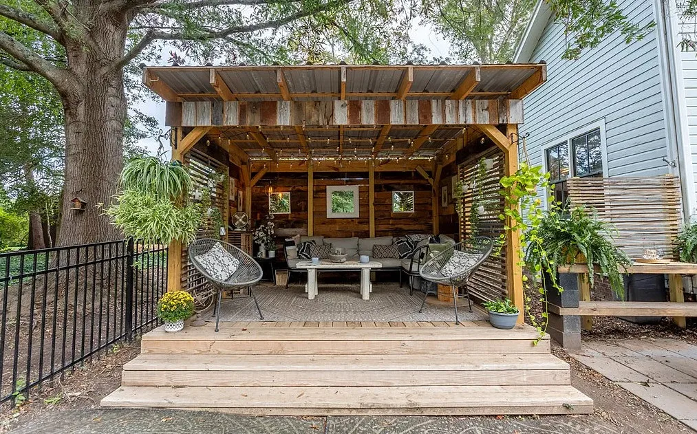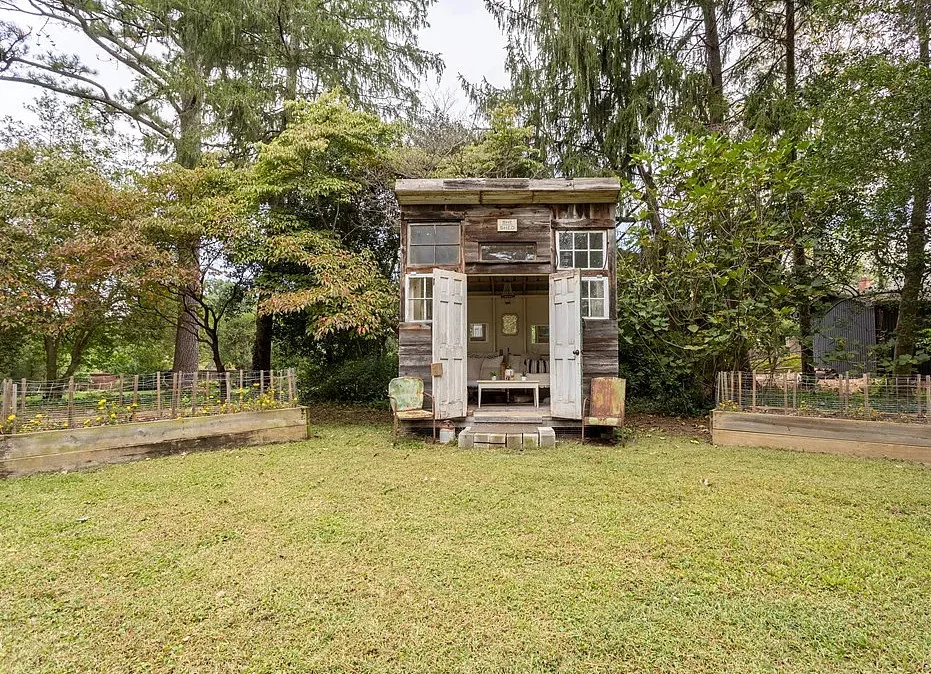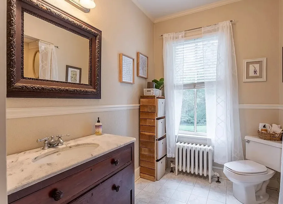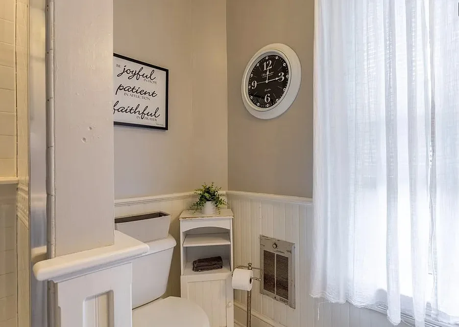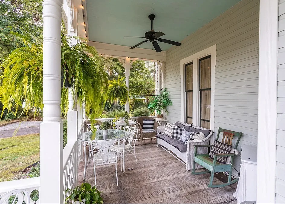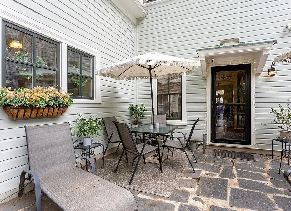 This house has really pretty details inside! The house was built in 1888. It is located on 1.04 acres in South Boston, Virginia. The house features a covered front porch, double front doors, wood floors, chair rails, baseboards, crown moulding, pocket doors, built-in china cabinet, wainscoting, tall ceilings, a lot of natural light, spacious kitchen and updated bathrooms. There is a backyard patio and a she-shed. This is a big house! Five bedrooms, five bathrooms and 4,608 square feet. $398,500