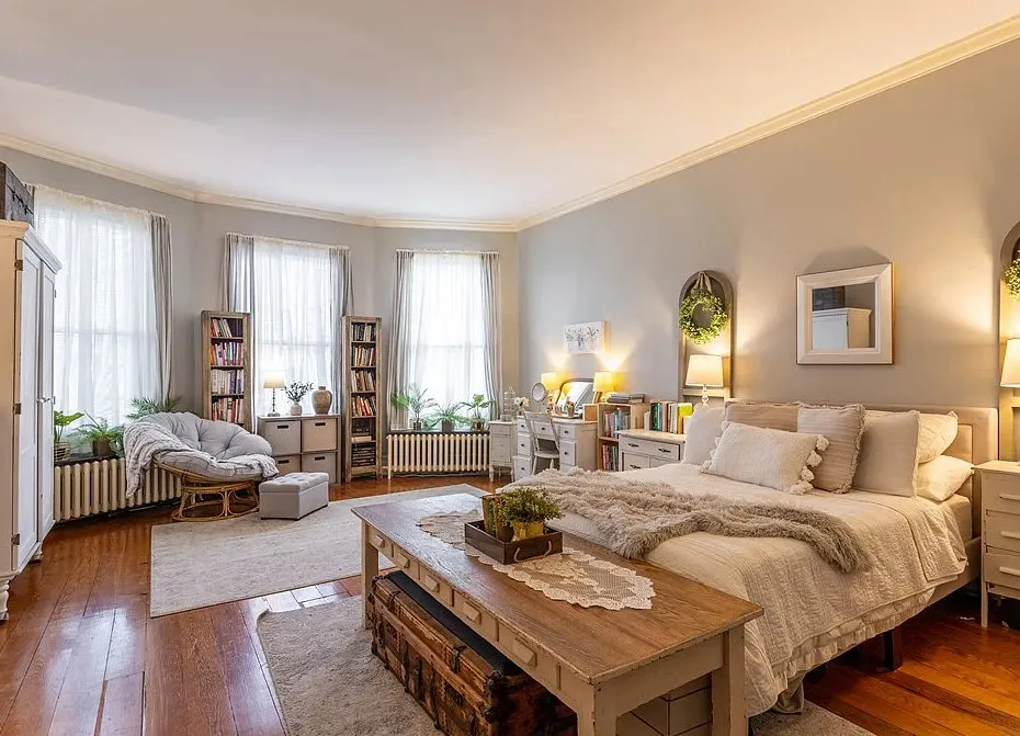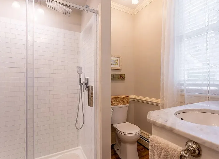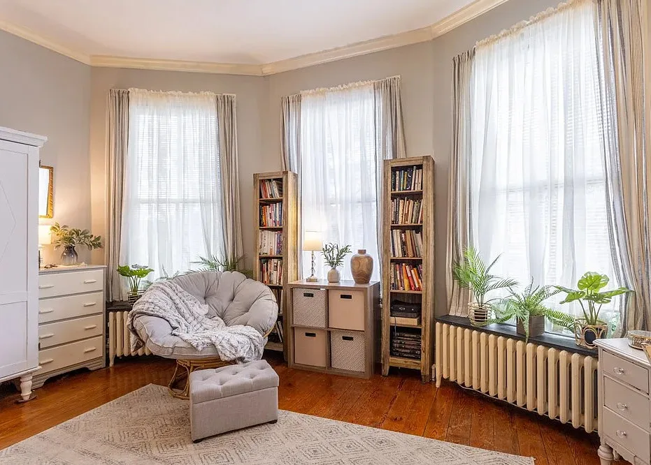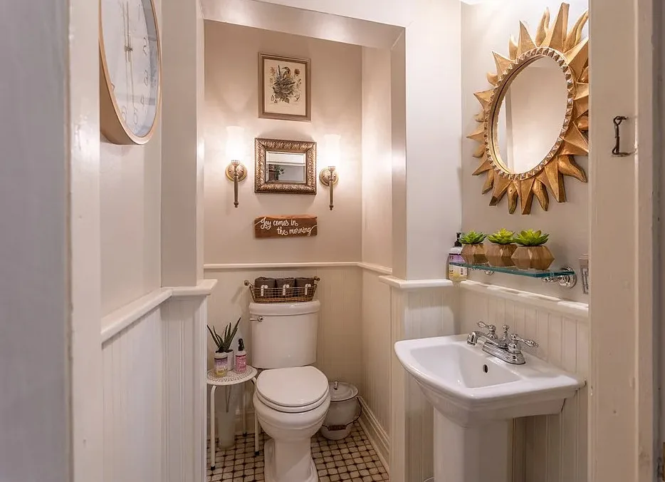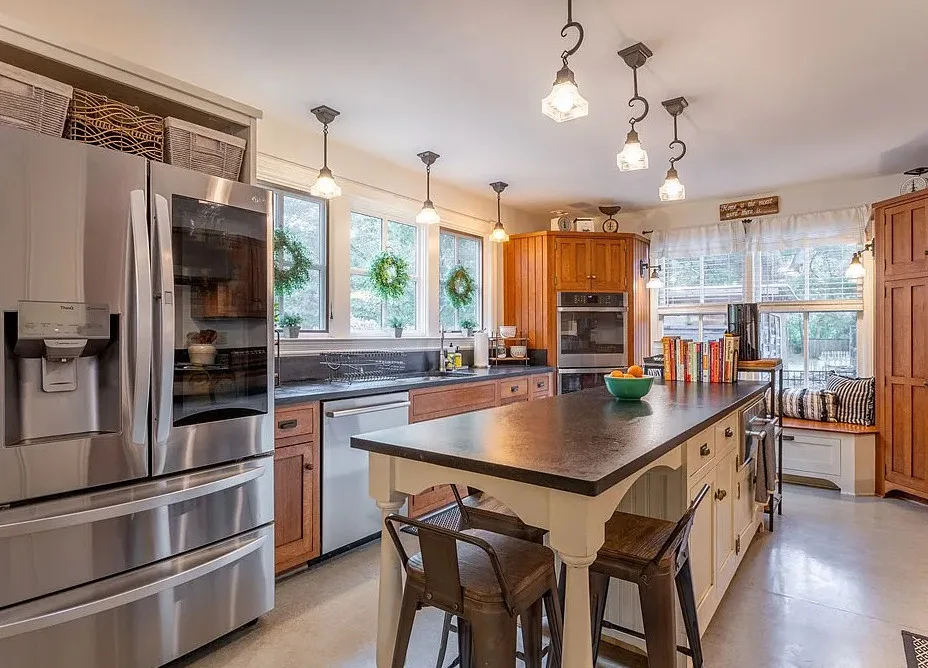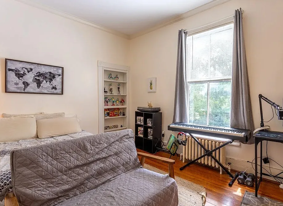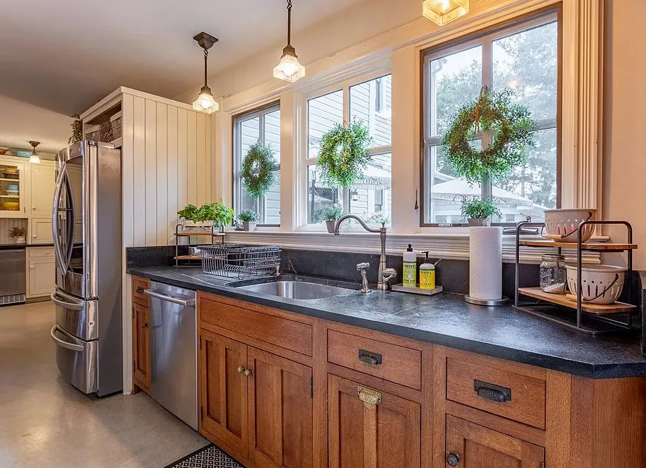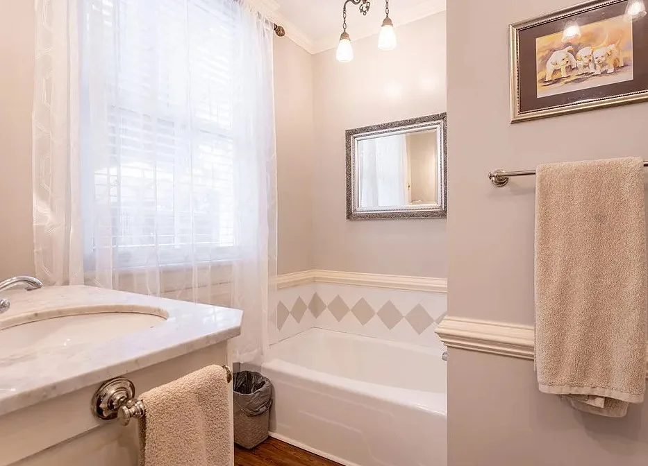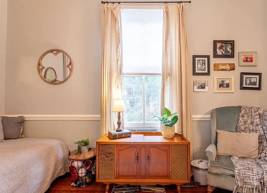 This house has really pretty details inside! The house was built in 1888. It is located on 1.04 acres in South Boston, Virginia. The house features a covered front porch, double front doors, wood floors, chair rails, baseboards, crown moulding, pocket doors, built-in china cabinet, wainscoting, tall ceilings, a lot of natural light, spacious kitchen and updated bathrooms. There is a backyard patio and a she-shed. This is a big house! Five bedrooms, five bathrooms and 4,608 square feet. $398,500
