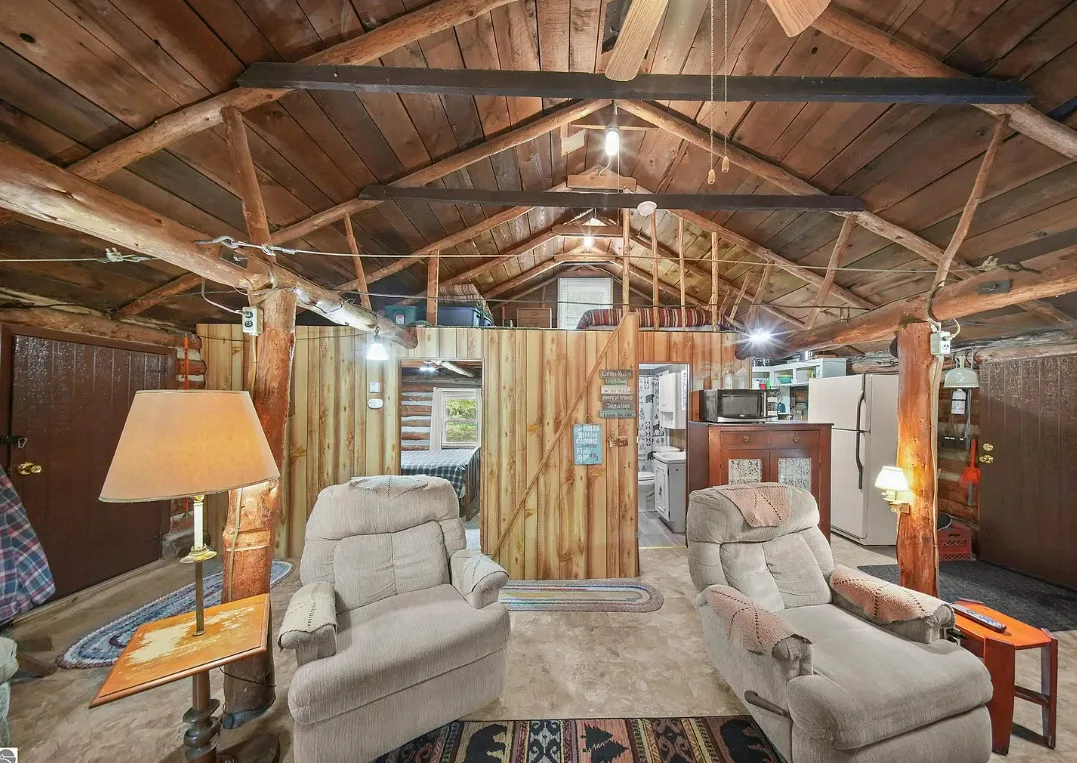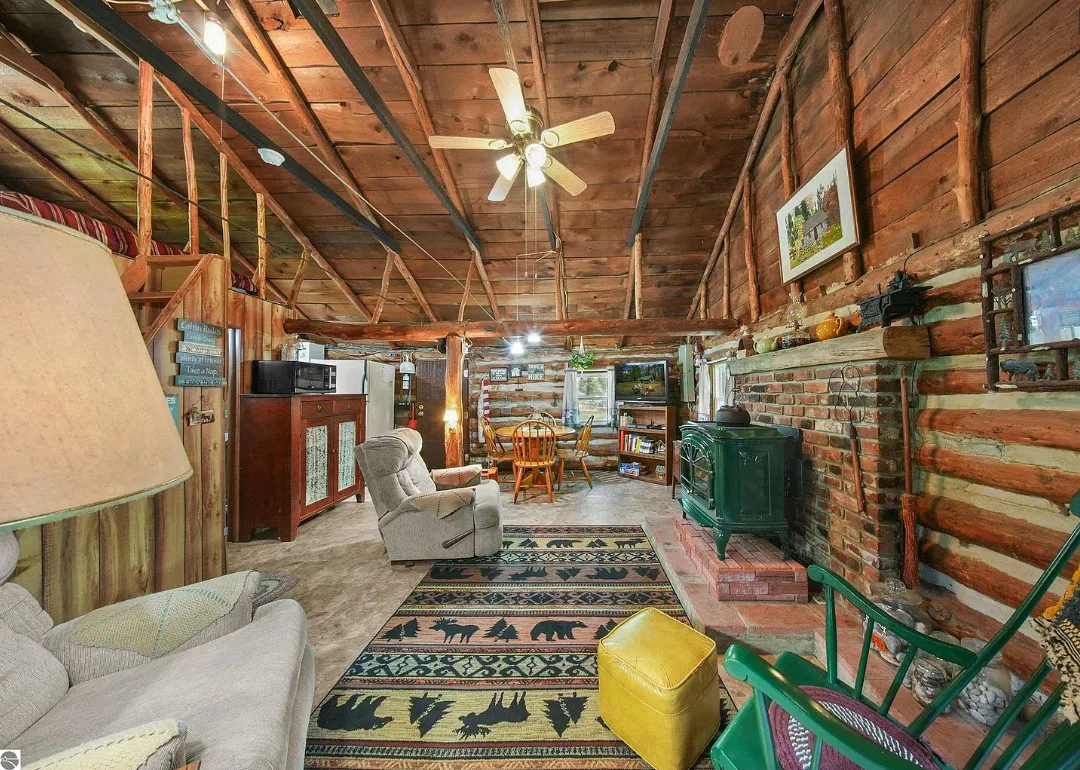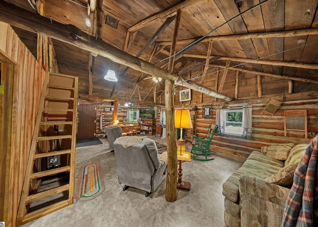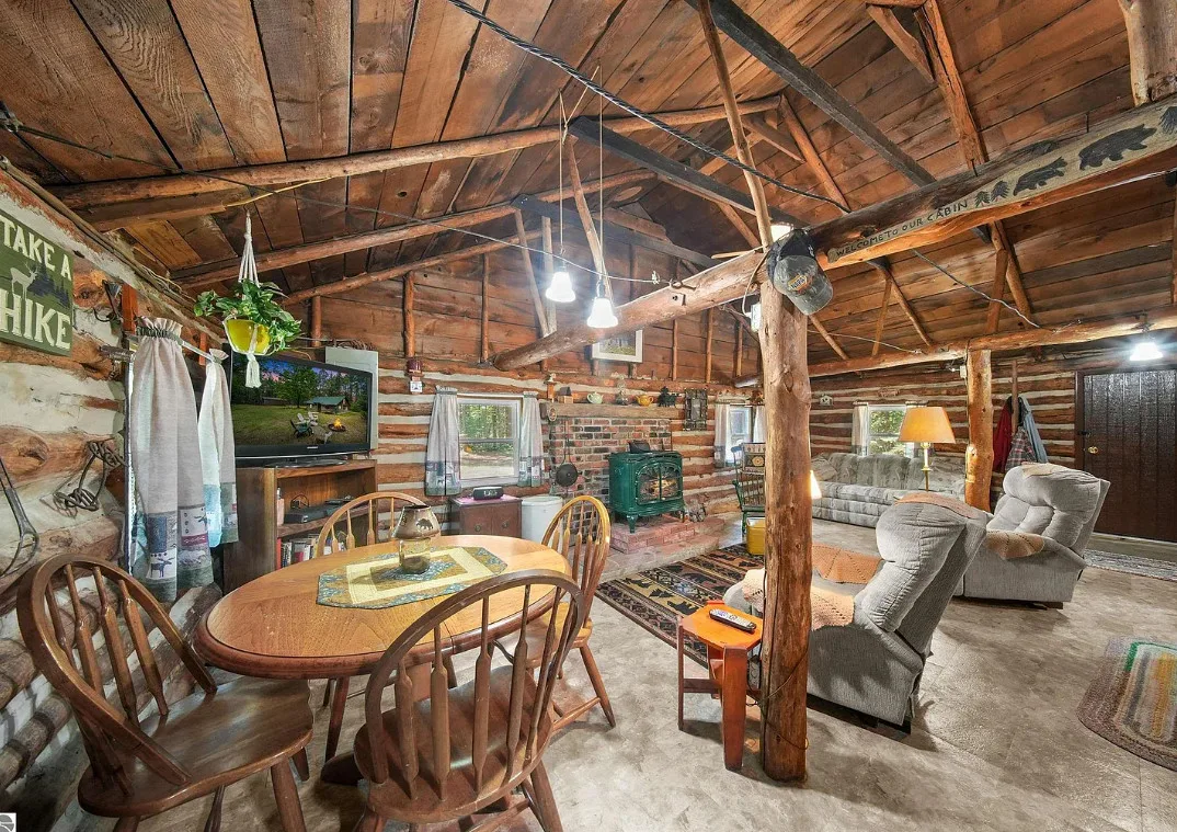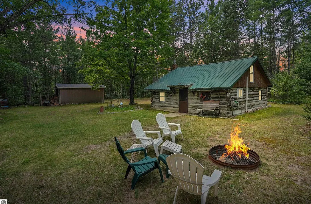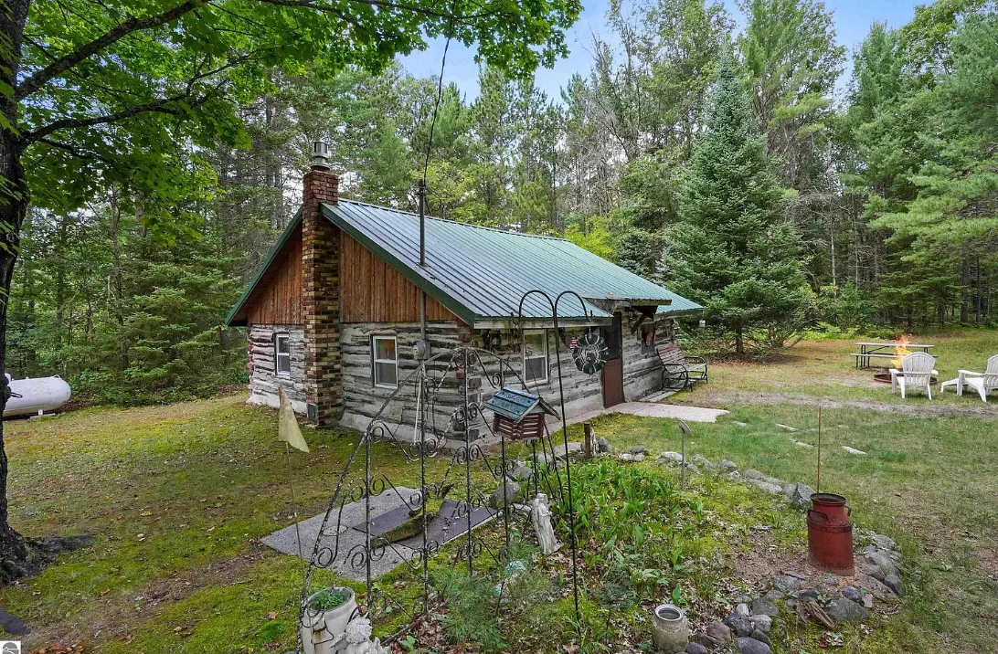 Step back in time and embrace the charm of this custom-built log cabin that has been lovingly maintained and is in exceptional condition. Tucked away among mature trees and surrounded by peace and nature, this one-bedroom plus large loft retreat offers the perfect blend of rustic warmth and modern comfort. The cozy interior features beautiful exposed log beams, a propane fireplace, and a welcoming atmosphere that instantly makes you feel at home. Furnishings can be included, with only a few personal exclusions, making it easy to start enjoying from day one. Outdoor enthusiasts will love the prime location—state land borders two sides, giving you direct access to endless adventures. The ORV trail is right outside your door, the North Country Trailhead is just a short drive away, and you’re minutes from the Manistee River for world-class kayaking and fishing. Five picturesque lakes are within close reach, including Fife Lake, Rennie Lake, and Spider Lake, offering boating, swimming, and relaxation in every direction. Recent updates include a 4″ well, an updated drainfield, and a garage with lean-to for extra storage of all your recreational gear. The owned propane tank adds value and convenience. Outside, you’ll find a fire pit for evening gatherings under the stars, an outhouse for rustic charm, and the serene sounds of birdsong to start your mornings. Whether you’re looking for a weekend escape, a hunting base camp, or an “Up North” getaway to make memories with family and friends, this property delivers. Pack your bags—your Northern Michigan adventure starts here!