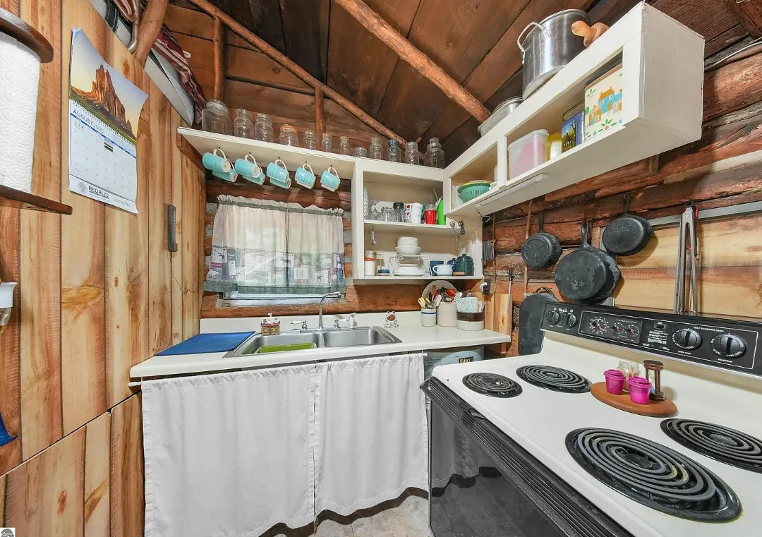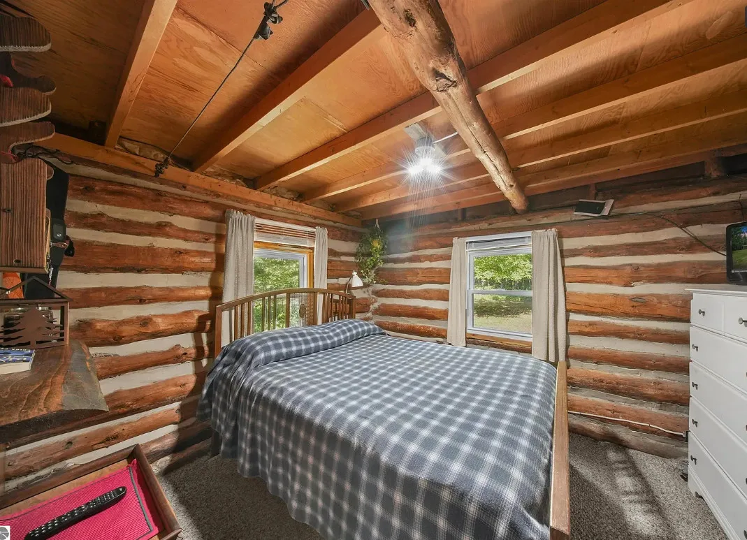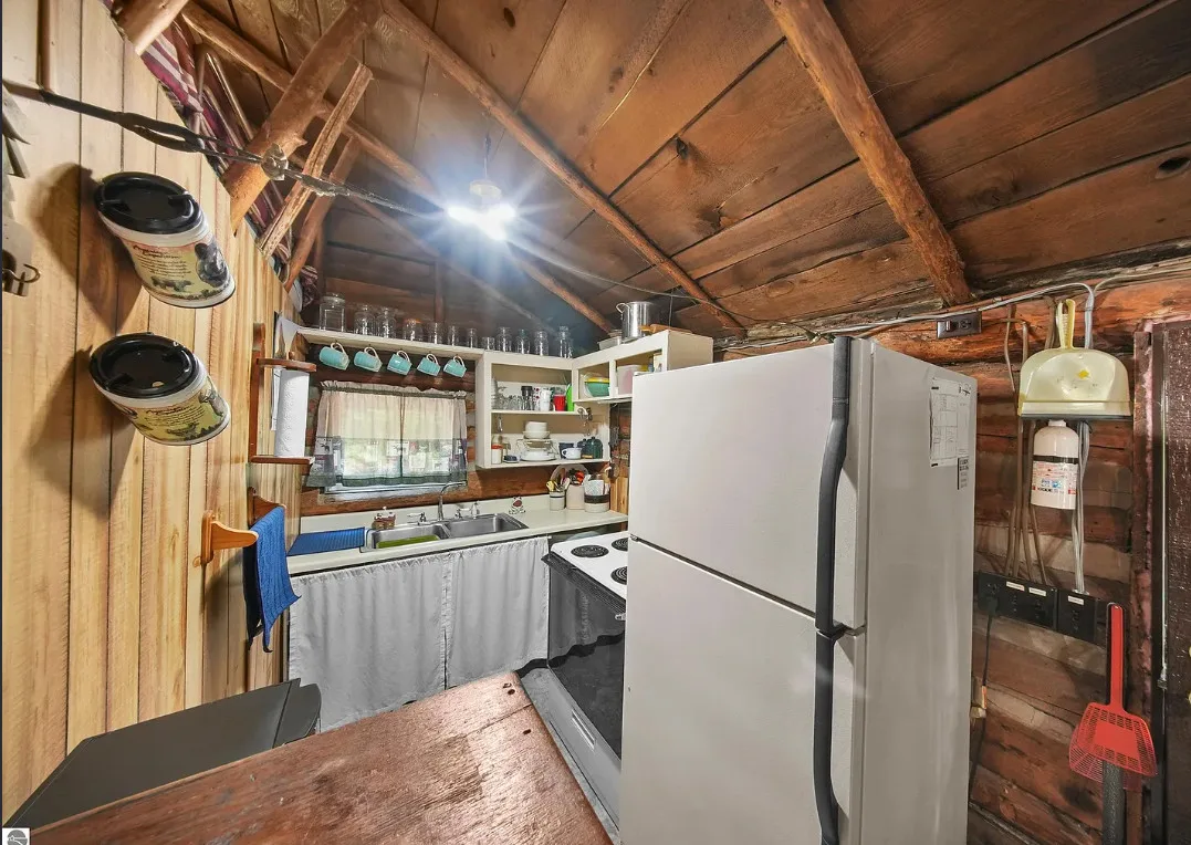 This would make a great getaway spot or weekend place! The cabin was built in 1937. It is located on 5.65 acres in Fife Lake, Michigan. The house features vaulted ceiling, exposed log walls, brick hearth with wood stove and a log exterior. There is a detached storage shed on the property. There are trails and the river nearby. One bedroom, one bathroom and 552 square feet. $150,000