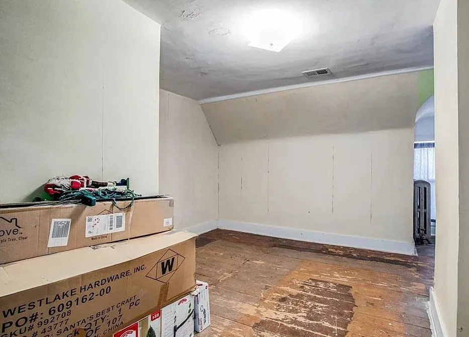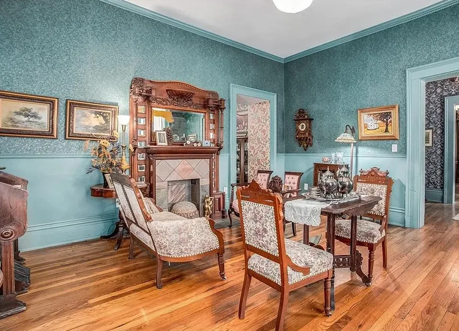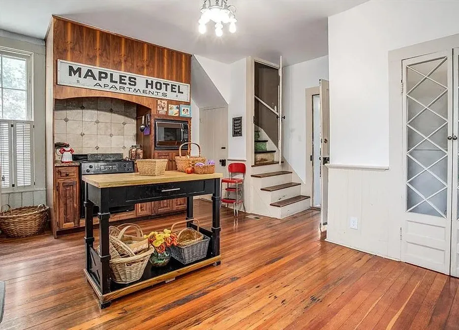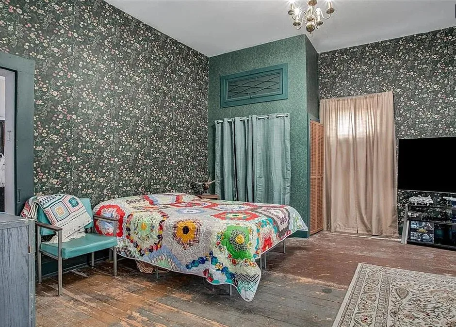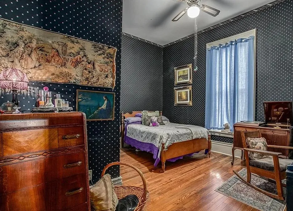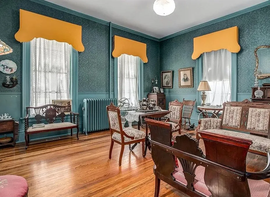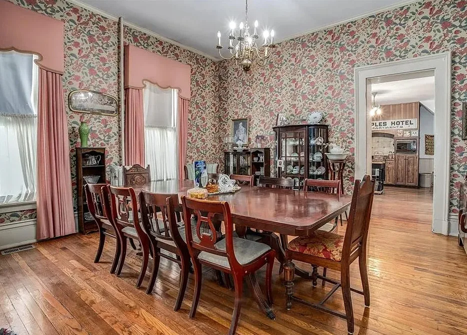 The Porter-Chiles Home is a big house with over 5,000 square feet of living space! In the early 20th century it was known as the Maples Hotel. The Porter-Chiles house was built in 1860. It is located in Independence, Missouri. The house features a large covered front porch, wood floors, wide baseboards, tall ceilings, two staircases, vintage light fixtures, crown moulding, library with built-in bookshelves and a spacious kitchen with a back staircase. The third floor has five bedrooms and some have the original lettering from the Maples Hotel era. Nine bedrooms, four bathrooms and 5,166 square feet. $395,000