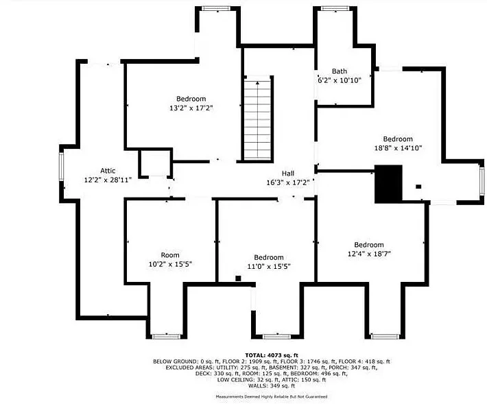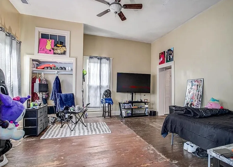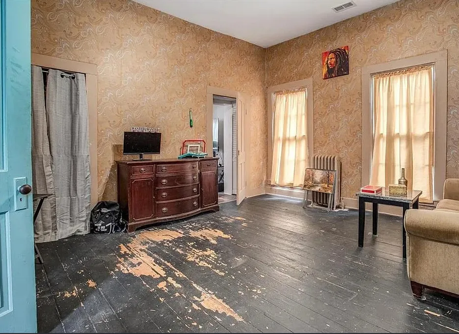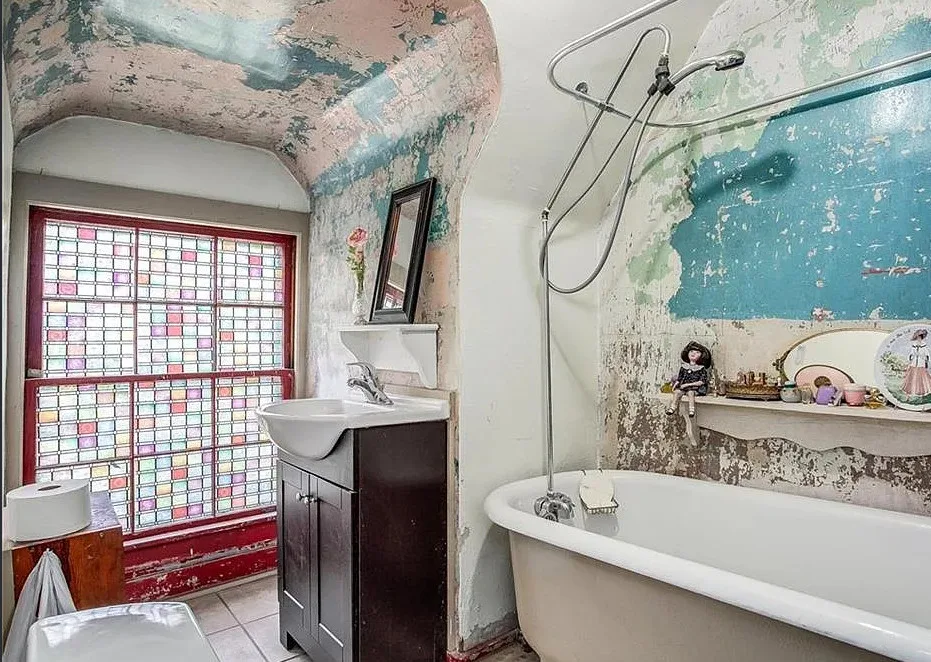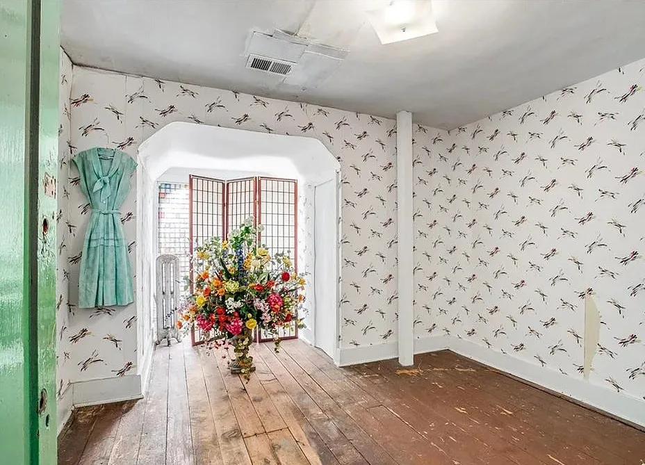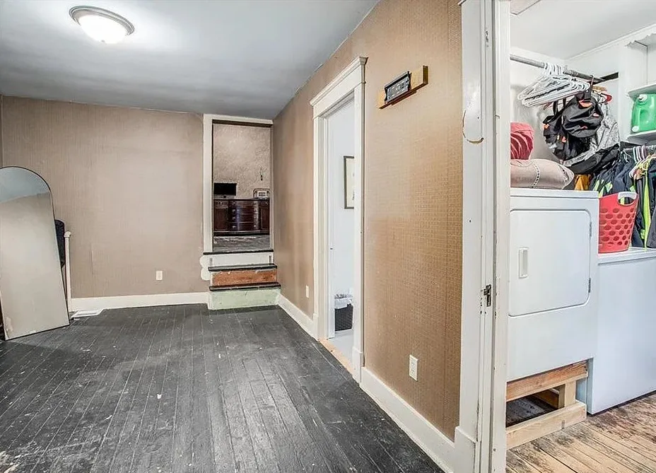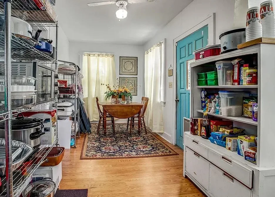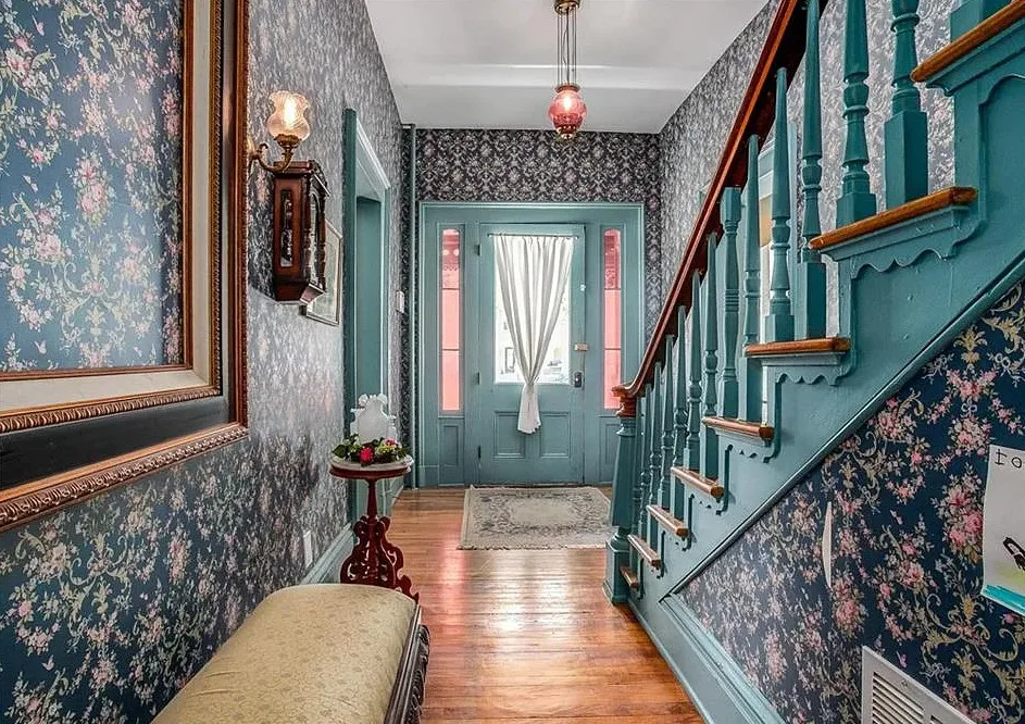 The Porter-Chiles Home is a big house with over 5,000 square feet of living space! In the early 20th century it was known as the Maples Hotel. The Porter-Chiles house was built in 1860. It is located in Independence, Missouri. The house features a large covered front porch, wood floors, wide baseboards, tall ceilings, two staircases, vintage light fixtures, crown moulding, library with built-in bookshelves and a spacious kitchen with a back staircase. The third floor has five bedrooms and some have the original lettering from the Maples Hotel era. Nine bedrooms, four bathrooms and 5,166 square feet. $395,000