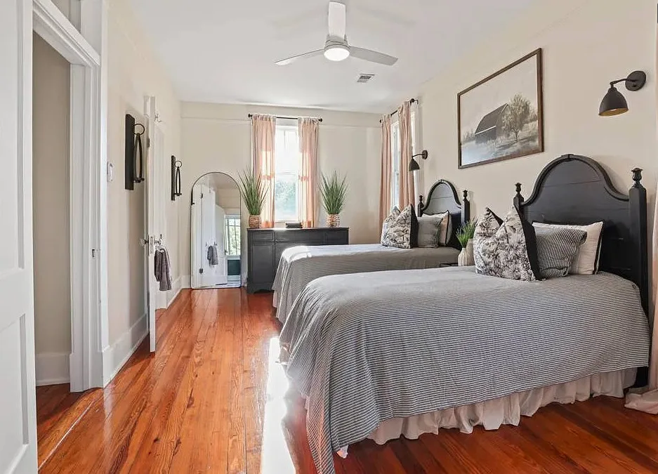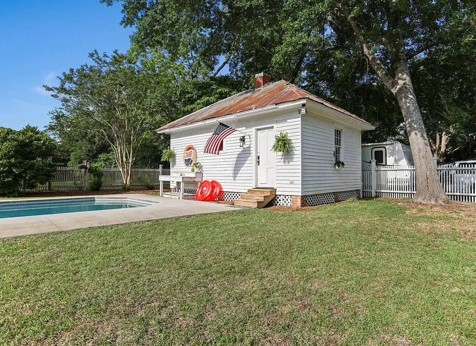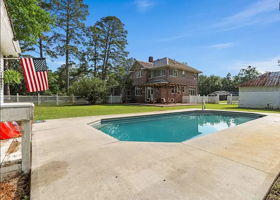BACK TO MARKET DUE TO NO FAULT OF SELLER! Welcome to The Benjamin Peeples Home – a timeless Southern treasure nestled in the quaint town of Estill, SC. This beautifully preserved historic residence blends vintage charm with modern comfort, offering a unique opportunity to own a piece of Lowcountry history. This rare gem is an exquisitely preserved 1915 Southern Colonial home that offers a timeless blend of historic charm and modern refinement. Nestled in the heart of Estill on 1.8 acres, this stately 5-bedroom, 3.5-bathroom residence spans 3,869 sq ft and captivates from the moment you arrive. Step inside to be greeted by breathtaking tiger oak wood trim that wraps every doorway, window, and staircase with warmth and grandeur. The original hardwood floors, high ceilings, and paneled wainscoting speak to the craftsmanship of a bygone era, while tasteful upgrades provide the comfort of today. The expansive living room features rich woodwork, intricate fireplaces, and contemporary chandeliers that offer a striking contrast. The updated kitchen is a chef’s delight, boasting sleek black cabinetry, stainless steel appliances, quartz countertops, a center island cooktop, and a dramatic tile backsplash-perfectly marrying historic character with modern convenience. The spacious floor plan includes multiple living areas, second story bedrooms, and a welcoming front porch perfect for enjoying quiet evenings or morning coffee. The home’s layout includes a sunlit Carolina room with wraparound windows-ideal as a reading or breakfast nook, office, or guest space-as well as spacious bedrooms with unique color palettes, designer lighting, and stunning wood flooring throughout. The bathrooms are thoughtfully updated while respecting the home’s period details. Step outside to your own private oasis: a beautiful in-ground pool accompanied by a charming pool house complete with bedroom and bathroom facilities, making it ideal for hosting gatherings or simply relaxing in the Southern sunshine. Set on a generous nearly two acre lot with mature trees and lush landscaping, the property also boasts a second large backyard area or secondary lot with potential for a garden, outdoor entertaining space, boat or large equipment storage, or even a future second house. There are two additional outdoor storage buildings, one used primarily for pool equipment, the other a two-story garage that could be used as a versatile workshop or gardening storage. The immediate fenced in backyard and swimming pool area also features a large brick terrace patio with a tall custom wood pergola above. Both the side screen porch and the kitchen / mud room have exterior doors that feed into this private and cozy back area. Additional features: 5 original fireplaces, grand staircase with tiger oak balustrade, expansive windows that flood the home with natural light, butler’s closet with wet bar / ice maker, secondary staircase, plus third staircase to cool attic access area with spray foamed roof deck, slate roof, with architectural shingles above porch and metal roofing on exterior buildings, large wrap-around porch with screened porch area, 1,200+ sq ft repurposed bonus buildings (3) including pool house / garage / workshop / equip shed / animal pen area, pool house / guest studio apartment features its own bedroom/bathroom/living area and fireplace, potential to be purchased fully furnished and turn-key! No HOA, walking distance to Estill’s historic town center. Located in the heart of Estill, this is the perfect blend of small-town charm and modern conveniences. Whether you’re looking for a peaceful retreat, Bed & Breakfast, or character-filled family home, 827 Fourth St offers a rare blend of history, charm, and potential in a tranquil Southern setting. The furnishings in place have the option to be included to make this a turn-key, ready to stay property. It’s listed on the S.C. Department of Archives and History as the "Benjamin Peeples House".