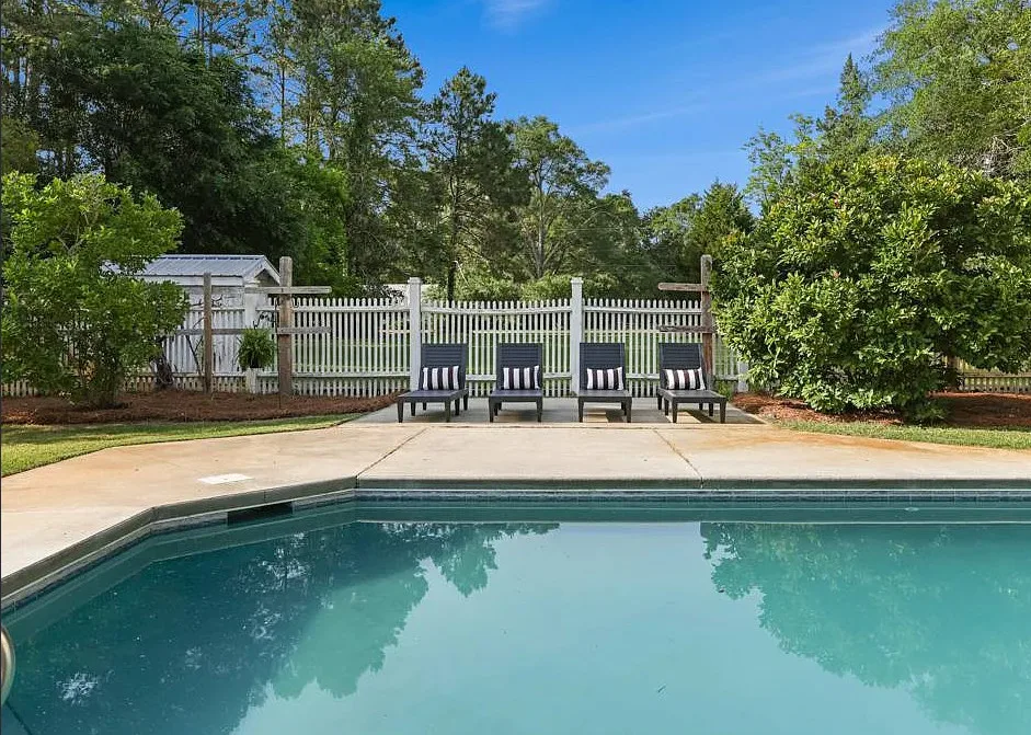 This is a lot of house for the money! Pretty pool! There is a pool house and a guest apartment. The Benjamin Peeples House was built in 1925. It is located on 1.8 acres in Estill, South Carolina. The house features a large covered front porch, porte cochere, pretty wood floors, grand staircase, crown moulding, wainscoting, french doors, sunroom and a claw foot tub. There is a beautiful back patio, in-ground pool, pool house, garage with guest apartment. Five bedrooms, four bathrooms and 3,869 square feet. $599,000 New price: $549,000