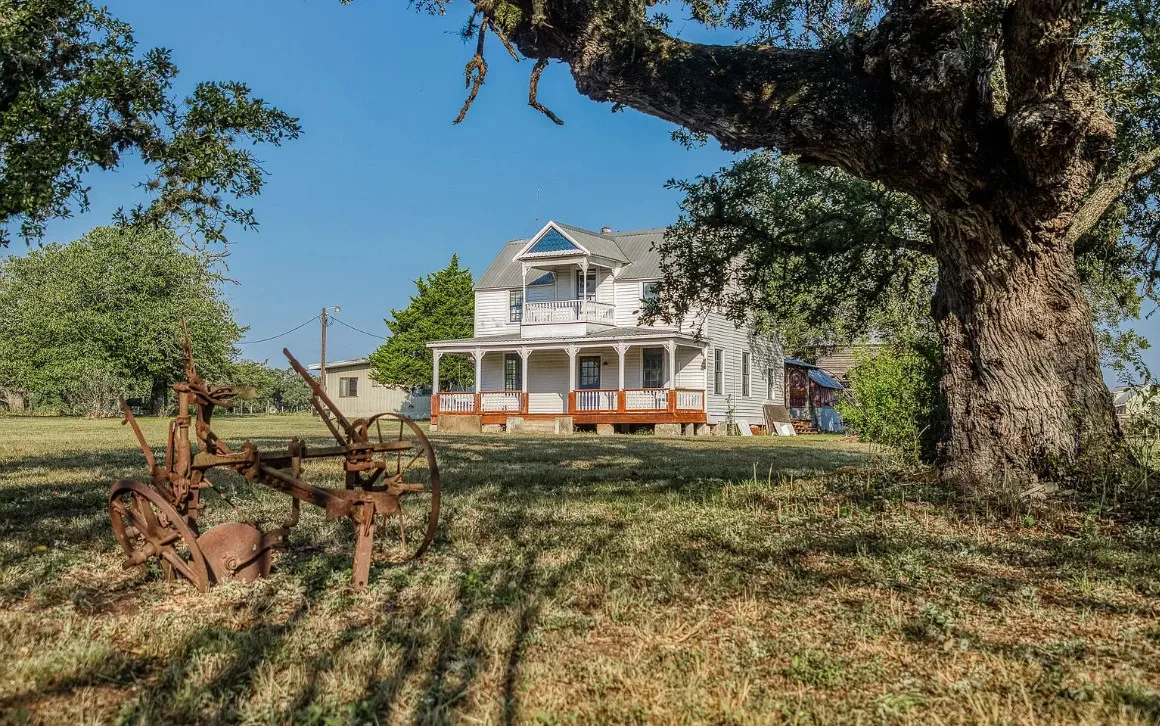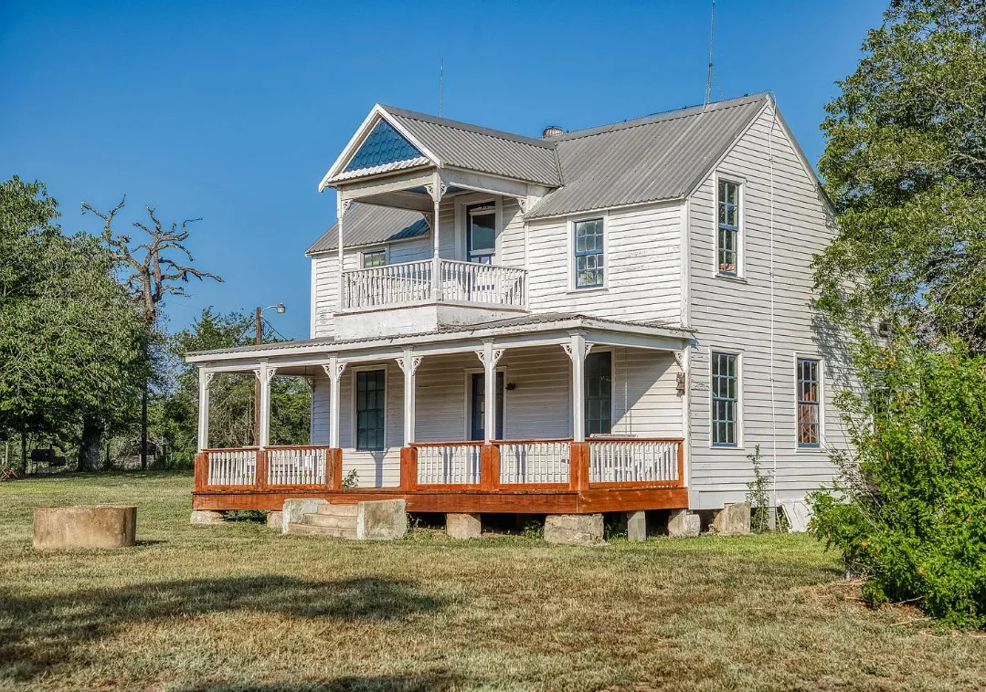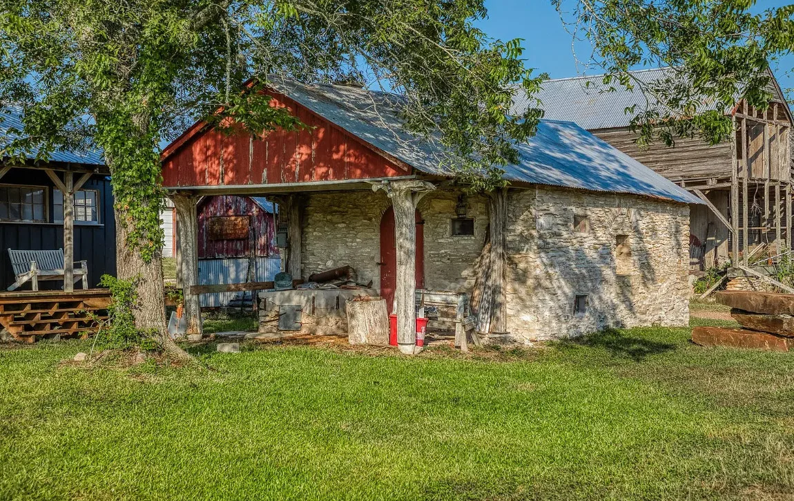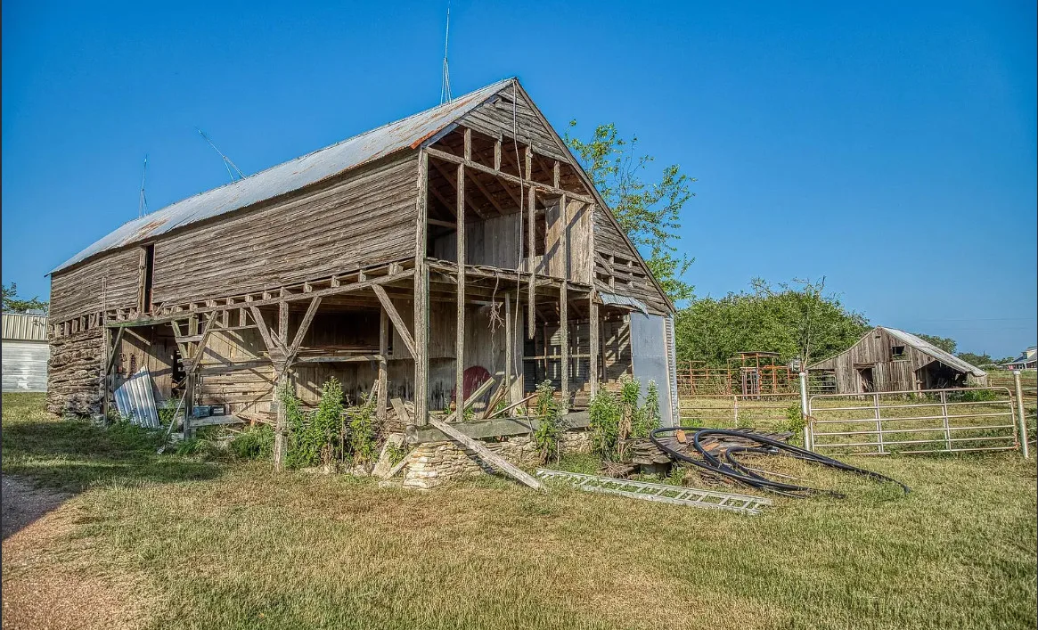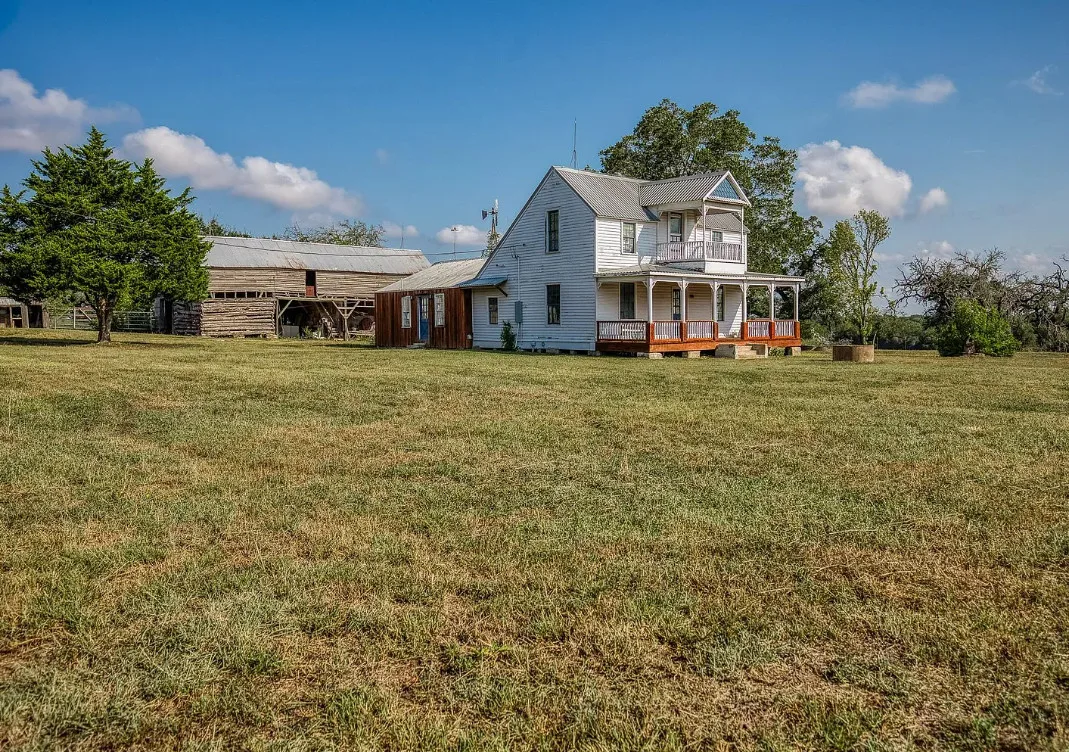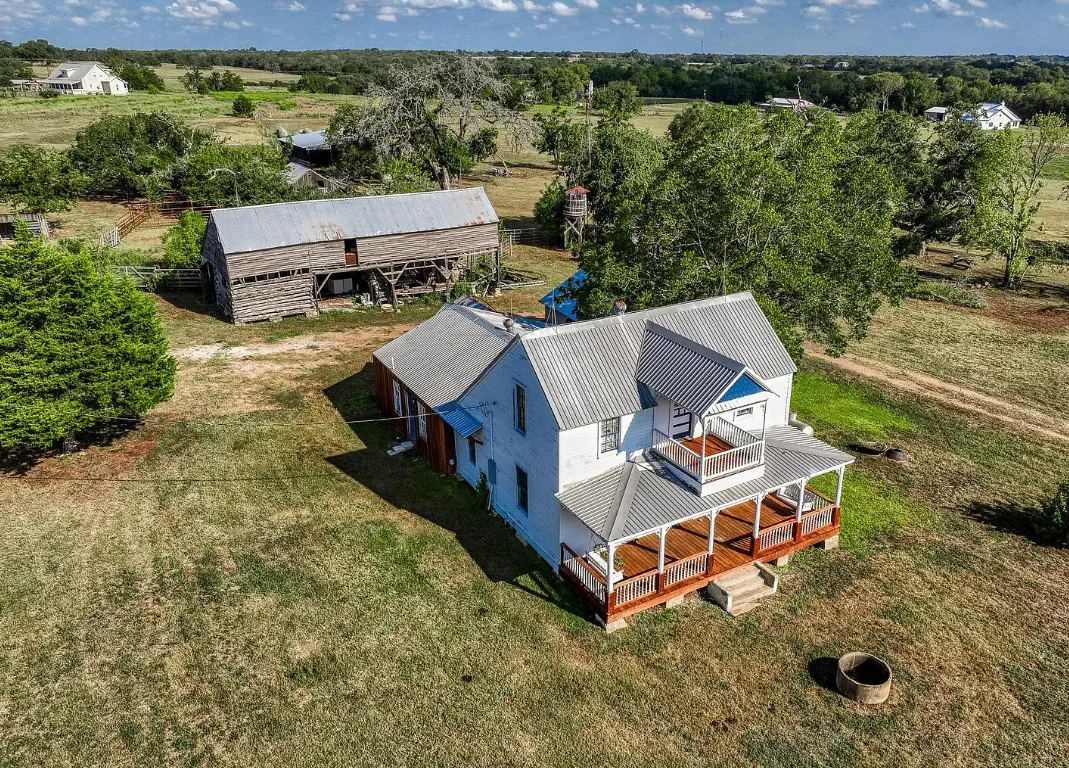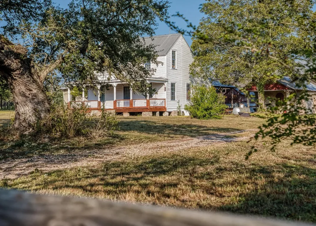 CALLING ALL CHIP & JOANNA TYPES for this Historic, 100+ year old Diamond in the Rough on 5-Acres! This dream restoration project could be your enchanting retreat just 12 miles from charming Round Top square! Main home awaits a buyer w/ heart & passion to breathe new life into it’s historic bones. Said to have been built in 1894, the old farmhouse features 3 bedrooms & wraparound upper & lower porches for savoring spectacular TX sunsets. Bonus structures: historic stone smokehouse (transform it to cozy she-shed or wine room for mahjong nights, or home office), antique log barn (rebuild using antique barn wood to be guest house or ultimate entertainment space), large metal garage offers 2 car bays, RV bay, huge workshop & apartment w/ 1 bed/bath. Property is partially fenced. On a quiet paved road under canopy of trees for pure Texas charm upon arrival. More than a property; endless possibilities to create your heartfelt vision for a slice of heaven!