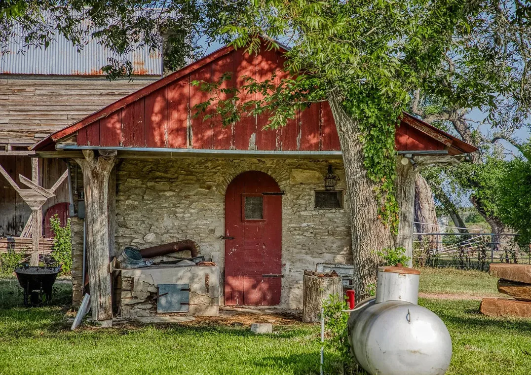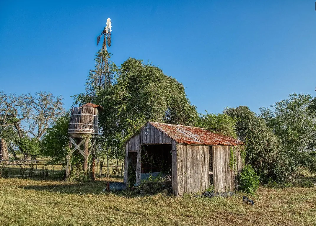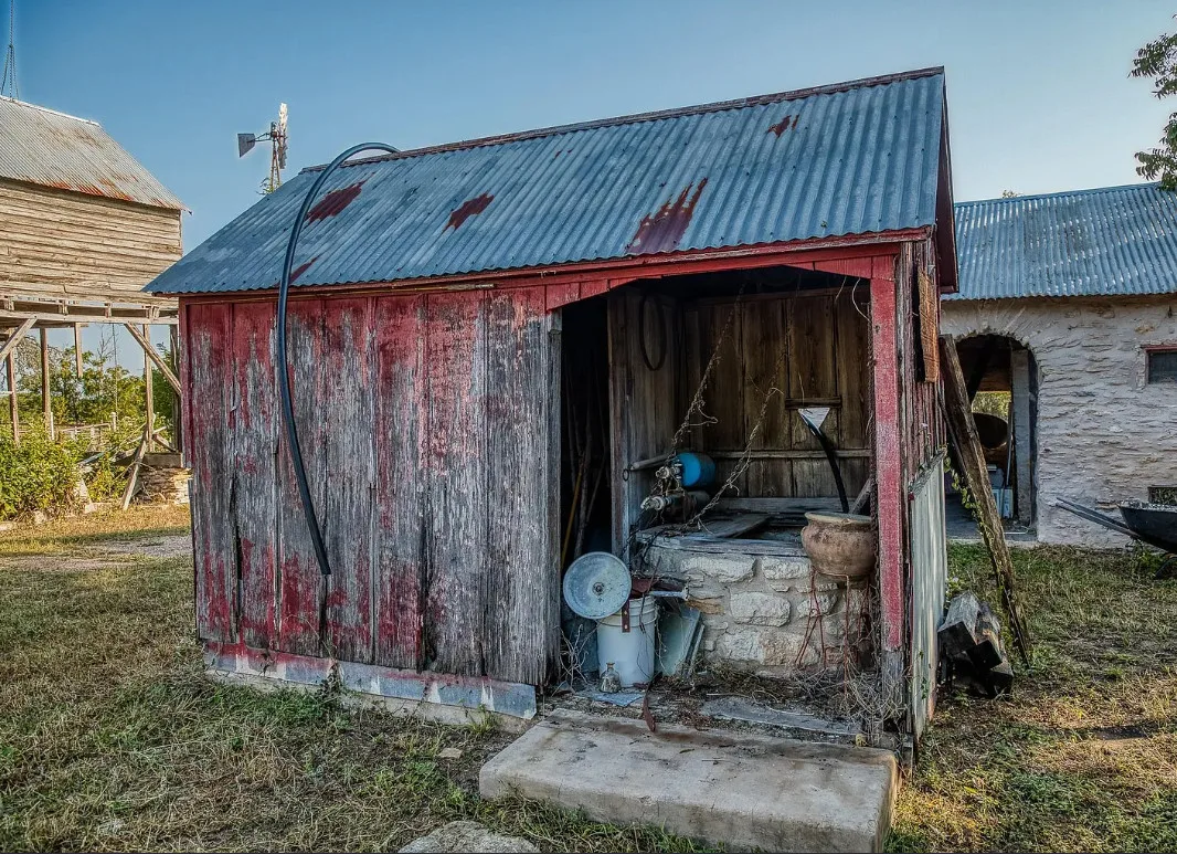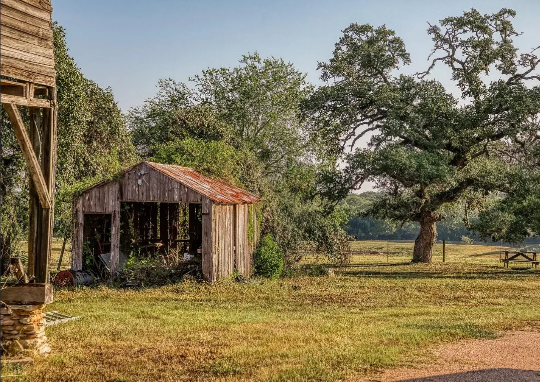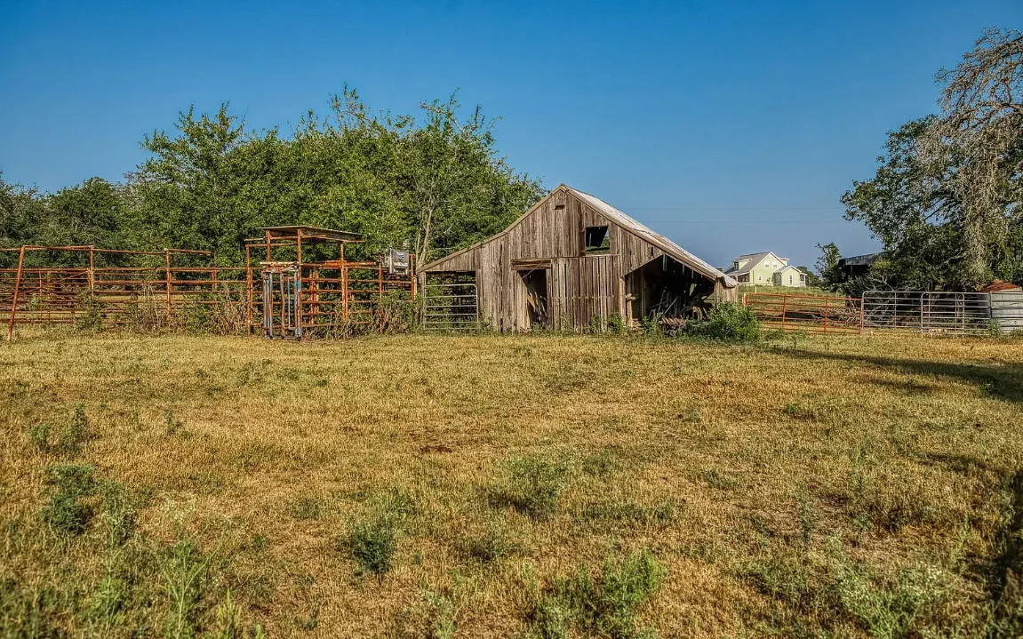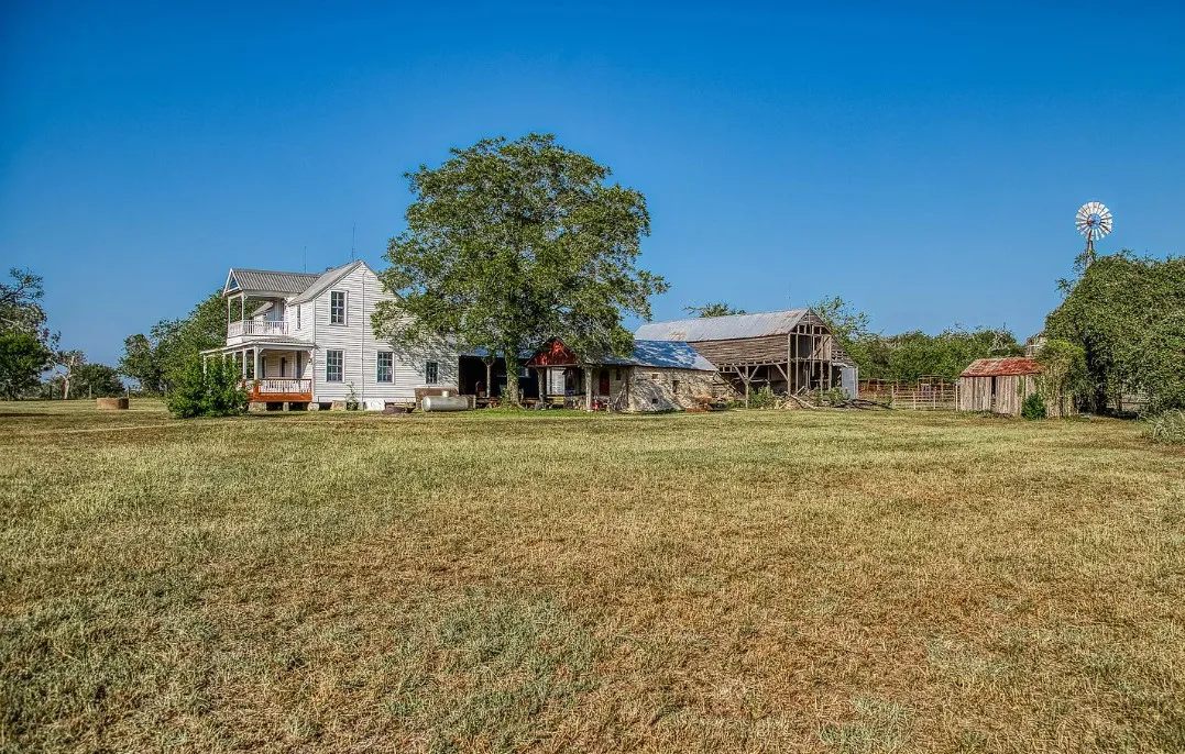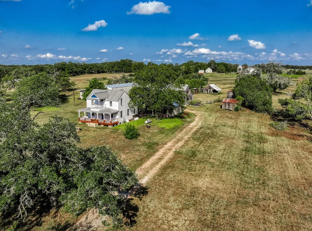 CALLING ALL CHIP & JOANNA TYPES for this Historic, 100+ year old Diamond in the Rough on 5-Acres! This dream restoration project could be your enchanting retreat just 12 miles from charming Round Top square! Main home awaits a buyer w/ heart & passion to breathe new life into it’s historic bones. Said to have been built in 1894, the old farmhouse features 3 bedrooms & wraparound upper & lower porches for savoring spectacular TX sunsets. Bonus structures: historic stone smokehouse (transform it to cozy she-shed or wine room for mahjong nights, or home office), antique log barn (rebuild using antique barn wood to be guest house or ultimate entertainment space), large metal garage offers 2 car bays, RV bay, huge workshop & apartment w/ 1 bed/bath. Property is partially fenced. On a quiet paved road under canopy of trees for pure Texas charm upon arrival. More than a property; endless possibilities to create your heartfelt vision for a slice of heaven!