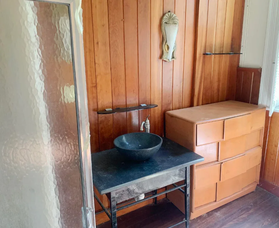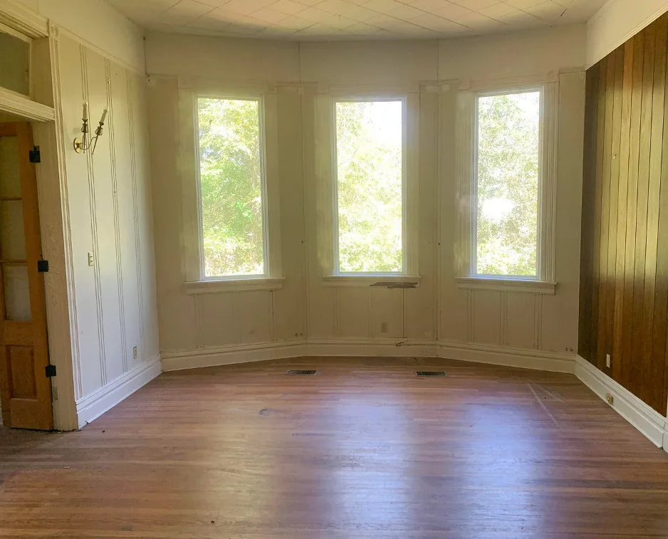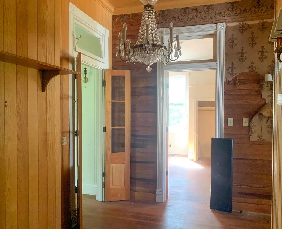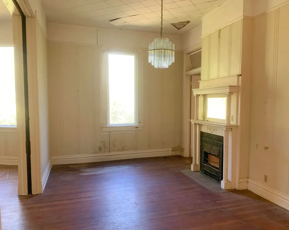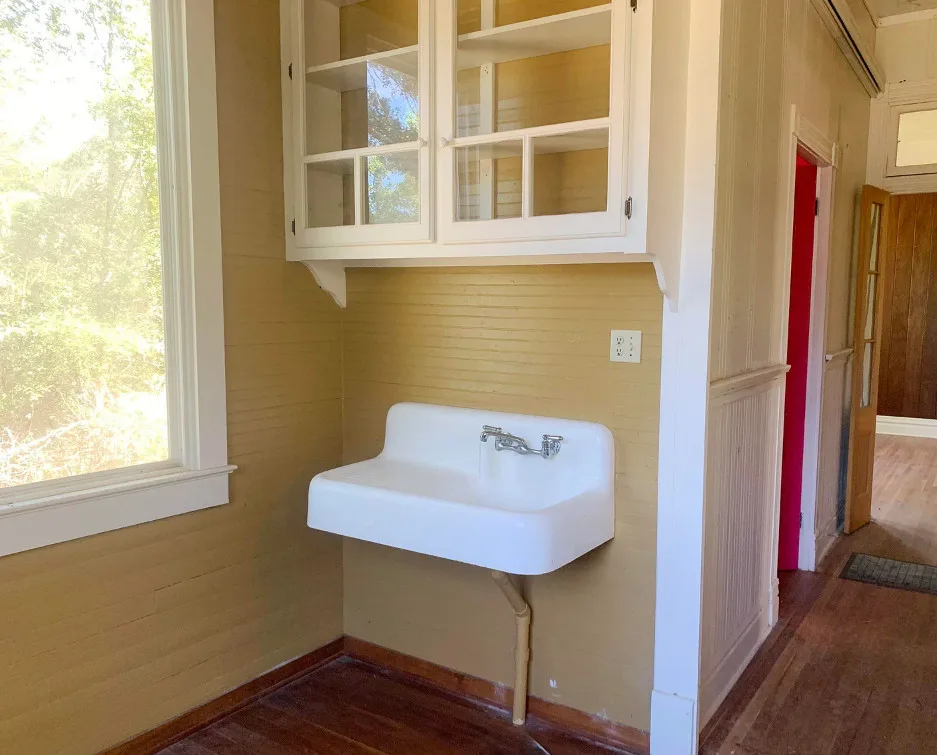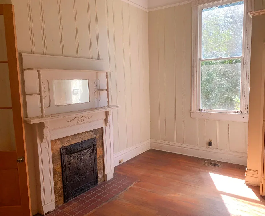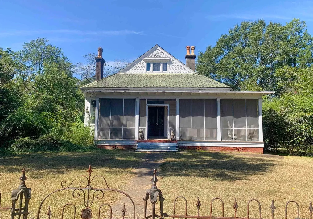 The interior of this house surprised me! Is that metal thing a bath? The house was built in 1903 by Joney Levy. It is located on .87 acre in Clinton, Louisiana. The house features a screened in front porch, wrought iron fence, wood floors, baseboards, bead board, great built-in bookshelves, farmhouse sink, transom windows and a crystal chandelier. There is a detached garage on the property. Three bedrooms, two bathrooms and 2,509 square feet. $178,000