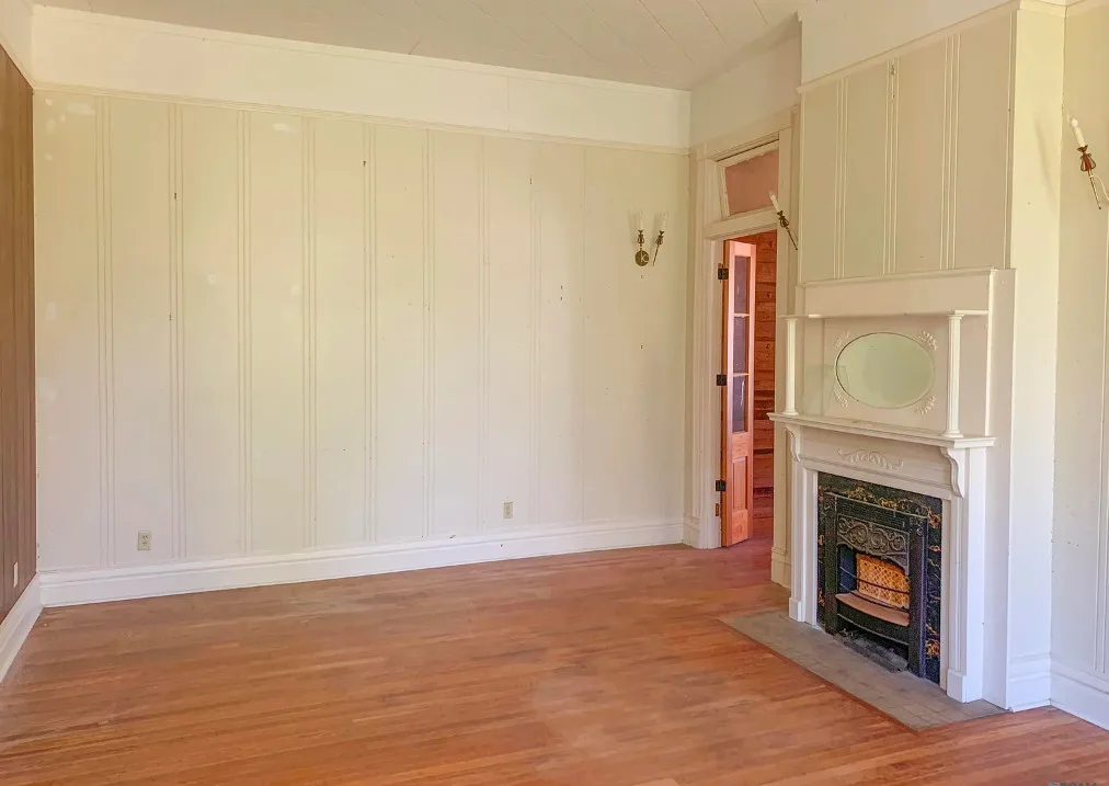 This Victorian home was built by Joney Levy in 1903 as a family home. Featuring 3 bedrooms, 1 full bath, and a half bath, it could easily be converted to a four-bedroom home. The kitchen features walnut flooring, a farmhouse sink, and beaded board ceilings. There are 12-foot ceilings throughout the home. Each bedroom and living room has a gorgeous fireplace. Grand bookcases adorn the front room. It has lots of charm and character. Property is on .87 of an acre, and it has a detached garage and storage. Come see this beautiful home today!