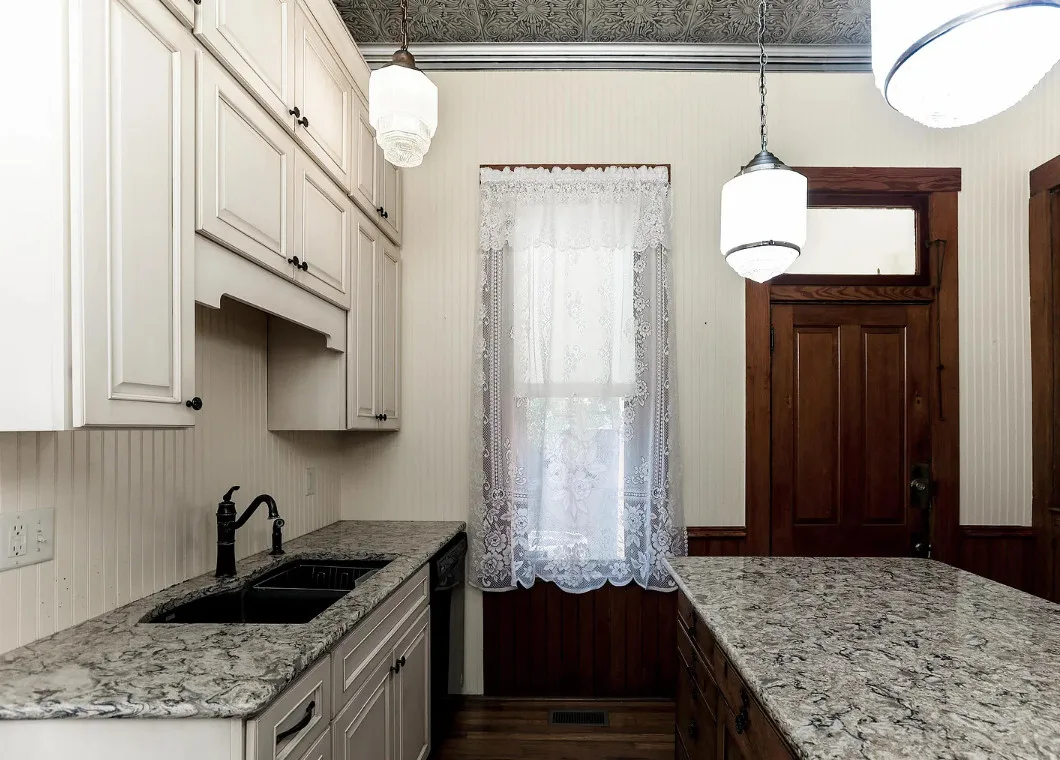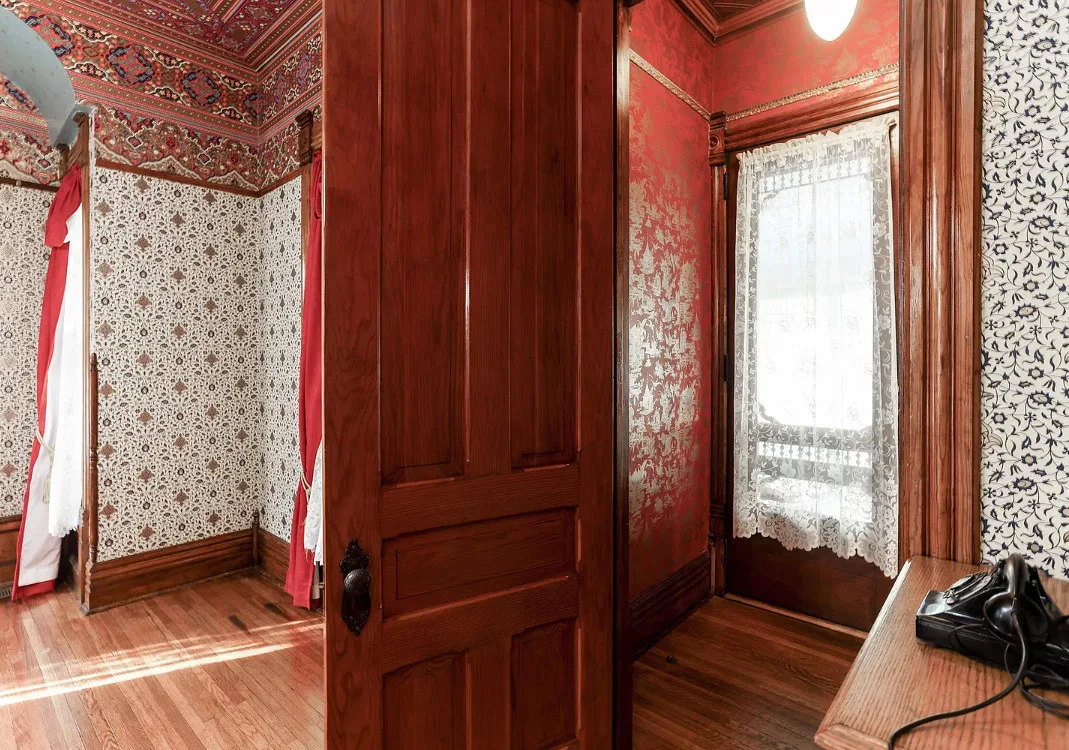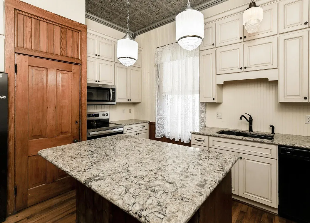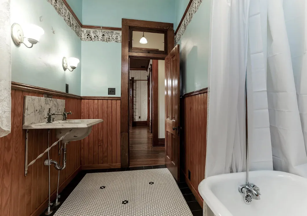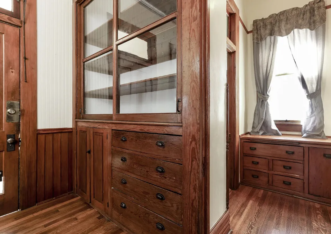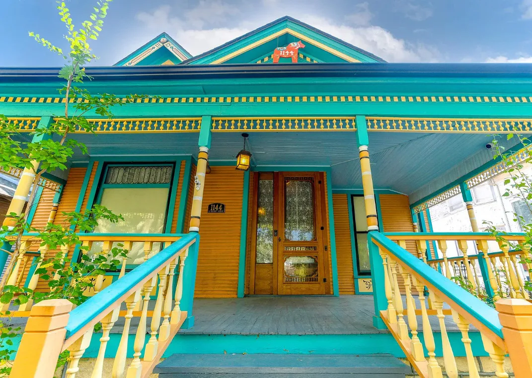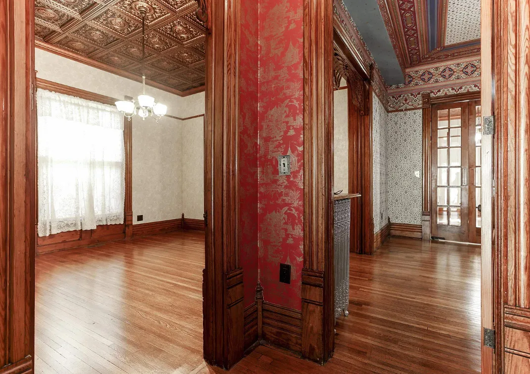 Take a look inside “The Market Street Cottage”. A true Victorian interior. The Market Street Cottage was built in 1884. It is located in Wichita, Kansas. The house features a covered front porch, wood floors, original fretwork, pressed tin ceiling, baseboards, crown moulding, french doors, beautiful butler’s pantry and an updated kitchen. There is a basement. Three bedrooms, two bathrooms and 2,066 square feet. $199,000