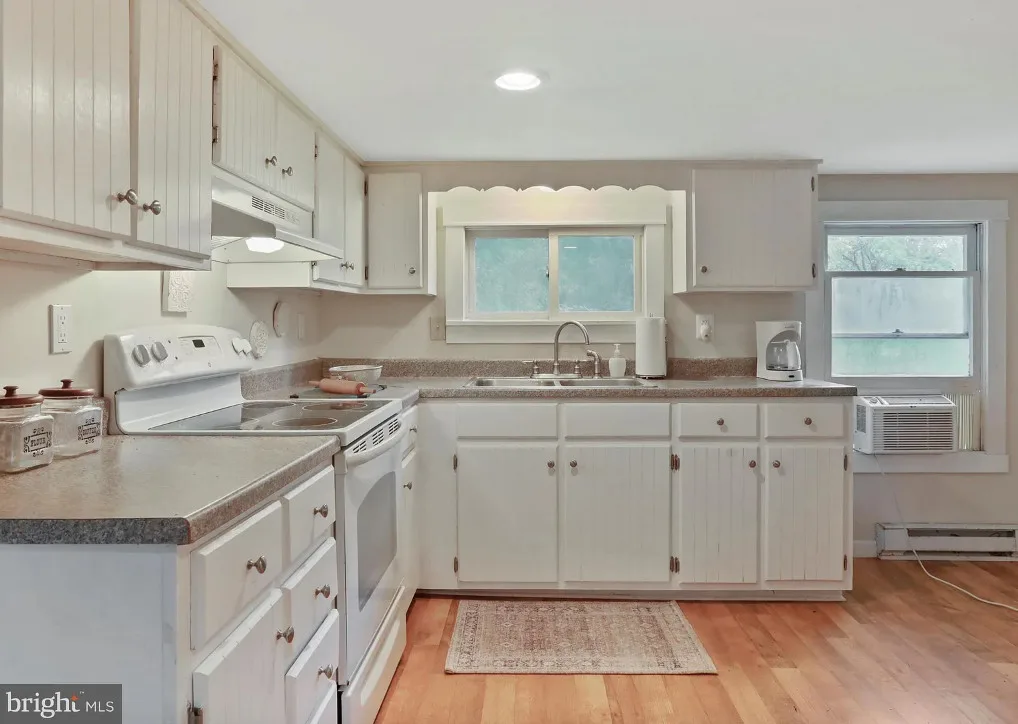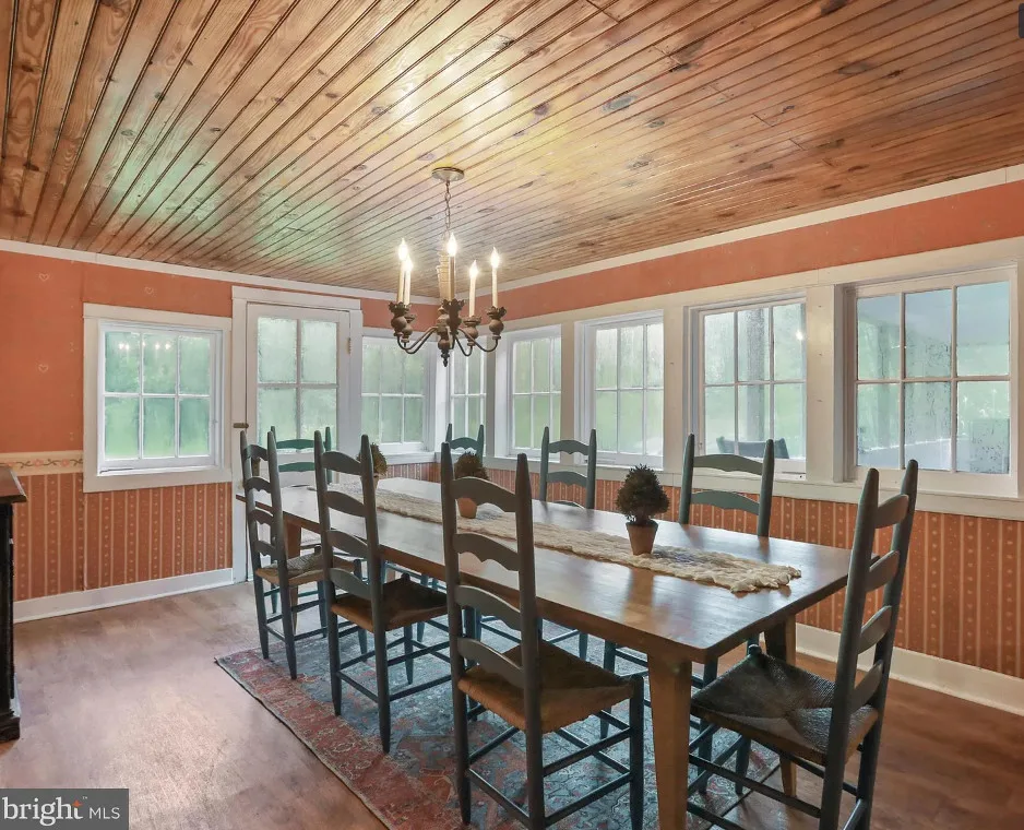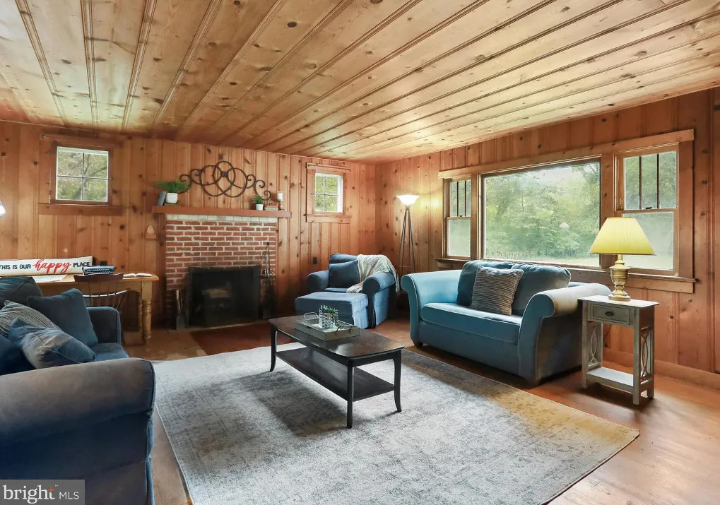This house has a really pretty setting! Nice acreage! The interior is nice also. The house was built in 1949. It is located on 15 acres in Rileyville, Virginia. The house features a private bridge, a screened in front porch, knotty pine, wood floors, a brick fireplace, chair rails, built-in bookshelves, a spacious kitchen, crown moulding, wainscoting and a back patio. Three bedrooms, two bathrooms and 1,434 square feet. $340,000