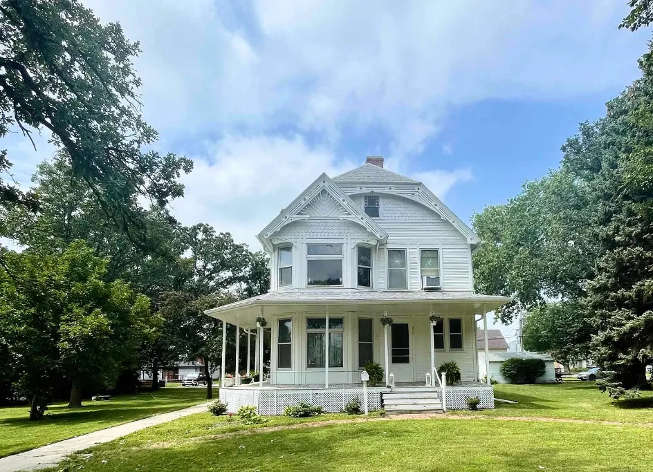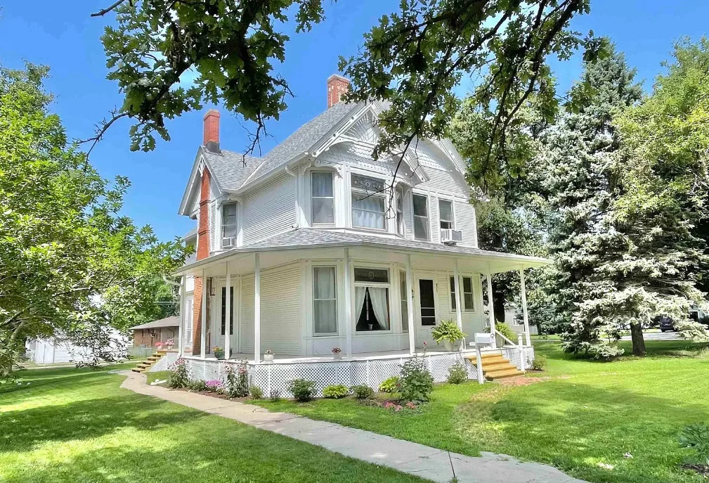 A grand home in the beautiful town of David City, NE. The year of 1878 was bright when prairie sod was broken and foundations were laid for this historic home. Inside, this grand home features beautiful oak woodwork, original interior trim and details, pocket doors, a stunning fireplace, and a fully renovated chefs kitchen. Morning coffee is best spent at the kitchen bar with the birds chirping from the open window. This home has 5 bedrooms and 2 glorious baths! Situated on an oversized lot with mature trees and graceful porches, the original exterior details on this folk Victorian are impressive This home has been featured in a Dale Nichols painting, a famous American artist from David City, NE. The property has opportunities as a bed and breakfast, small business, or as your beautiful home. Don’t miss this one for it’s charm and beautiful renovations.
