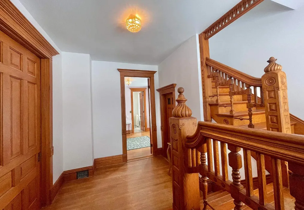 This house has a beautiful staircase and beautiful woodwork! The house was featured in a painting by Dale Nichols, a famous artist from David City, Nebraska. The house was built in 1878. It is located on .48 acre in David City, Nebraska. The house features a wrap around front porch, a grand staircase, wood floors, pretty baseboards, stained glass, pocket doors, updated kitchen and solid wood doors with original hardware. Five bedrooms, two bathrooms and 2,536 square feet. $245,000