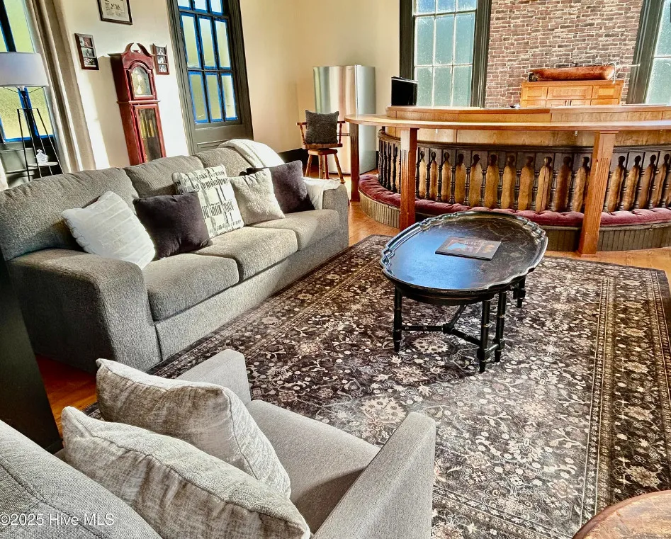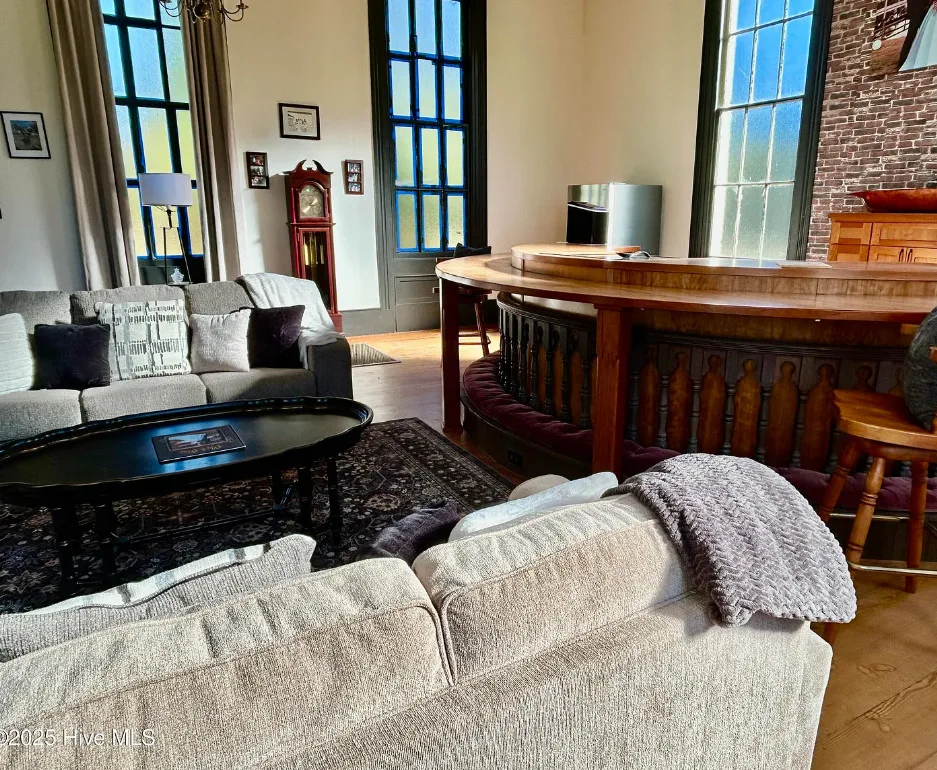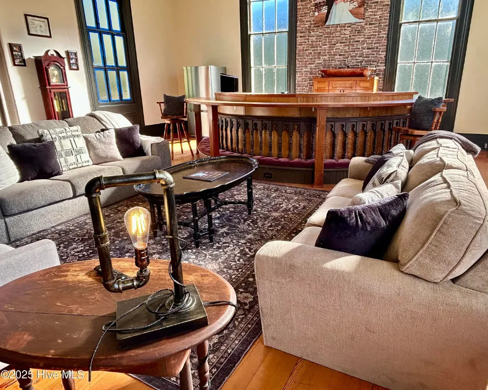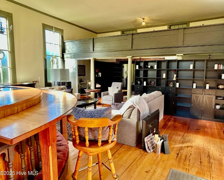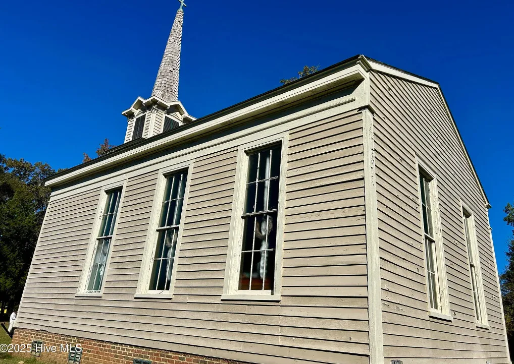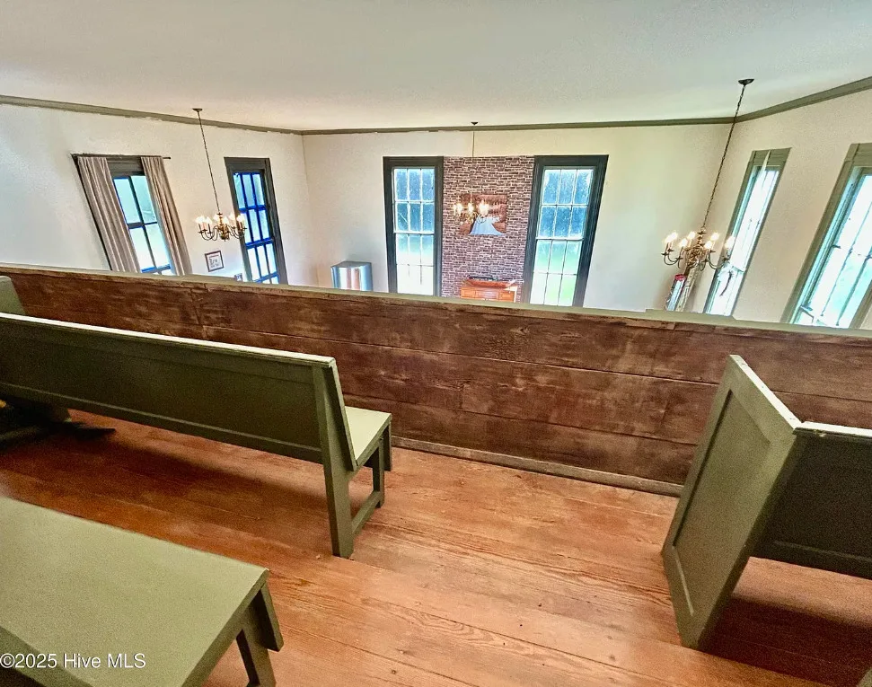 St. Frances is back, this time with a new twist. Unfortunately, the owners are having to make a move to Texas and aren’t able to fulfill their dream of living in an historic church here in NC. They started the transformation by having the water connected, adding a kitchen, designating private spaces with extra large bookcases as privacy walls and a fresh coat of paint. The 2.3 acres includes this c.1845 former Methodist Church and a cemetery with graves dating back in the 1800s. The original large windows offer so much natural light inside the ‘church’ and you feel welcomed immediately. The gorgeous heart pine floors throughout help add exactly the charm you want and expect. Other features include the gorgeous heart pine floors, 9 original pews in the loft, the old pump organ, and a bell tower with the working bell. The setting is perfect. The ‘church’ sits back off the road, behind the cemetery with mature trees in front and a large open yard in back. The sellers are offering concessions for exterior painting and a sun mar centrex toilet (Google it, it’s really cool and perfect for a space like this). They have also applied for a septic permit. With the Smokehouse and Market going in right down the street, you’ll be right in the middle of the Woodville Historic District and all the happenings in this small, historic town. Protective covenants with Preservation NC apply. Call to learn more.
