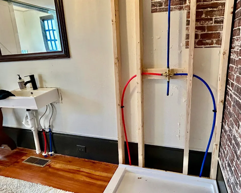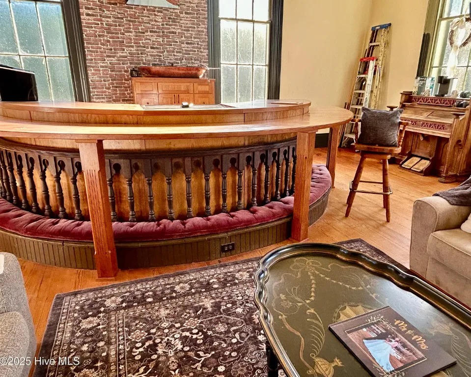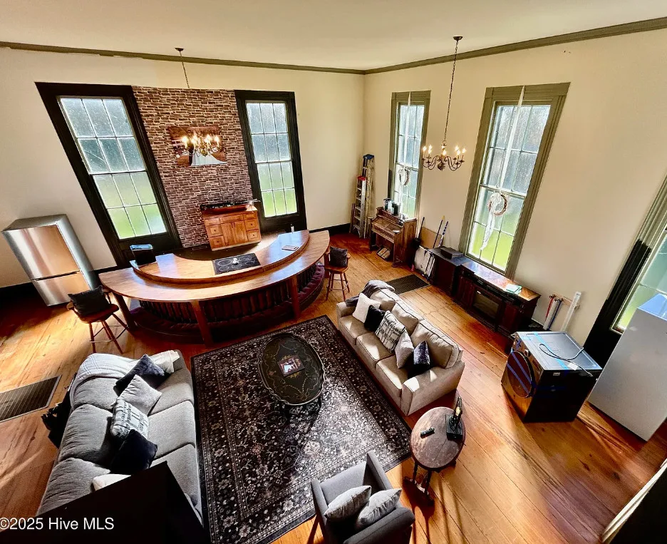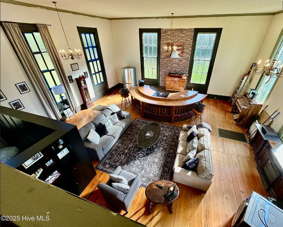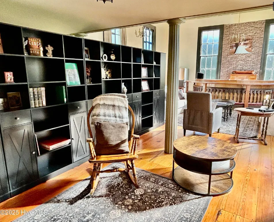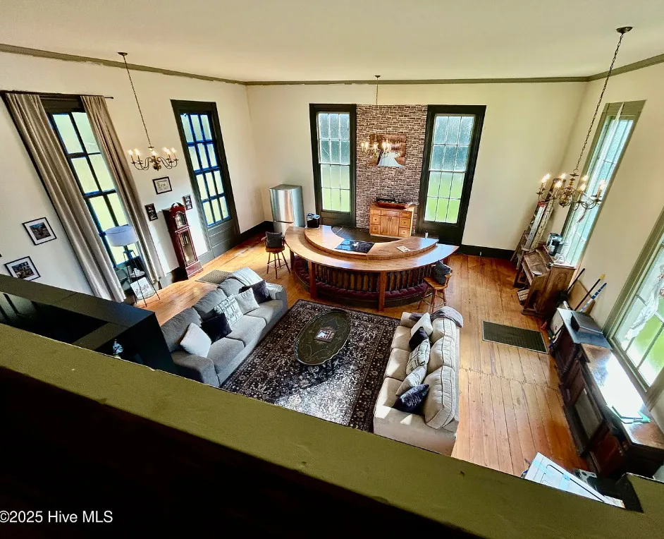 St. Frances is back, this time with a new twist. Unfortunately, the owners are having to make a move to Texas and aren’t able to fulfill their dream of living in an historic church here in NC. They started the transformation by having the water connected, adding a kitchen, designating private spaces with extra large bookcases as privacy walls and a fresh coat of paint. The 2.3 acres includes this c.1845 former Methodist Church and a cemetery with graves dating back in the 1800s. The original large windows offer so much natural light inside the ‘church’ and you feel welcomed immediately. The gorgeous heart pine floors throughout help add exactly the charm you want and expect. Other features include the gorgeous heart pine floors, 9 original pews in the loft, the old pump organ, and a bell tower with the working bell. The setting is perfect. The ‘church’ sits back off the road, behind the cemetery with mature trees in front and a large open yard in back. The sellers are offering concessions for exterior painting and a sun mar centrex toilet (Google it, it’s really cool and perfect for a space like this). They have also applied for a septic permit. With the Smokehouse and Market going in right down the street, you’ll be right in the middle of the Woodville Historic District and all the happenings in this small, historic town. Protective covenants with Preservation NC apply. Call to learn more.