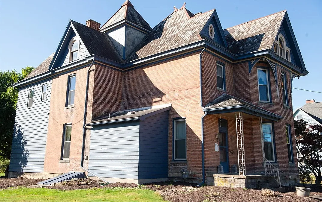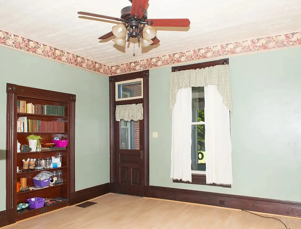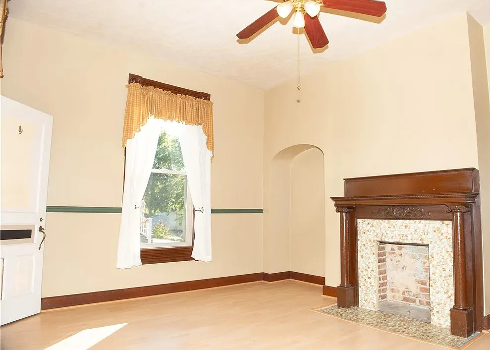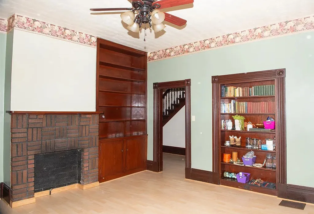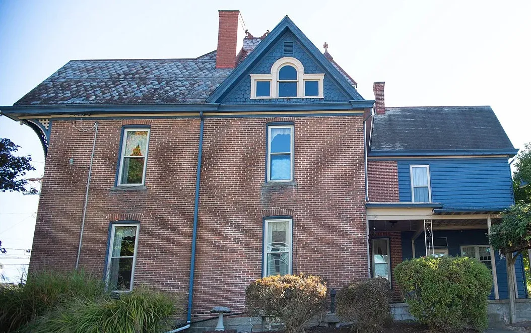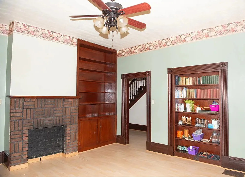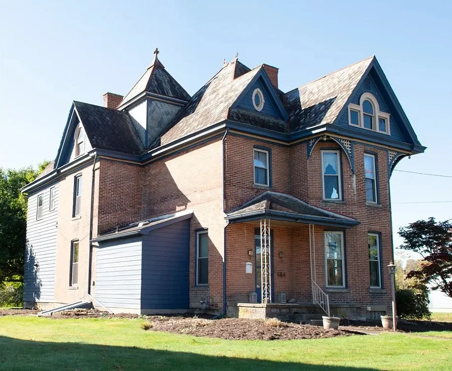 I love the exterior of this home! The interior could use some undoing of past renovations, but it has a lot of potential and especially at that price. The house was built in 1900. It is located on 1.17 acres in Waynesburg, Pennsylvania. The house features a covered porch, nice staircase, baseboards, built-in bookshelves, spacious kitchen and a detached garage. Four bedrooms, two bathrooms and 2,672 square feet. $239,900