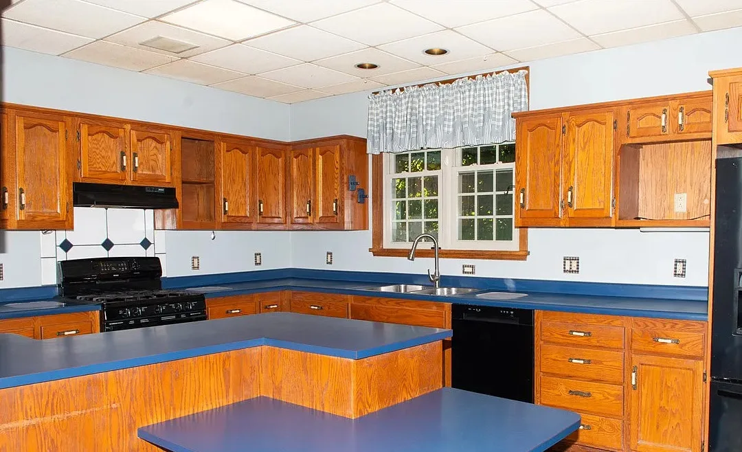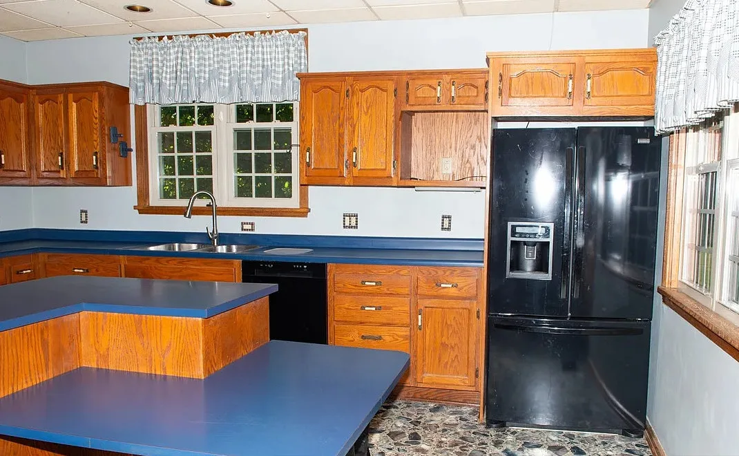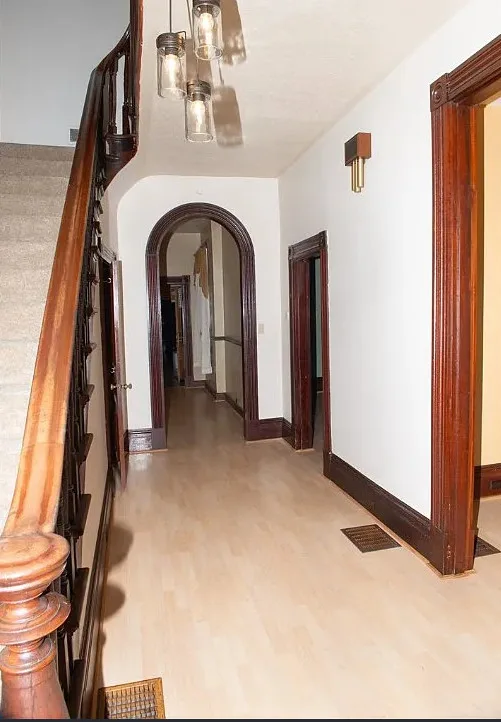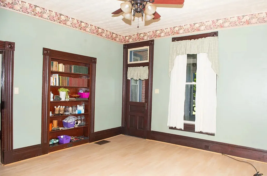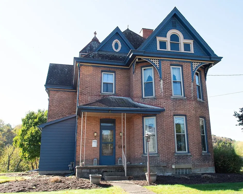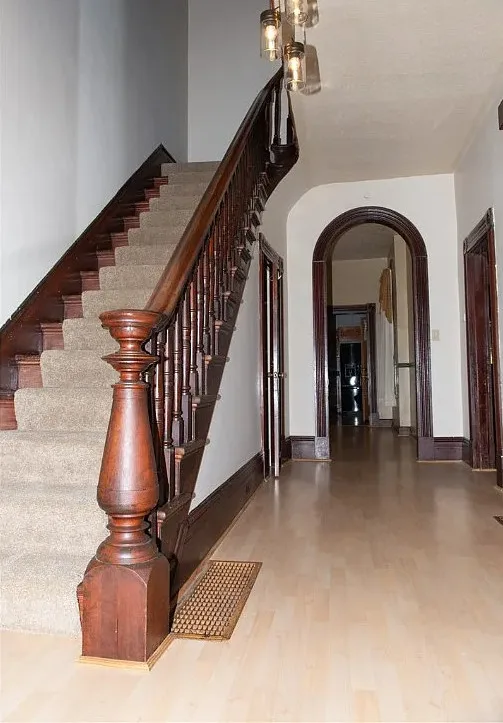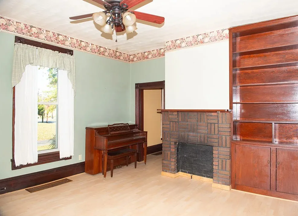 I love the exterior of this home! The interior could use some undoing of past renovations, but it has a lot of potential and especially at that price. The house was built in 1900. It is located on 1.17 acres in Waynesburg, Pennsylvania. The house features a covered porch, nice staircase, baseboards, built-in bookshelves, spacious kitchen and a detached garage. Four bedrooms, two bathrooms and 2,672 square feet. $239,900