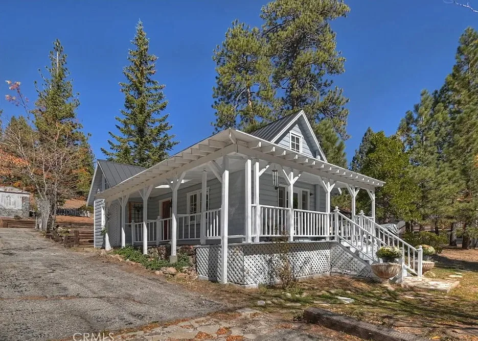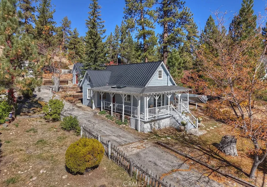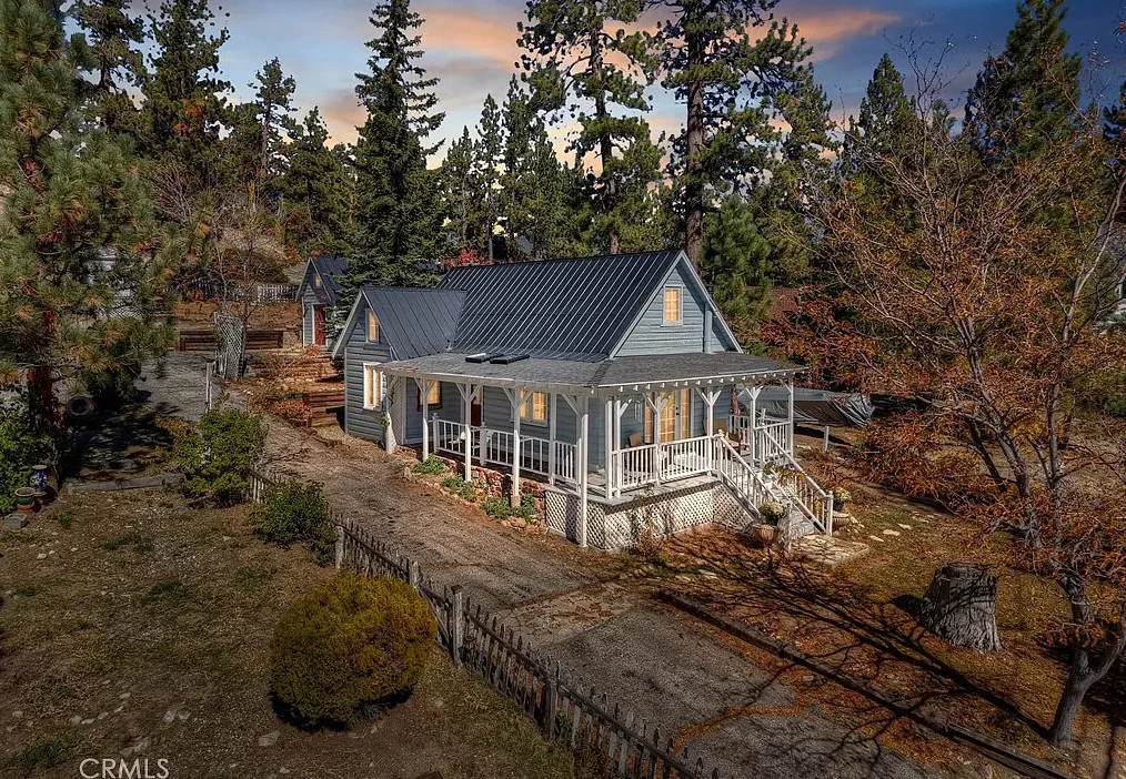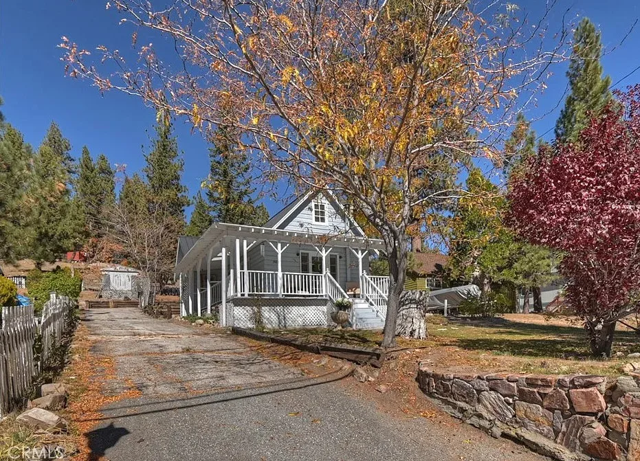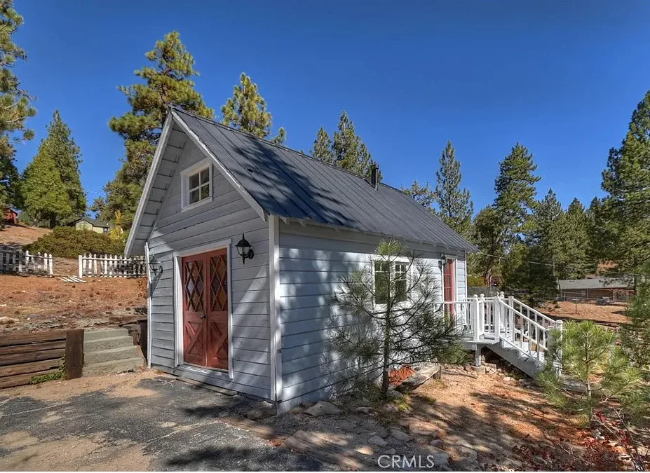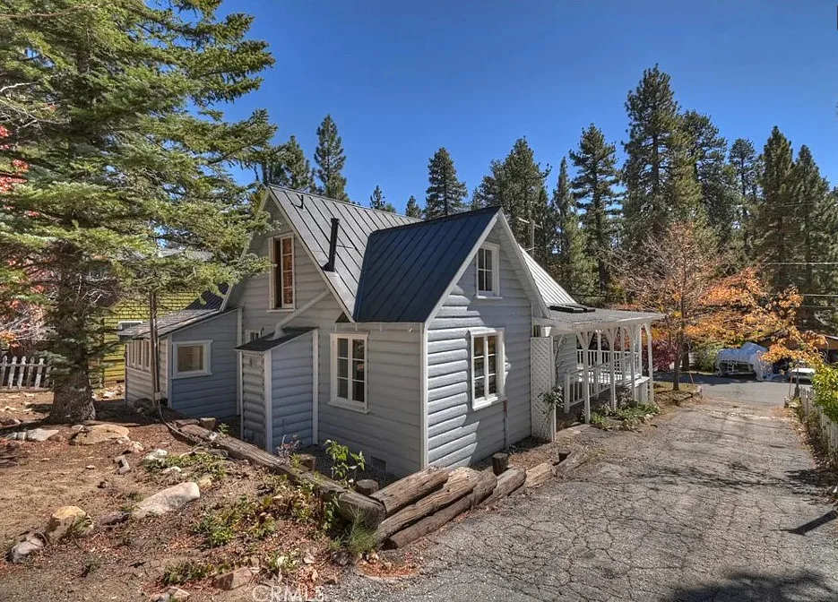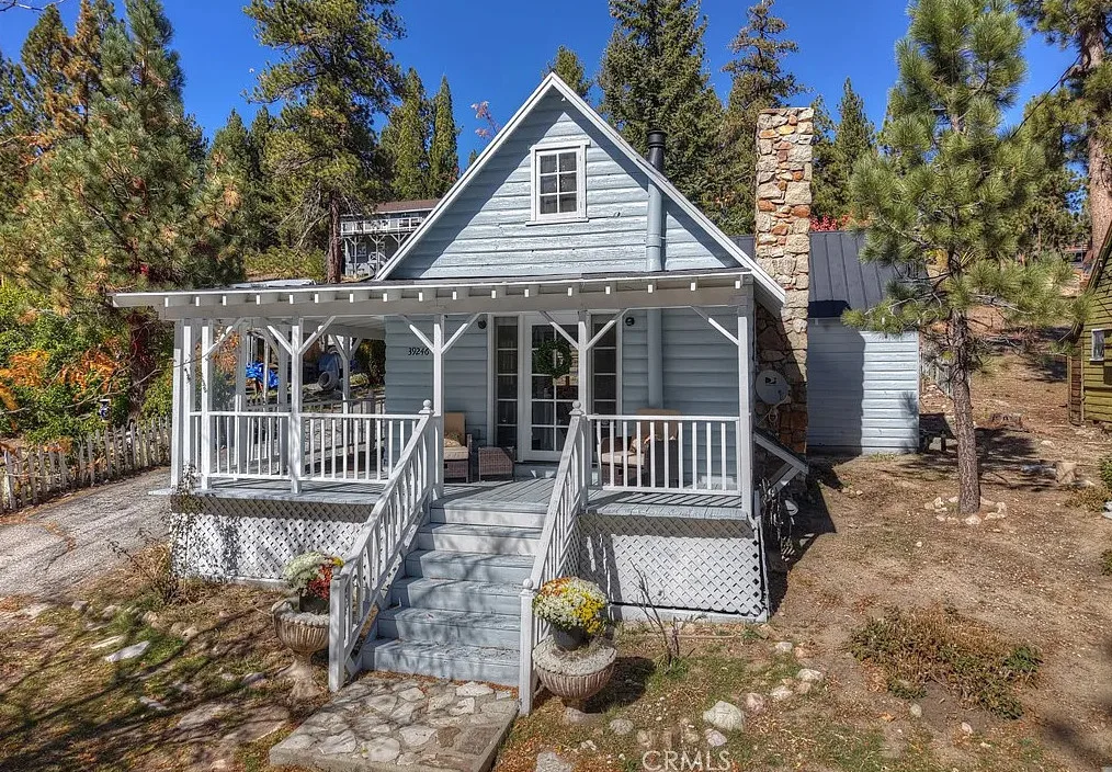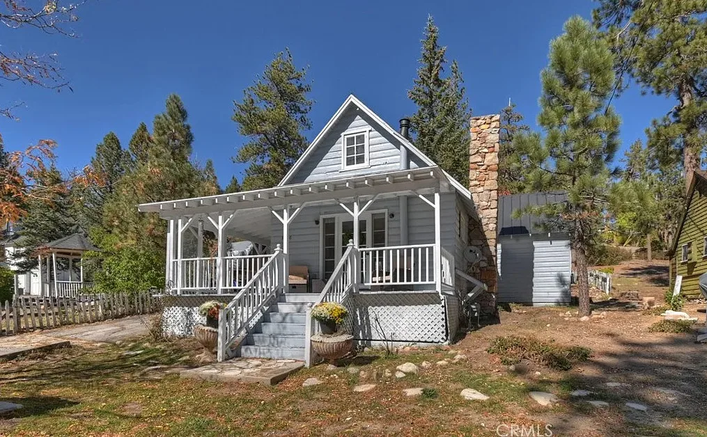 Charming mountain cottage located within yards of the lake, park, restaurants, and shopping in the heart of Big Bear Lake. The main cabin features one bedroom, one bathroom, and a loft area, offering a warm and inviting atmosphere with a natural stone fireplace and hardwood floors throughout. A separate detached studio guest cabin provides additional living space or potential rental opportunity, featuring open-beam ceilings, hardwood floors, and a full bathroom with a clawfoot tub. The property captures the Cozy Big Bear cottage feel with convenient proximity to the lake and village amenities. This unique property offers flexible use as a full-time residence, vacation retreat, or income-producing investment in a desirable lakeside neighborhood