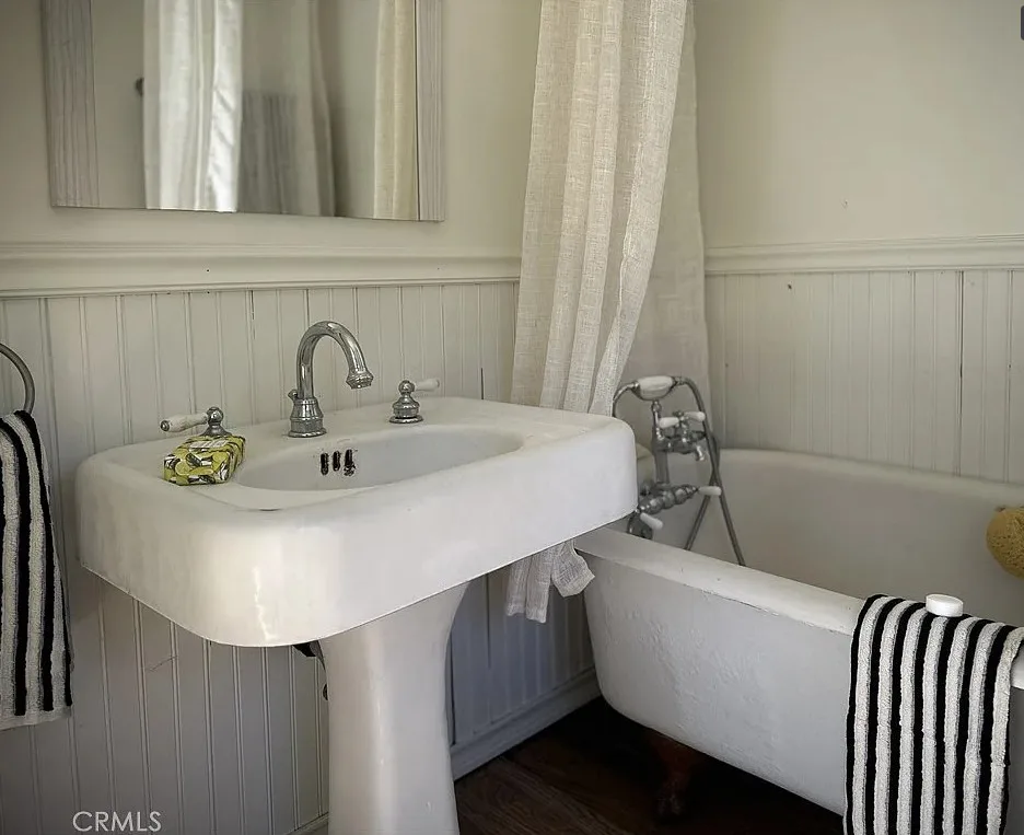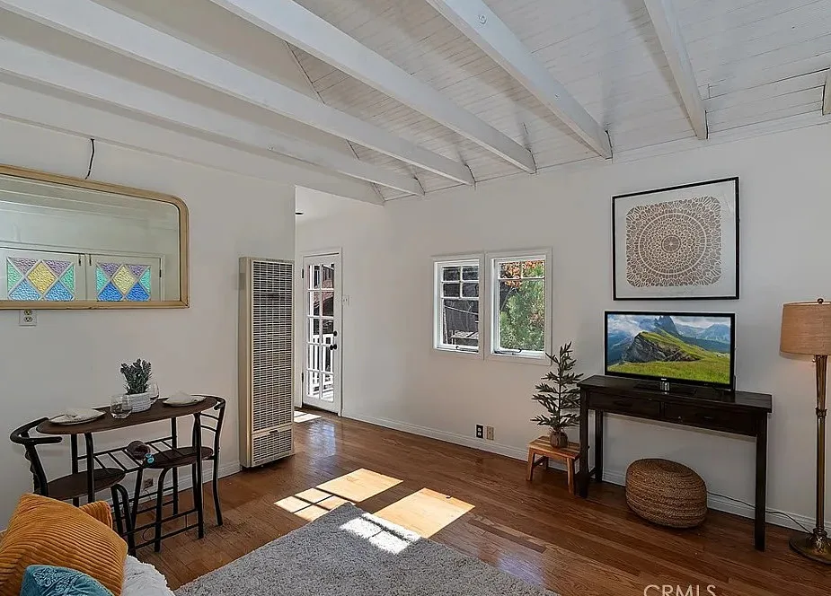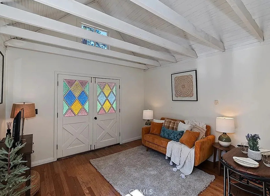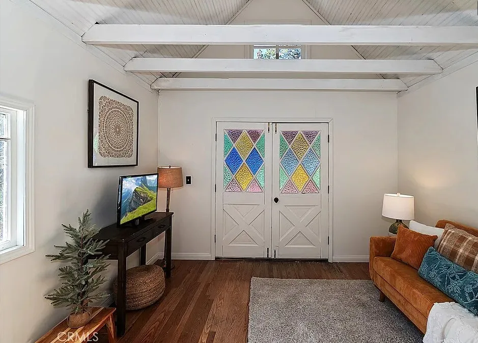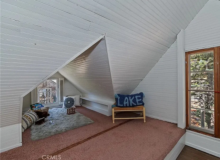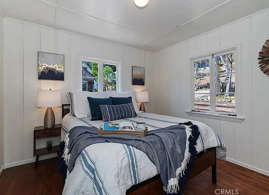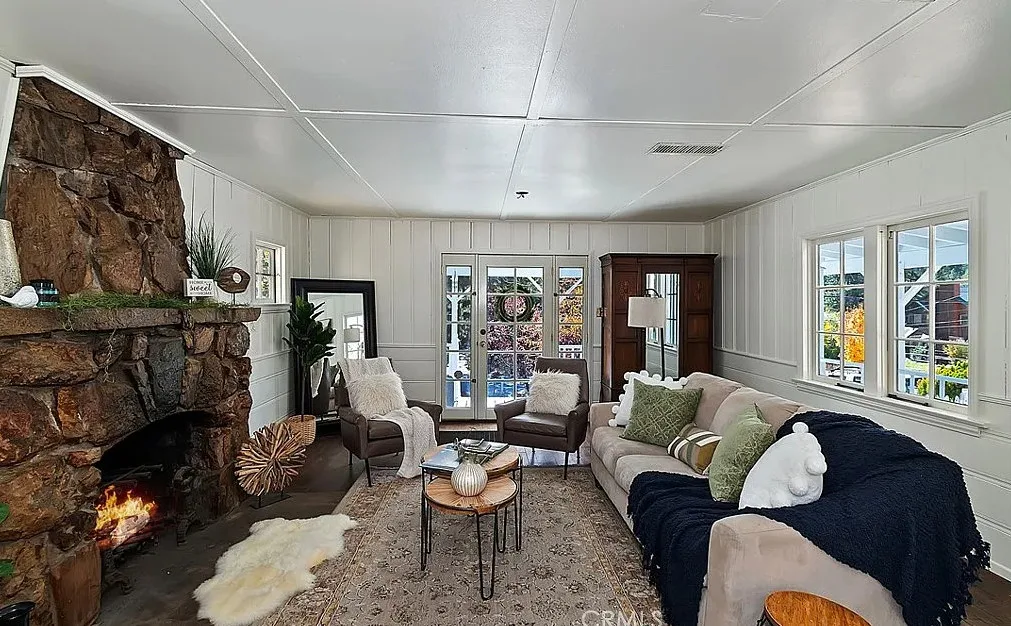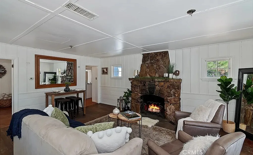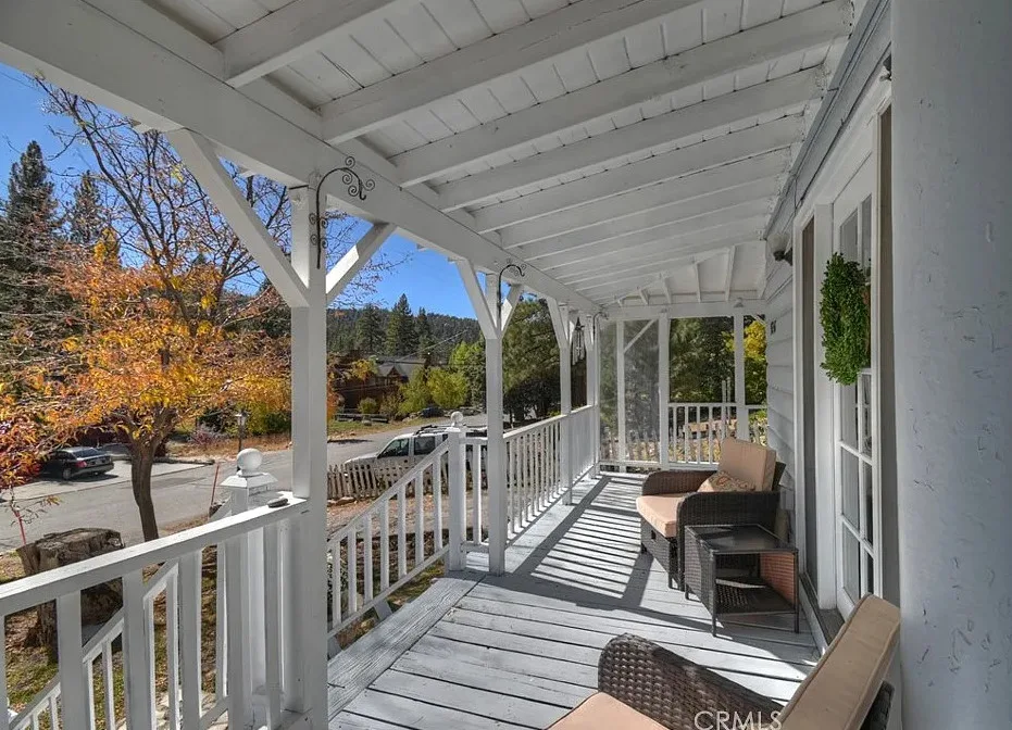 Charming mountain cottage located within yards of the lake, park, restaurants, and shopping in the heart of Big Bear Lake. The main cabin features one bedroom, one bathroom, and a loft area, offering a warm and inviting atmosphere with a natural stone fireplace and hardwood floors throughout. A separate detached studio guest cabin provides additional living space or potential rental opportunity, featuring open-beam ceilings, hardwood floors, and a full bathroom with a clawfoot tub. The property captures the Cozy Big Bear cottage feel with convenient proximity to the lake and village amenities. This unique property offers flexible use as a full-time residence, vacation retreat, or income-producing investment in a desirable lakeside neighborhood