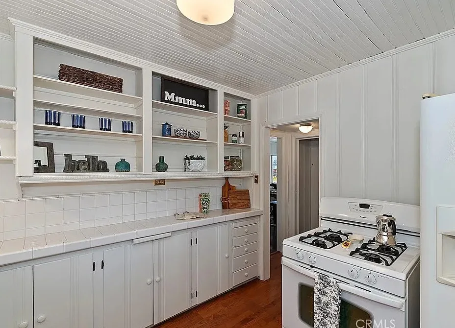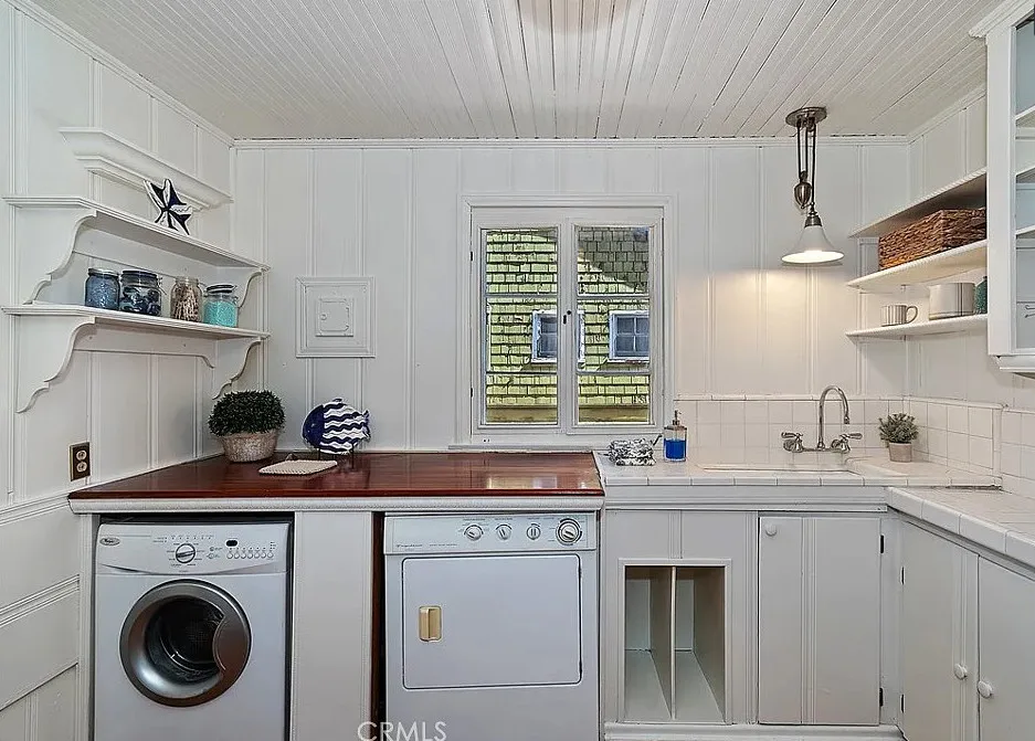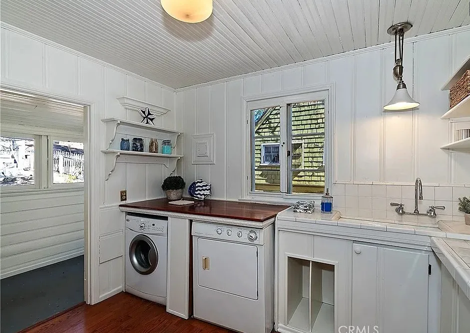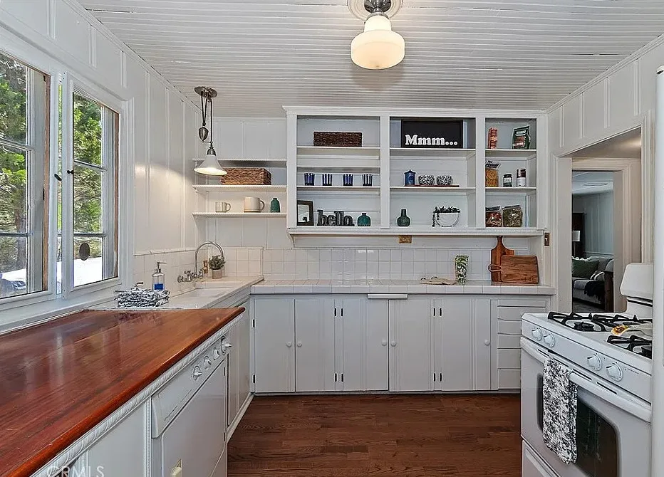 This is a super cute house at Big Bear Lake in California. Love this one! The house was built in 1940. It is located in Big Bear Lake, California. The house features a covered wrap around front porch, stone fireplace, wood floors, wainscoting, enclosed back porch, vaulted ceiling and stained glass. There is a detached guest cabin! Two bedrooms, four bathrooms and 1,027 square feet. $399,000