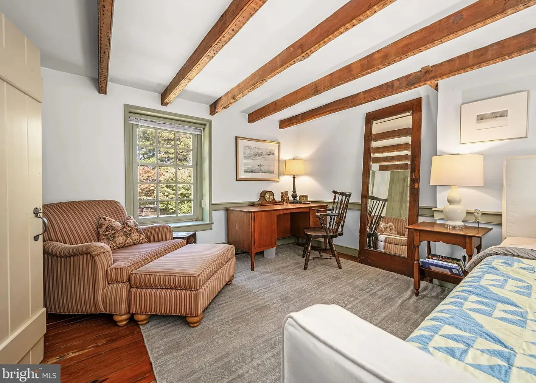 Originally built in 1782, this Flemish Bond brick Colonial home is the embodiment of simple elegance. Restored with the utmost historical respect in the mid-1980’s and modernized with preservation-sensitive practices and materials over the past eight years by the current stewards of the home, step into the past while enjoying today’s comforts. The four-bay home has a traditional floor plan with the living and dining room flanking the center foyer hall, a large sunken family room anchored by the massive hearth – reconstructed with original bricks from the 1782 structure and walnut mantel, and a kitchen and sunroom addition on the back of the home, added between the mid-80’s and early-90’s. The kitchen was afforded another renovation around 2007 with high end finishes and an open, welcoming concept ideal for functionality and entertaining. Follow the original staircase upstairs, running your hand along the centuries old banister to the two guest bedrooms which share a generous bathroom off the second story landing. Closets have been incorporated in the landing and bedrooms to allow for modern storage solutions, all while using period specific paneling to replicate the historic aspects of the original design scheme and hardware of the 1790s. The primary suite, accessed by its own staircase, consists of a one-bay bedroom, dressing room with laundry, and an en suite bath overlooking the rear yard. Modern comfort conveniences including two year new HVAC units, preservation-sensitive insulation, professionally restored windows with new storm windows, and two brand new wood stoves round out the incredible features that make this home low maintenance and turn-key. The studio barn, accessed by its own leveled gravel drive and parking pad, is a two story, two bay garage, with an interior but separate workshop. Since 2018 it has been insulated, drywalled, painted, had its own dedicated water, high-voltage electric, and fiber optic internet lines run, and had a pellet stove installed. Situated on 6.8 serene acres, the current Ag zoning allows for a reasonable annual tax benefit, adding to the appeal of the rural lifestyle. The grounds have a mature boxwood hedge, a perimeter of pines, fallow pastures which fill with wildflowers throughout the summer, wandering paths to birdwatch, and scattered perennials which pop up each spring with a burst of color and personality.