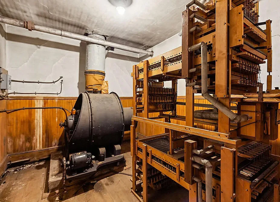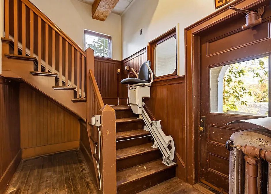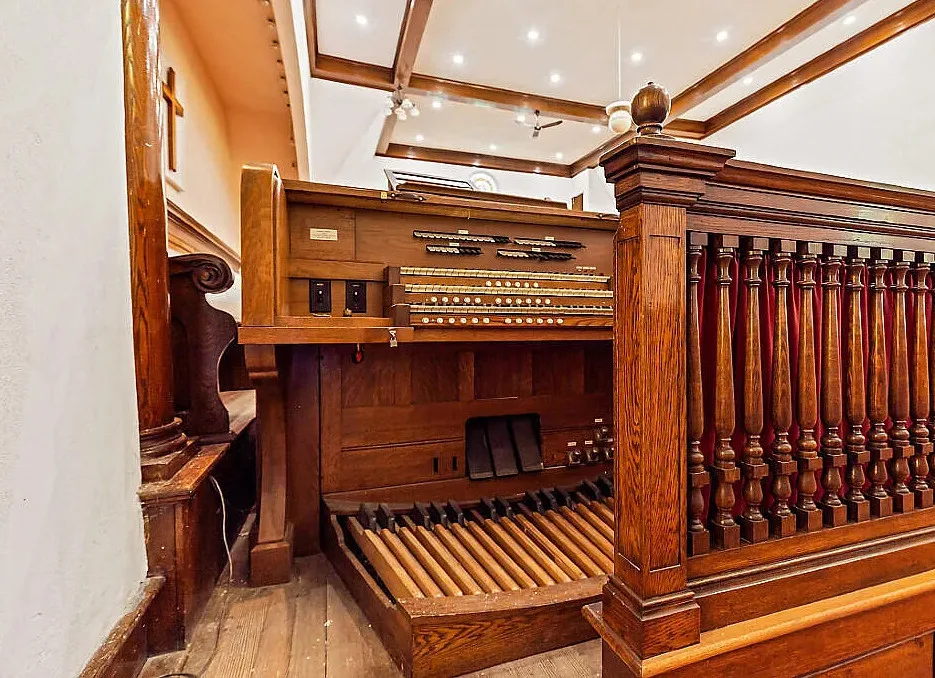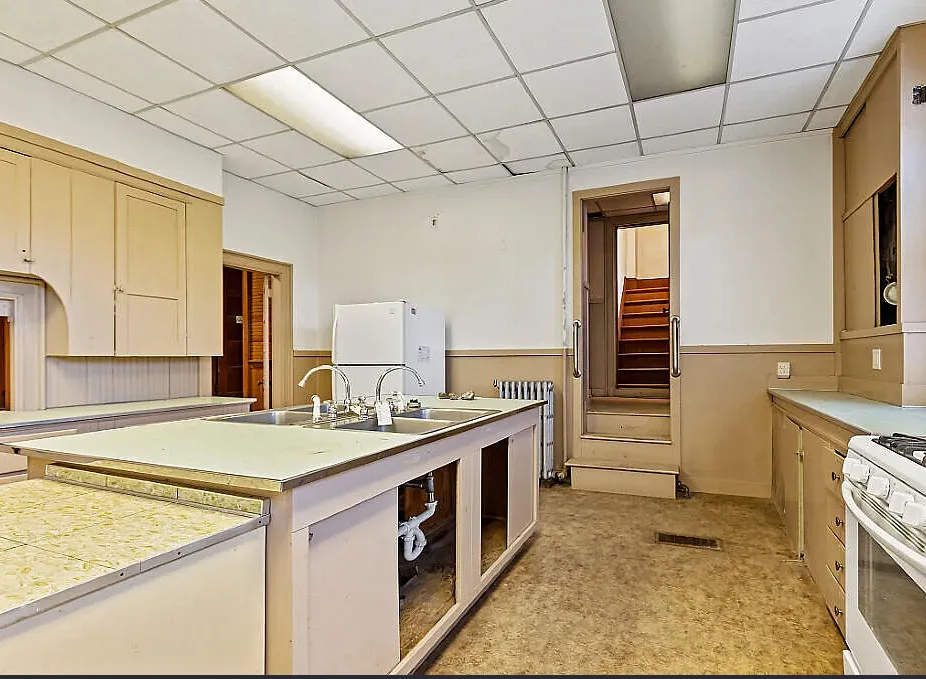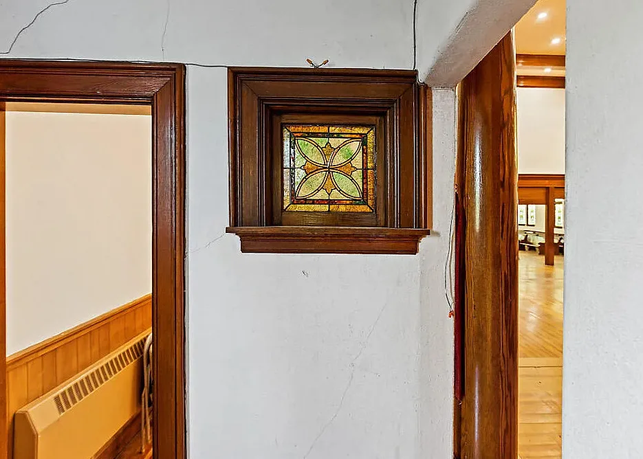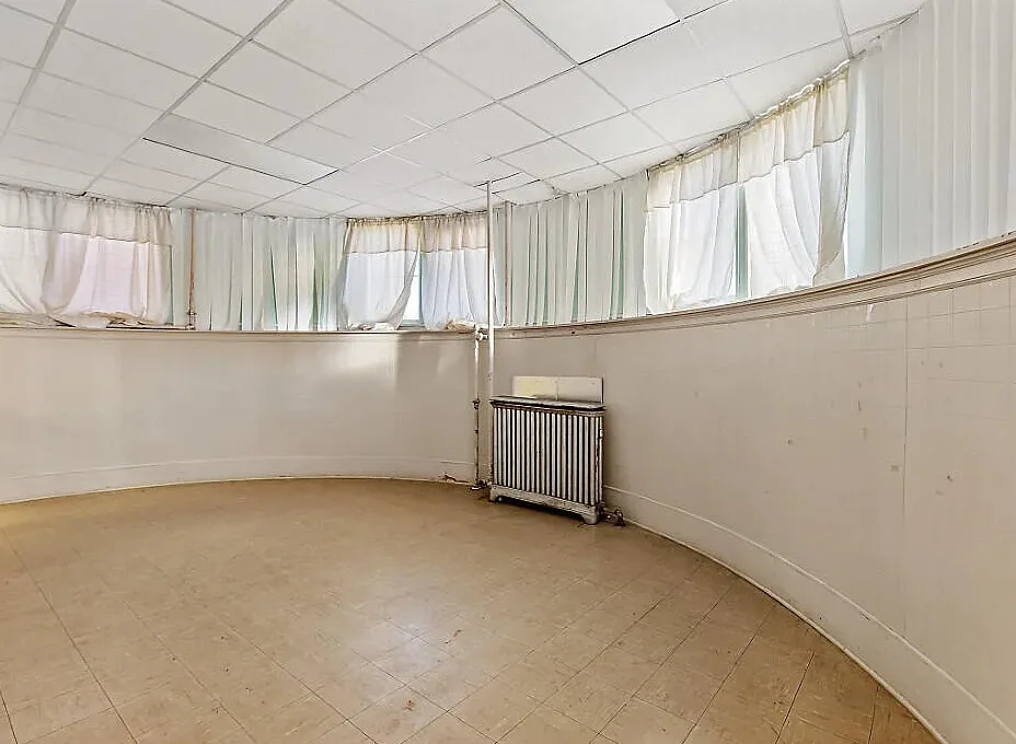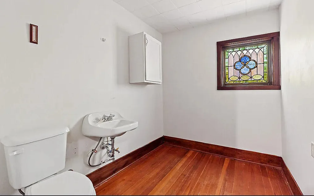 This is a pretty cool looking church! There is even a basketball court inside. The Rumford Falls First Baptist Church was built in 1902. It is located in Rumford, Maine. The church features wood floors, vaulted ceilings, pipe organ, stained glass, church pews, basketball court and double front doors. Two bedrooms, six bathrooms and 4,442 square feet. $150,000
