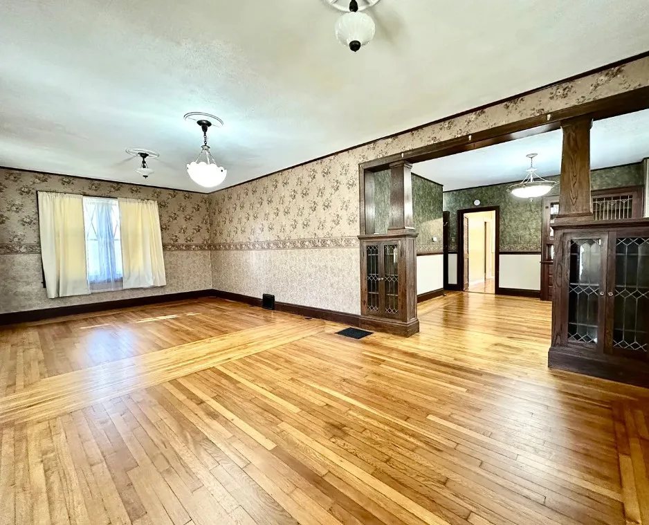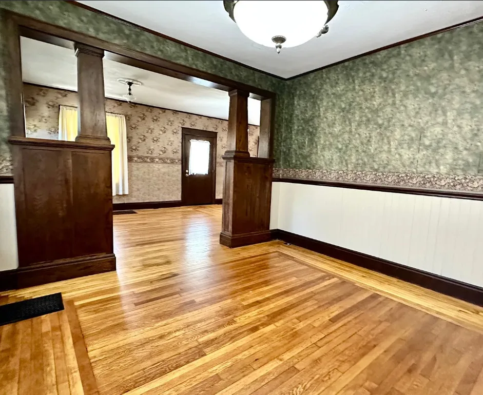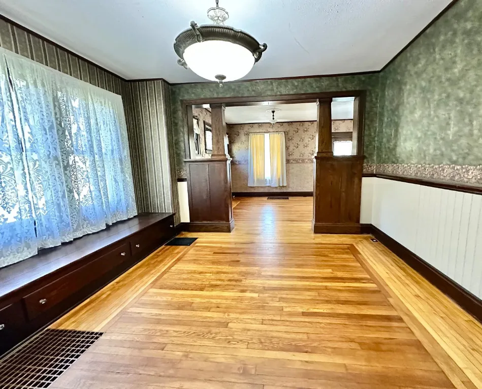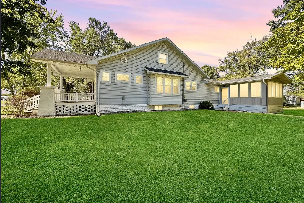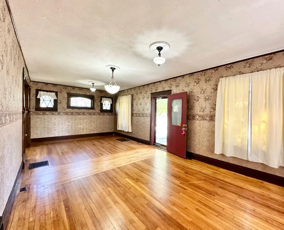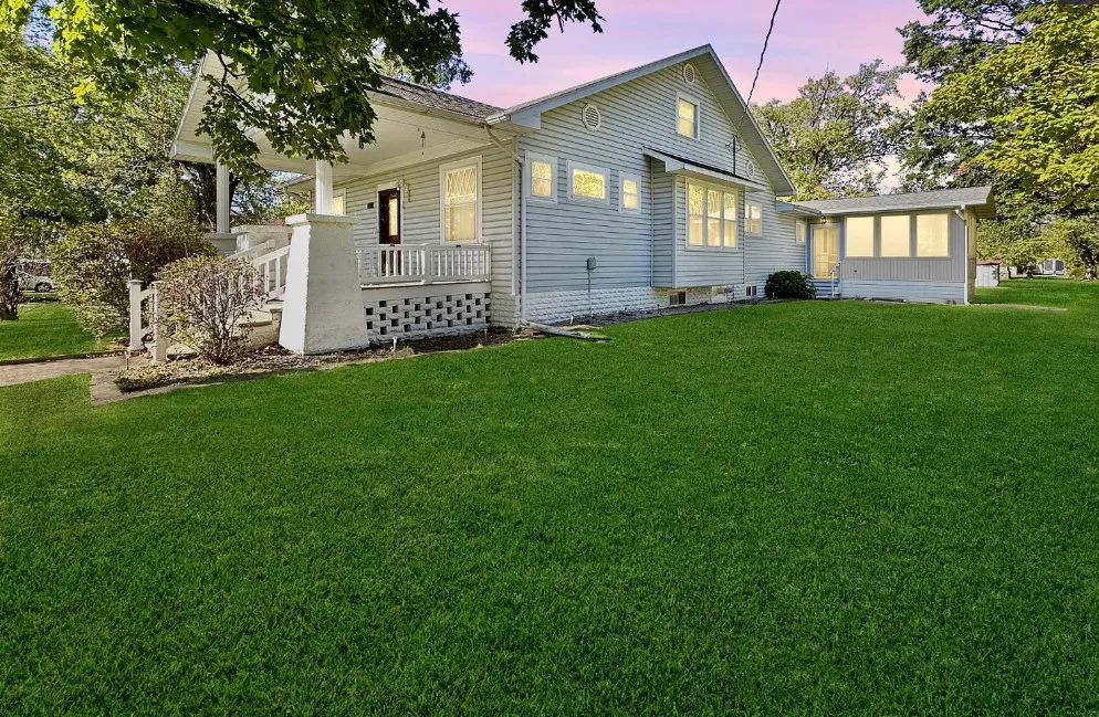 Welcome to this beautifully restored 1917 Craftsman home, offering timeless character paired with thoughtful modern updates. With approximately 2,387 square feet of living space, this 3-bedroom, 1-bath residence sits proudly on a large 0.31-acre corner lot with a 3-car attached garage, blending classic architecture, charm, and comfort at every turn. The home’s inviting covered front porch sets the stage for what awaits inside – a warm, welcoming interior filled with craftsmanship rarely seen today. Enter into the spacious living room, where ornately patterned, refinished hardwood floors flow throughout the main level. A stunning leaded glass window etched with the home’s address is said to have originated from the very train car that delivered the materials used to build this home – a remarkable piece of its story preserved in time. Elegant wood columns with built-in leaded glass bookcases frame the entry to the formal dining room, complete with window seating with hidden storage and a beautiful hutch showcasing original woodwork and glass details. The updated kitchen perfectly complements the home’s heritage, featuring solid wood cabinetry, new countertops, and an abundance of storage – including a full wall of cabinetry. The kitchen opens to a spacious family room anchored by a stone-front fireplace, ideal for cozy evenings or entertaining guests. Off the family room, enjoy a finished & enclosed back porch, as well as a screened outdoor porch complete with bar and mini-fridge, creating the perfect space for warm-weather relaxation. The main-level bedroom is generous in size and includes a charming window seat and a deep closet. The main floor also offers a large laundry area, bonus pantry nook, and an oversized bath featuring a double walk-in shower and updated finishes. Upstairs, two large bedrooms boast intricately patterned hardwood floors, generous closets, and additional storage spaces – including a walk-in attic cubby. The full basement is clean, updated, and efficient, with spray-foam insulation, a new HVAC system, updated electrical panel, sump pump, and dedicated storage rooms. That huge 3 car garage, it even has its own furnace! Every big item has been upgraded – including roof, siding, electrical, HVAC, insulation, and more – while maintaining the authentic Craftsman charm and attention to detail that make this home truly special. Immaculate, efficient, and full of heart, this 1917 Craftsman is a rare opportunity to own a piece of history that lives like new.