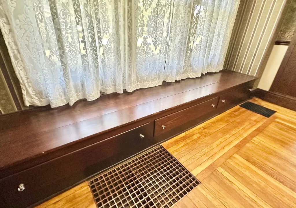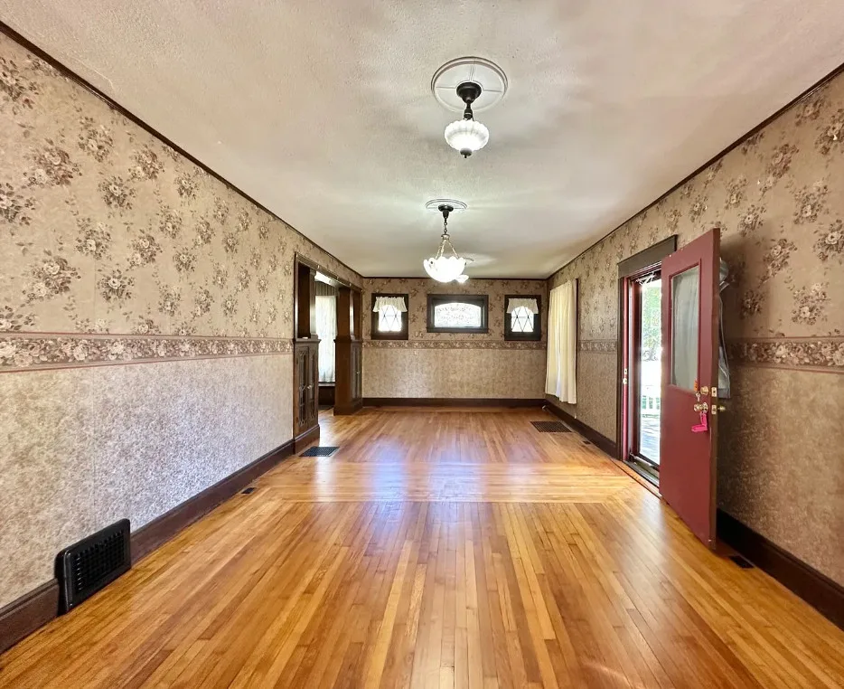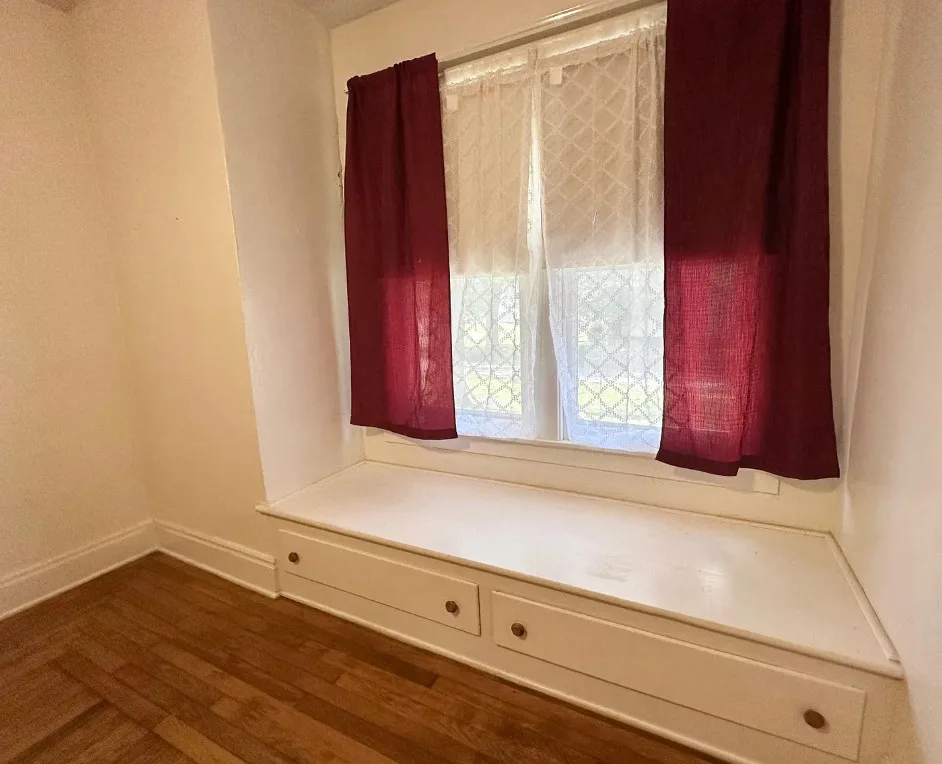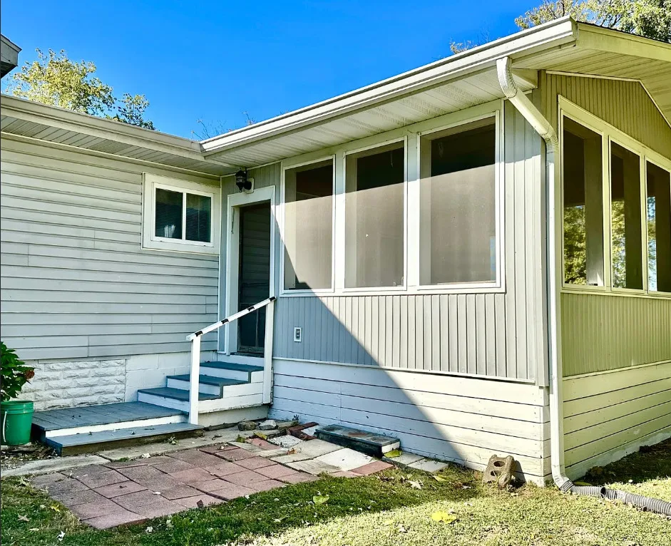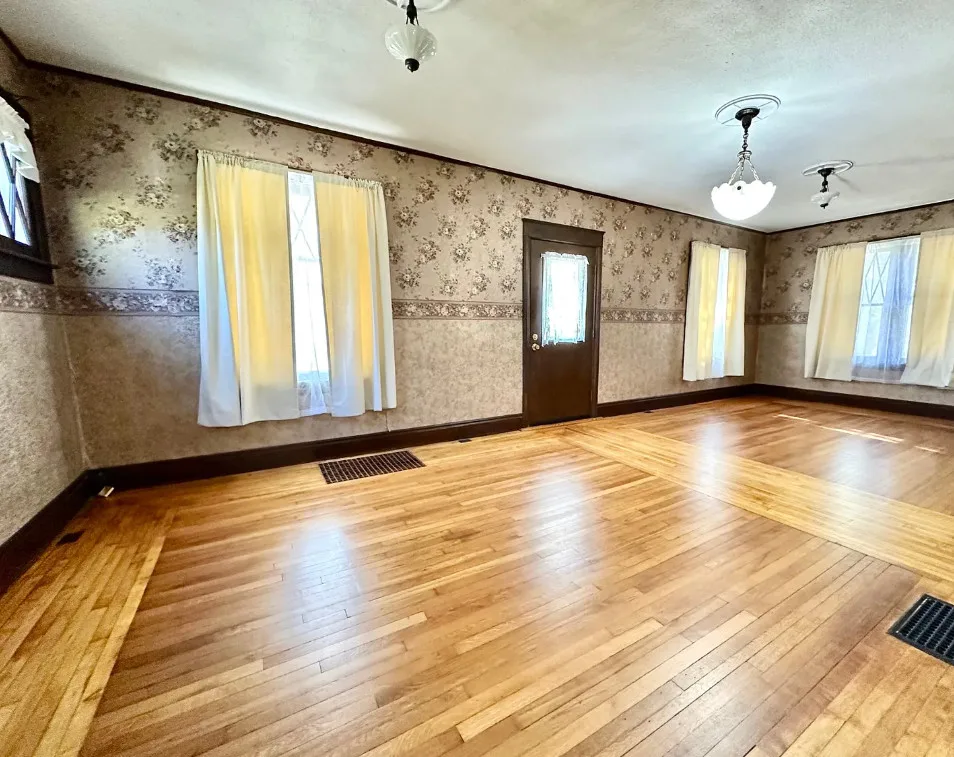 This house has pretty details inside! The house was built in 1917. It is located on .31 acre in Farina, Illinois. The house features a covered front porch, a detached three car garage, wood floors, baseboards, built-in bookshelves, leaded glass windows, in-laid hardwood floors and a built-in china cabinet. There is a nice screened in porch out back. Three bedrooms, one bathroom and 2,387 square feet. $187,000