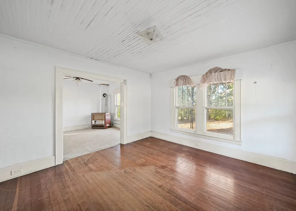This house looks like a diamond in the rough to me! Move in and work room by room. The house was built in 1925. It is located on 1.44 acres in Peachland, North Carolina. The house features a covered front porch, original wood floors, built-in bookshelves, wide baseboards and french doors. Two bedrooms, one bathroom and 1,025 square feet. $129,500