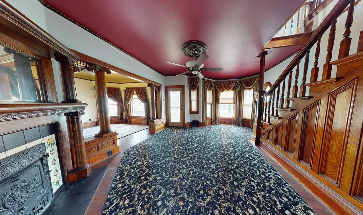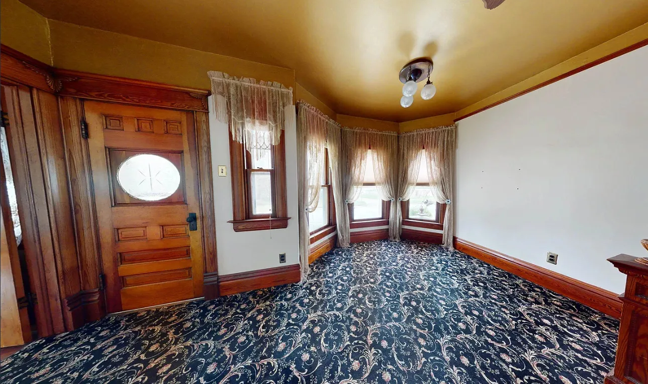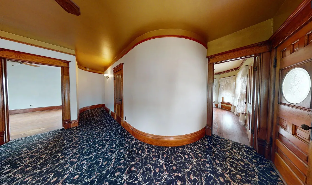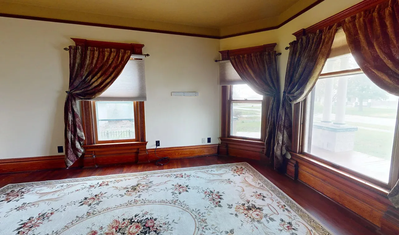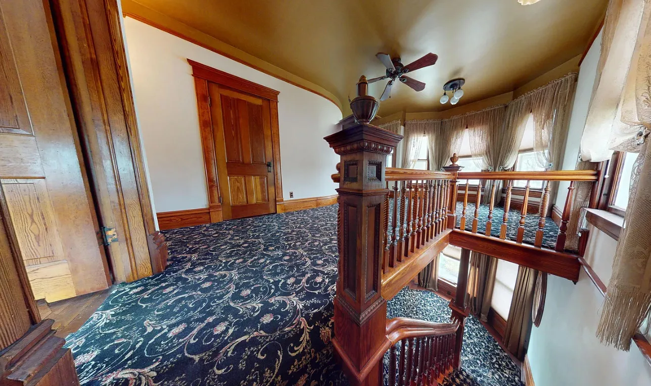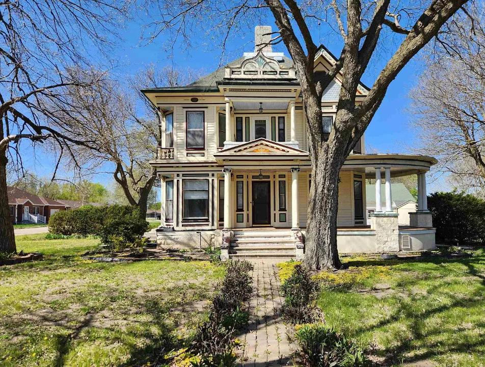 This house has a pretty staircase and woodwork! It also has a big kitchen! The house was built in 1907. It is located on .31 acre in Blue Hill, Nebraska. The house features a covered front porch, balcony, wood floors, grand staircase, coffered ceiling, baseboards, spacious kitchen, leaded glass and a claw foot tub. The property has a detached garage and a storage shed. Four bedrooms, two bathrooms and 2,134 square feet. $220,000