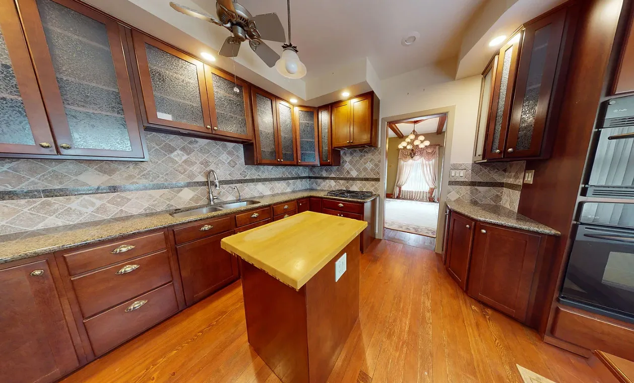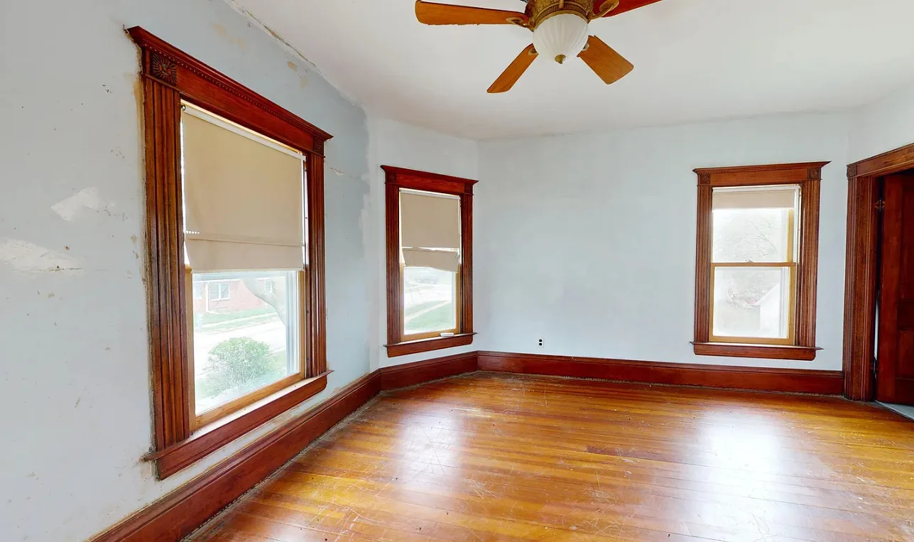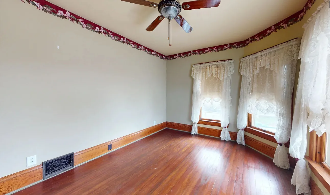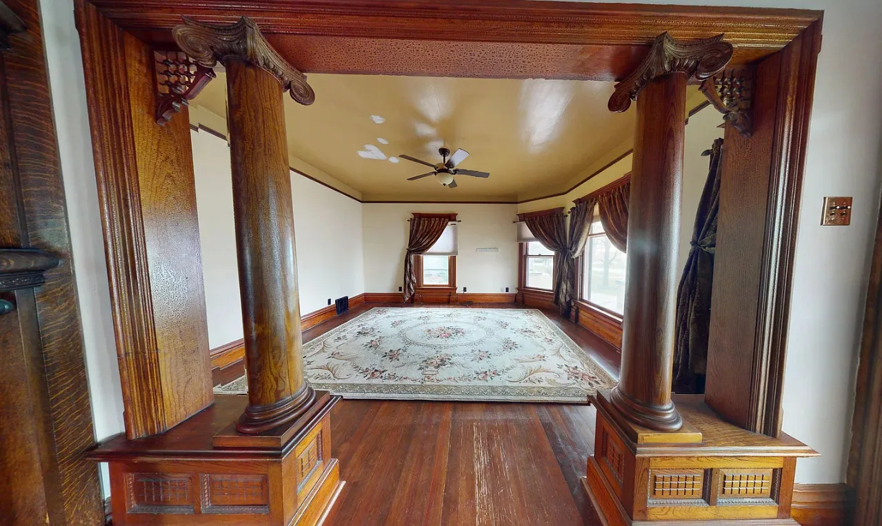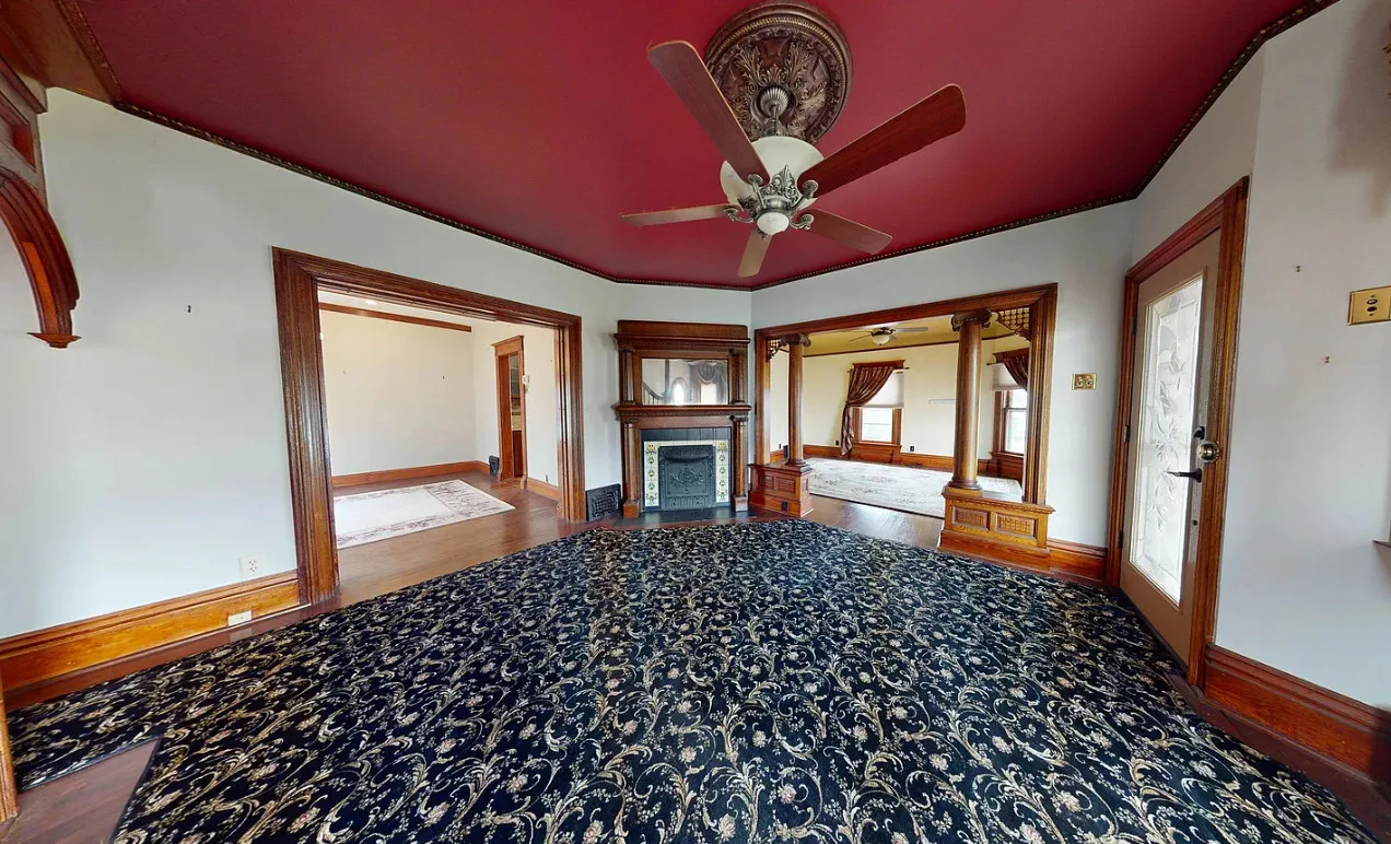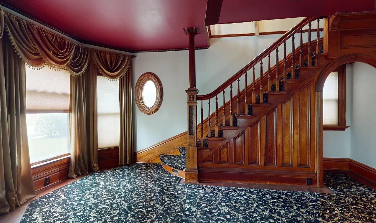 This house has a pretty staircase and woodwork! It also has a big kitchen! The house was built in 1907. It is located on .31 acre in Blue Hill, Nebraska. The house features a covered front porch, balcony, wood floors, grand staircase, coffered ceiling, baseboards, spacious kitchen, leaded glass and a claw foot tub. The property has a detached garage and a storage shed. Four bedrooms, two bathrooms and 2,134 square feet. $220,000