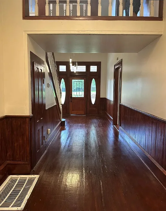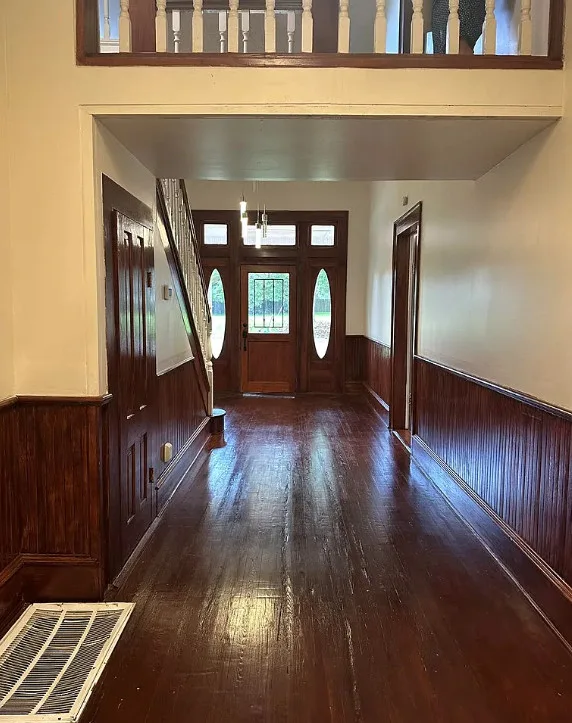 Historic home with extra parcel with pond, Power has been updated to code, some new plumbing done ,foundation has been inspected and reenforced. Beautiful hardwood floors. With the extra parcel making this 2.5 Ac. Home is being sold as is. We do have a recent inspection.