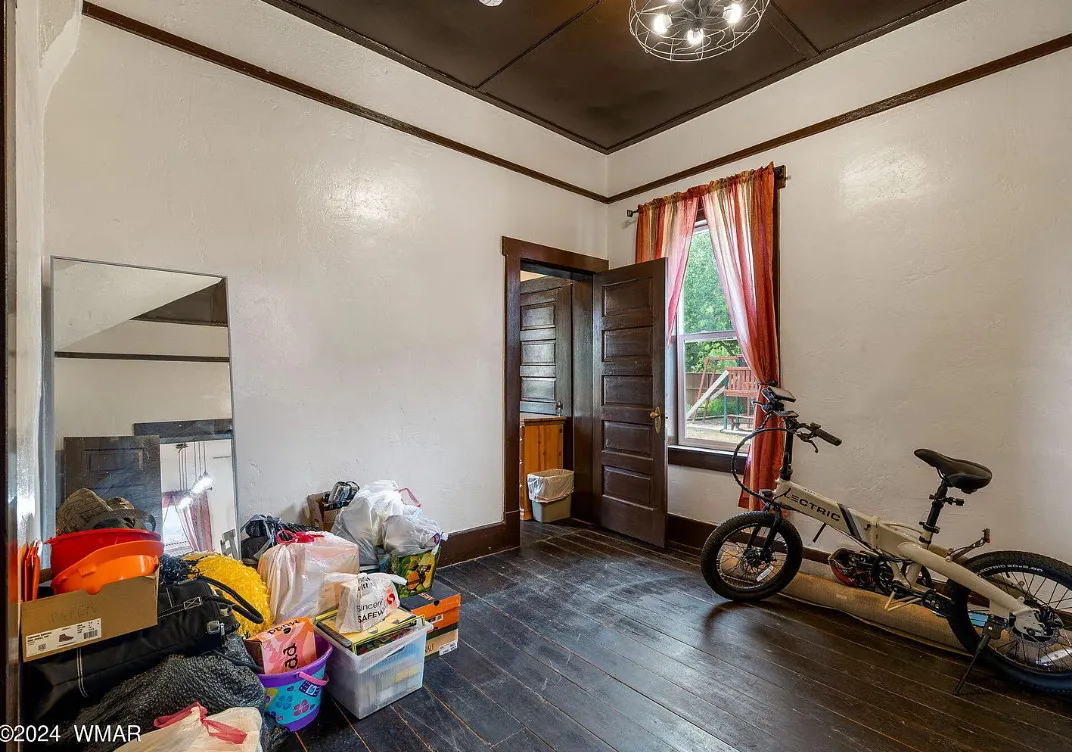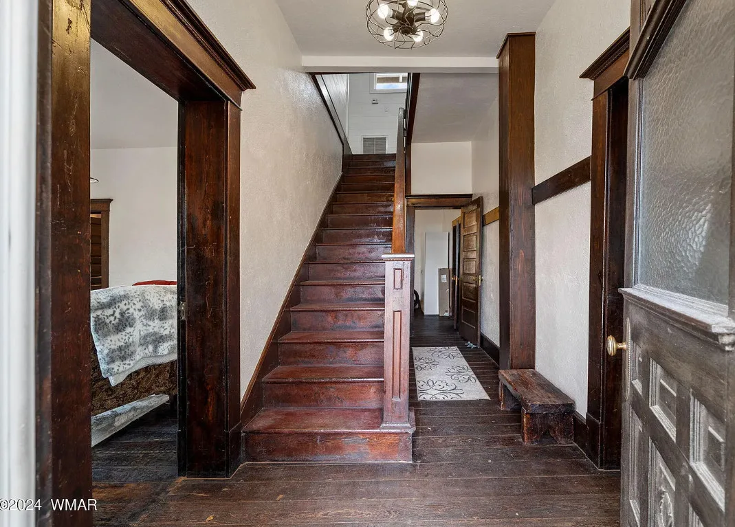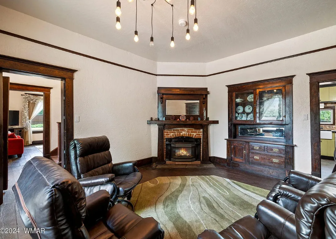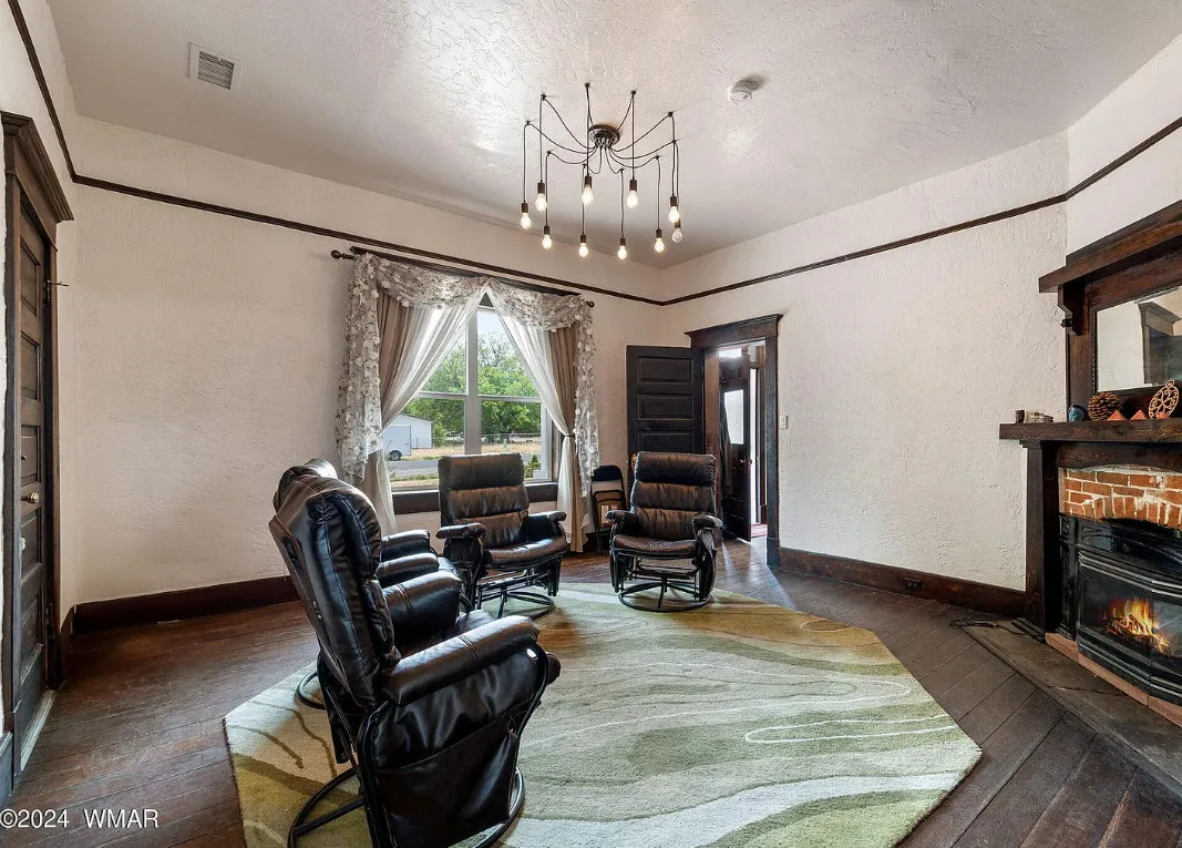 This Arizona house has original details inside! Known as the Rencher Home. The Rencher family left Texas in 1900 and arrived in Arizona and started building this house. It was completed in 1912. The house is located on .42 acre in Eagar, Arizona. The house features original wood floors, nice staircase, chair rails, picture rails, original mantels, baseboards and unpainted millwork. There is a spacious backyard with a detached storage shed. Four bedrooms, two bathrooms and 2,294 square feet. $349,900
