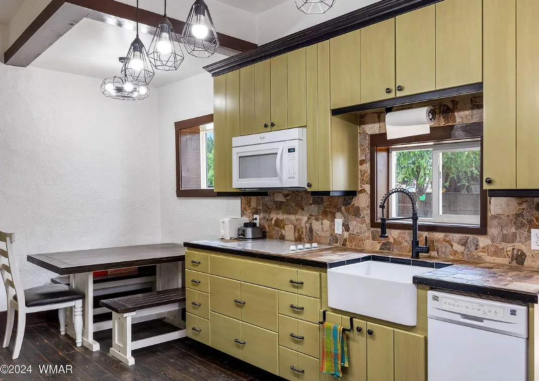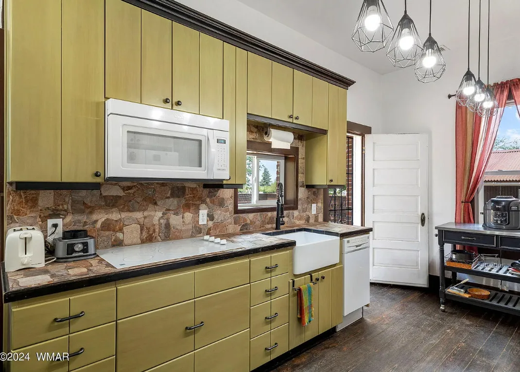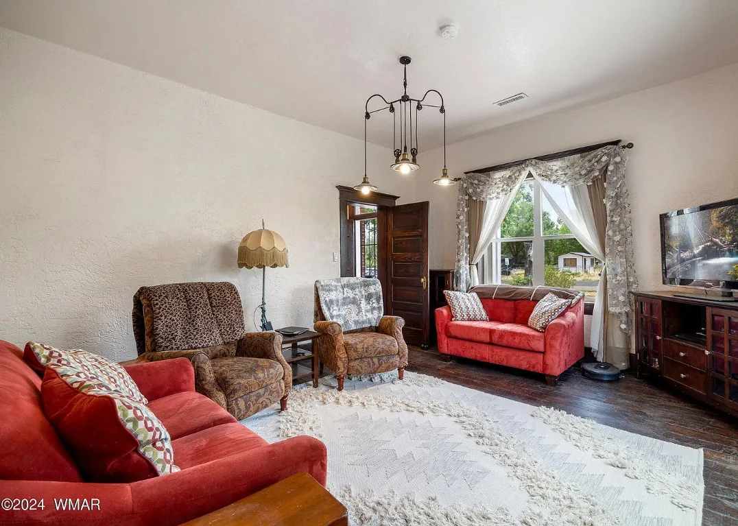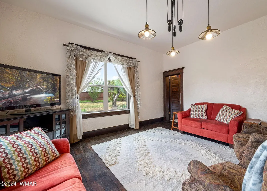 This Arizona house has original details inside! Known as the Rencher Home. The Rencher family left Texas in 1900 and arrived in Arizona and started building this house. It was completed in 1912. The house is located on .42 acre in Eagar, Arizona. The house features original wood floors, nice staircase, chair rails, picture rails, original mantels, baseboards and unpainted millwork. There is a spacious backyard with a detached storage shed. Four bedrooms, two bathrooms and 2,294 square feet. $349,900