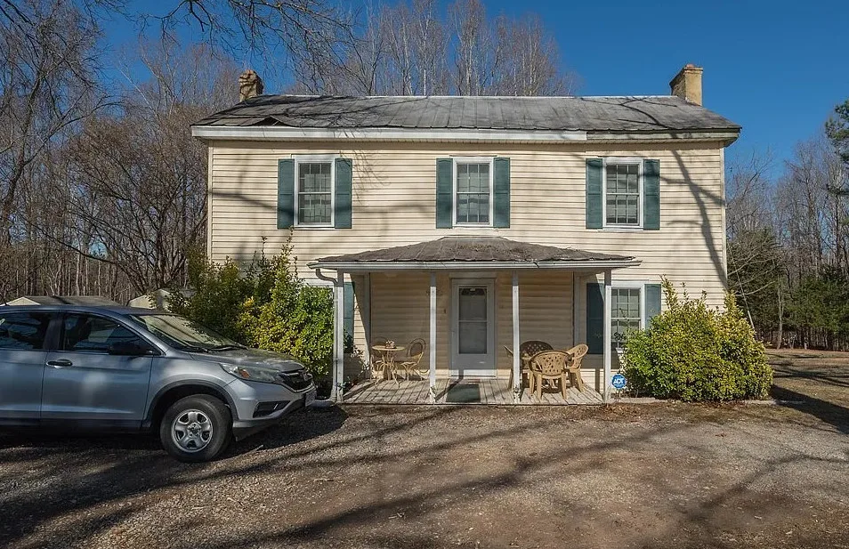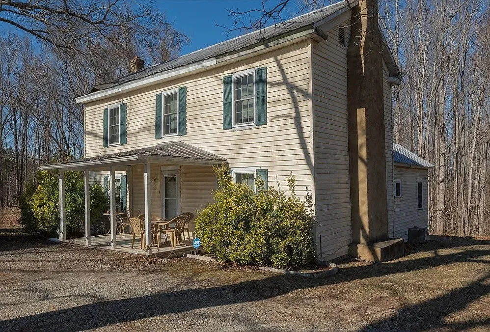 This fixer upper alert has some nice acreage! Pretty setting! The house was built in 1923. It is located on 13.68 acres in Powhatan, Virginia. The house features a covered front porch and some original wood floors. This is a pretty are of Virginia, not far from Richmond. Three bedrooms, one bathroom and 1,577 square feet. $258,000