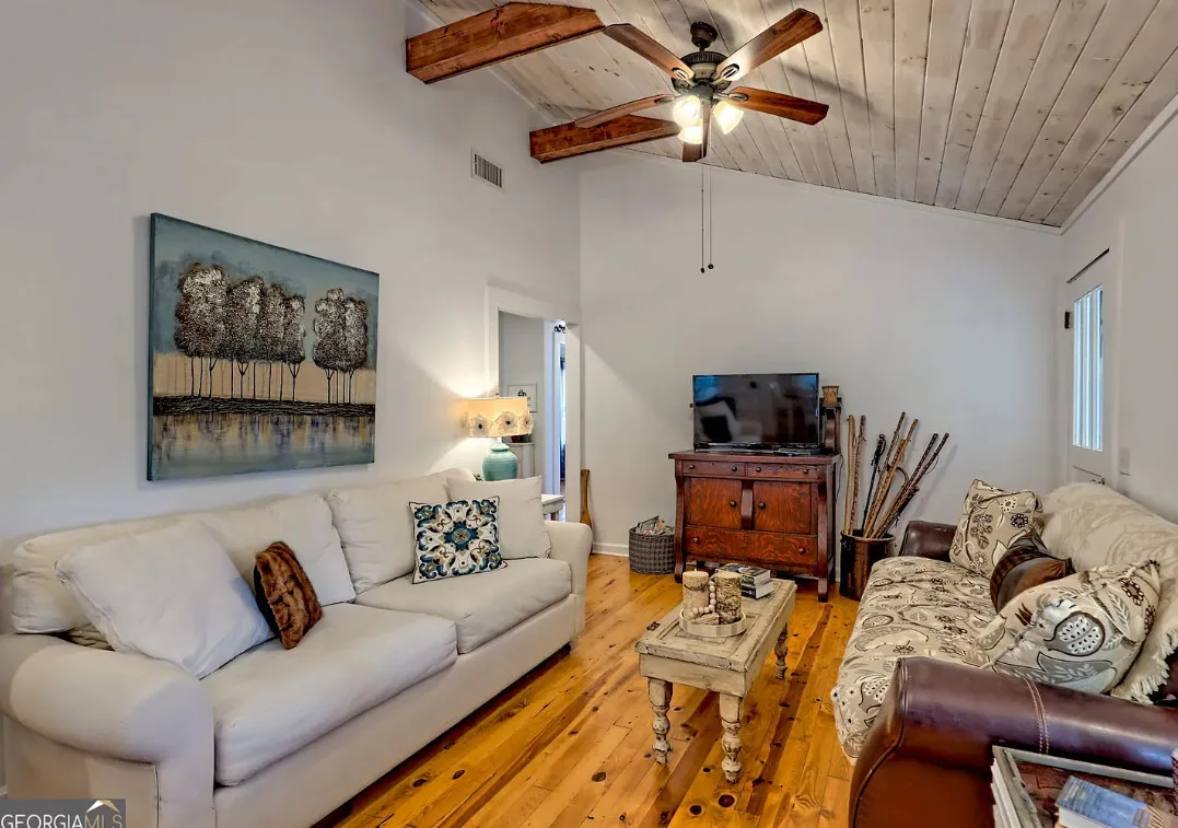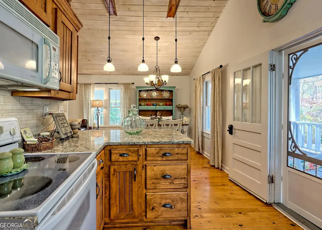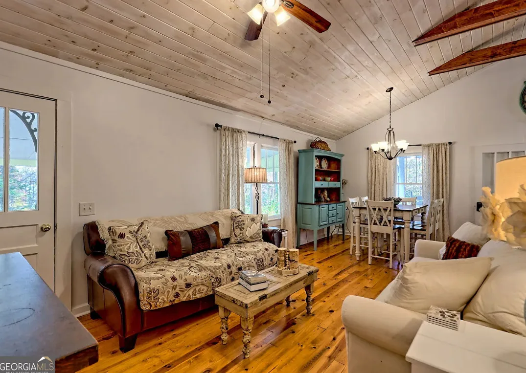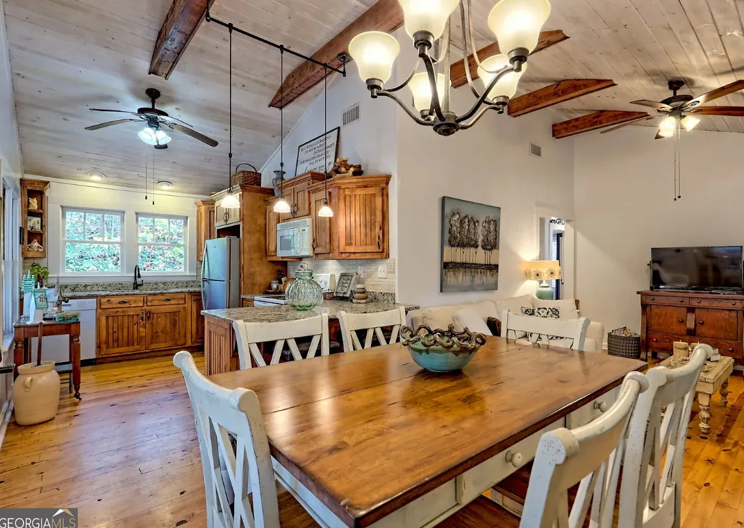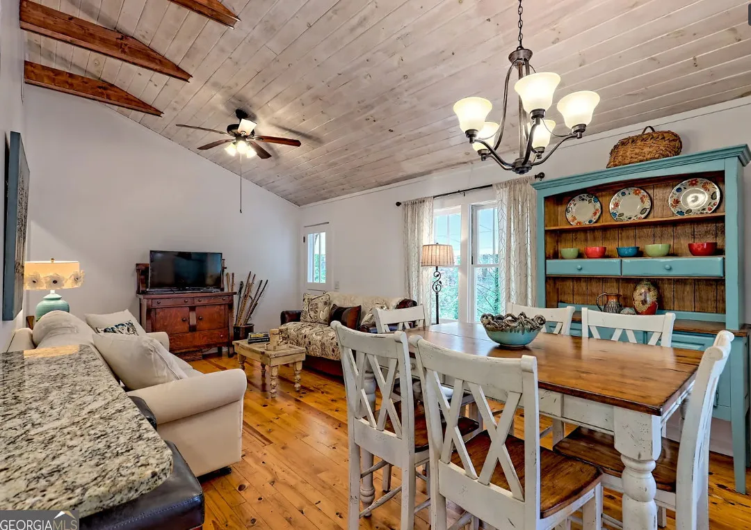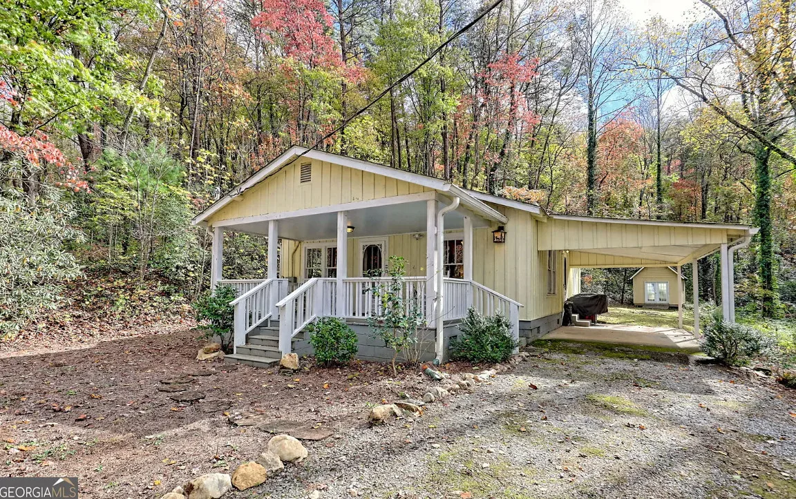 A 1945 Clayton Cottage Full of Heart and Character. Welcome to 140 Barron Road – a charming 1945 cottage that blends classic mountain character with thoughtful updates. Tucked away on 1.12 acres just minutes from downtown Clayton, this 3-bedroom, 1-bath home is the perfect size for a cozy full-time residence or a relaxing weekend retreat. Step onto the spacious covered front porch and imagine quiet mornings with coffee or evenings in a rocking chair listening to the sounds of nature. Inside, the beamed ceiling in the living room adds warmth and charm, while the updated kitchen features granite countertops and a breakfast bar – the perfect spot for casual meals or conversation with friends. Outside, there’s plenty of space for a garden, a small fire pit, or simply enjoying the seasonal mountain views. The property also includes an attached carport, a handy storage shed, public water, and reliable cell service. Just a short drive from Clayton’s shops, restaurants, and outdoor adventures, this inviting cottage offers the best of mountain living – peaceful, simple, and full of charm.