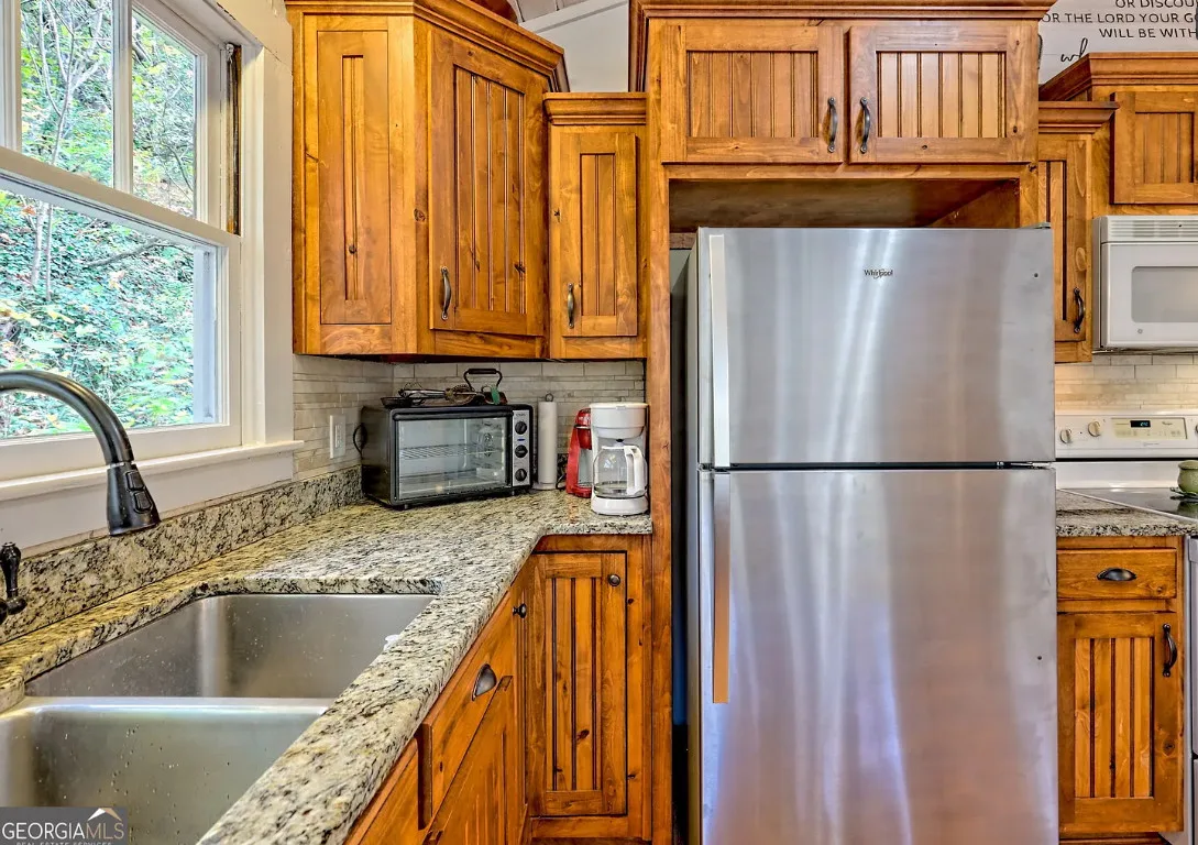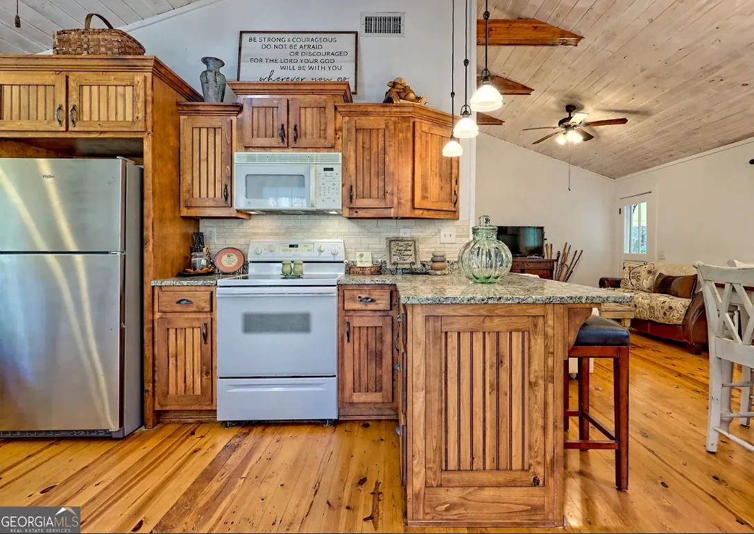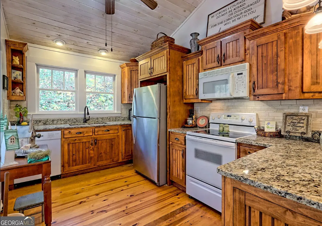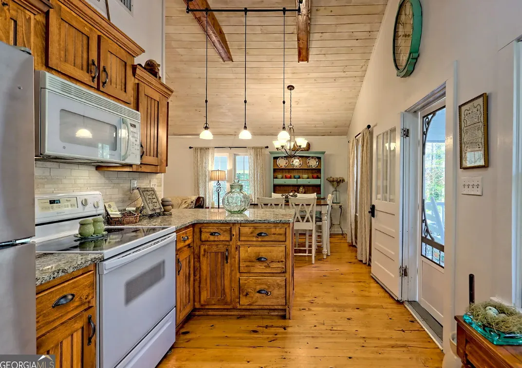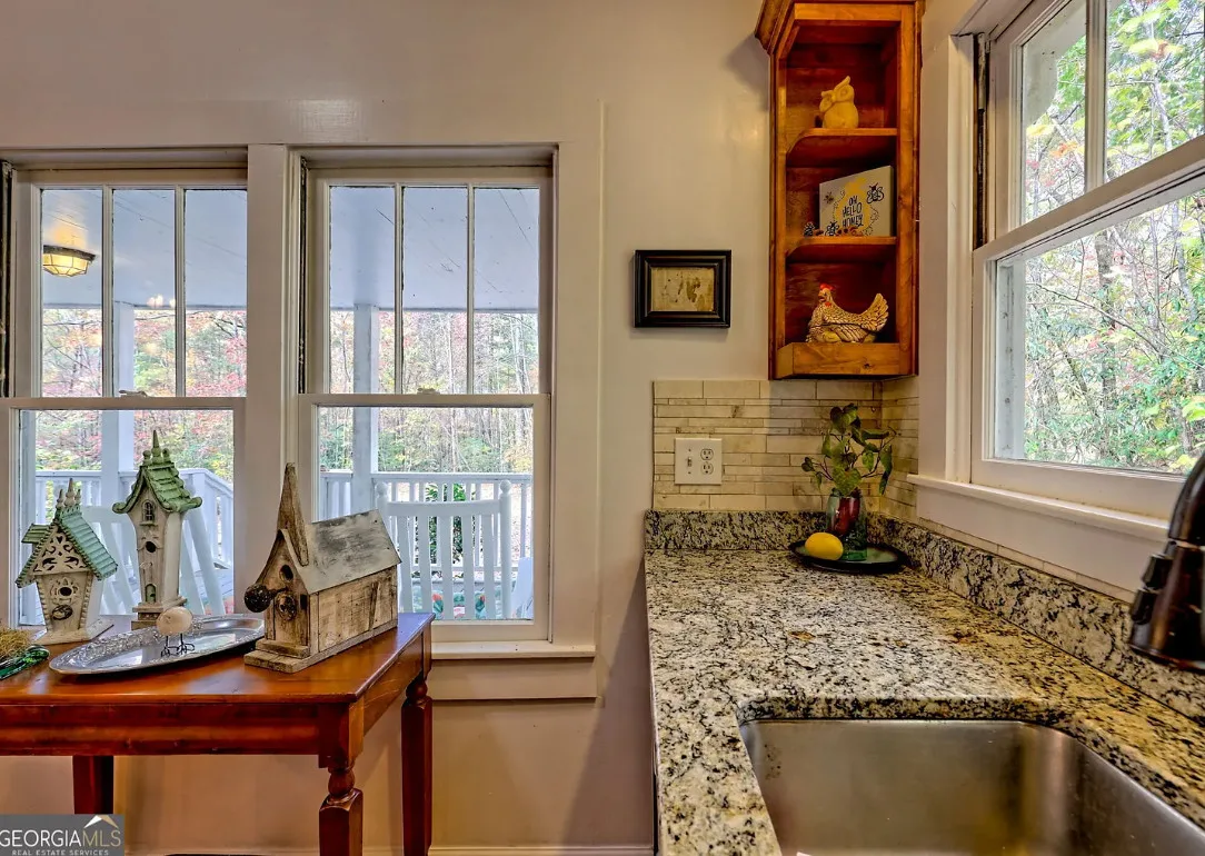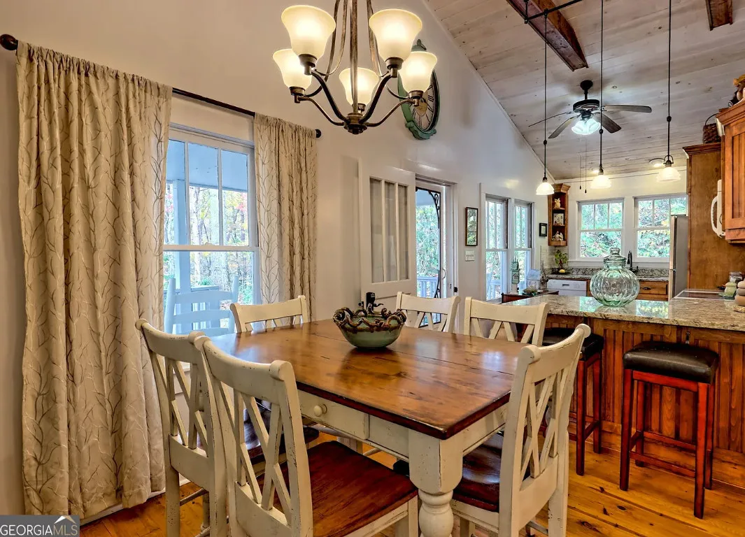 A 1945 Clayton Cottage Full of Heart and Character. Welcome to 140 Barron Road – a charming 1945 cottage that blends classic mountain character with thoughtful updates. Tucked away on 1.12 acres just minutes from downtown Clayton, this 3-bedroom, 1-bath home is the perfect size for a cozy full-time residence or a relaxing weekend retreat. Step onto the spacious covered front porch and imagine quiet mornings with coffee or evenings in a rocking chair listening to the sounds of nature. Inside, the beamed ceiling in the living room adds warmth and charm, while the updated kitchen features granite countertops and a breakfast bar – the perfect spot for casual meals or conversation with friends. Outside, there’s plenty of space for a garden, a small fire pit, or simply enjoying the seasonal mountain views. The property also includes an attached carport, a handy storage shed, public water, and reliable cell service. Just a short drive from Clayton’s shops, restaurants, and outdoor adventures, this inviting cottage offers the best of mountain living – peaceful, simple, and full of charm.