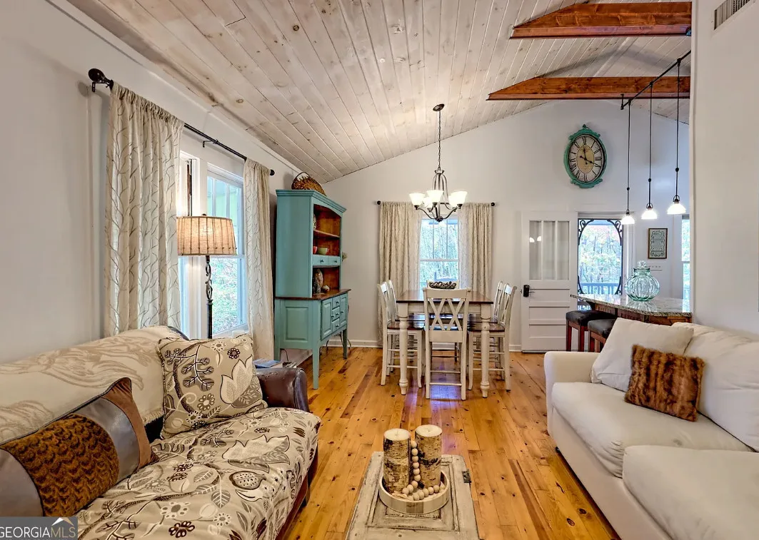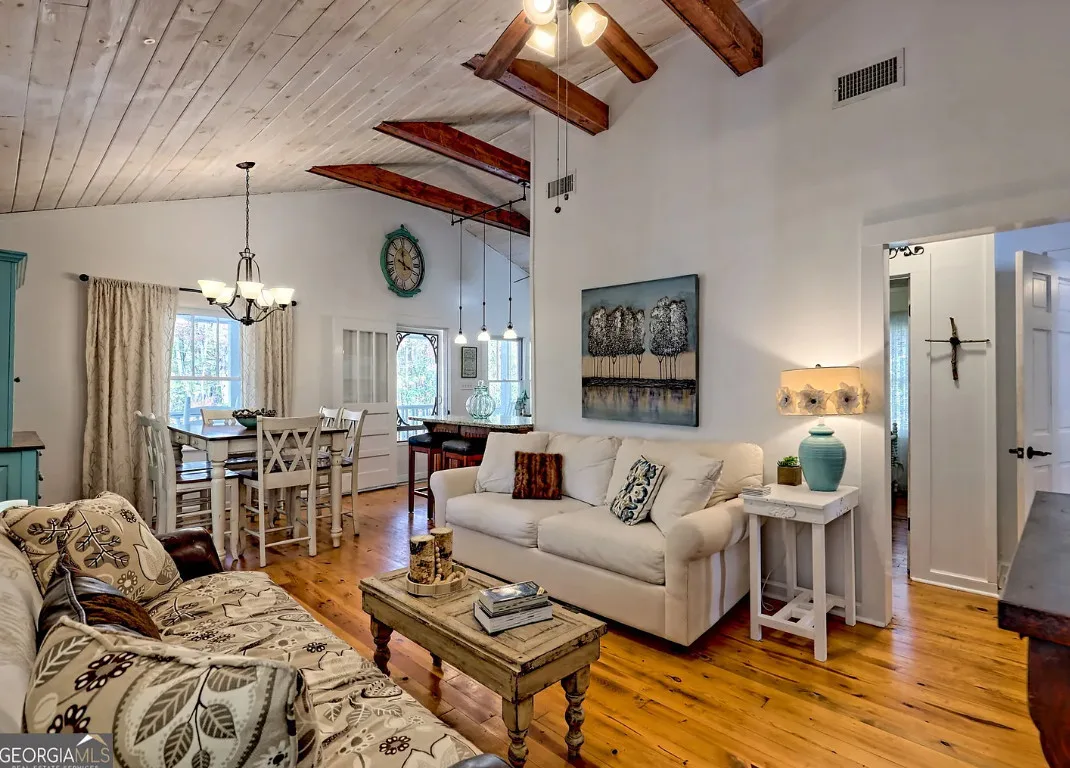 This house has a cute interior! The house was built in 1945. It is located on 1.12 acres in Clayton, Georgia. The house features a covered front porch, carport, pretty wood floors, country kitchen, vaulted ceiling, exposed beams and an updated bathroom. There are seasonal mountain views and the house isn’t far from downtown amenities. Three bedrooms, one bathroom and 962 square feet. $296,000