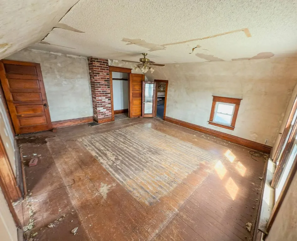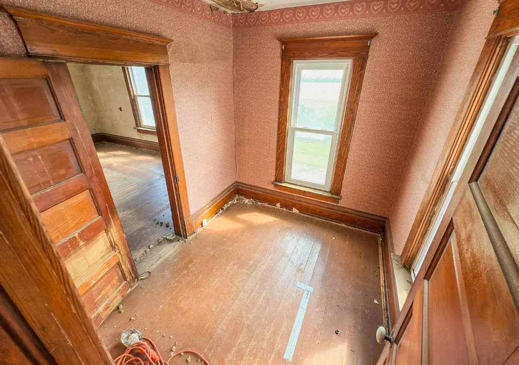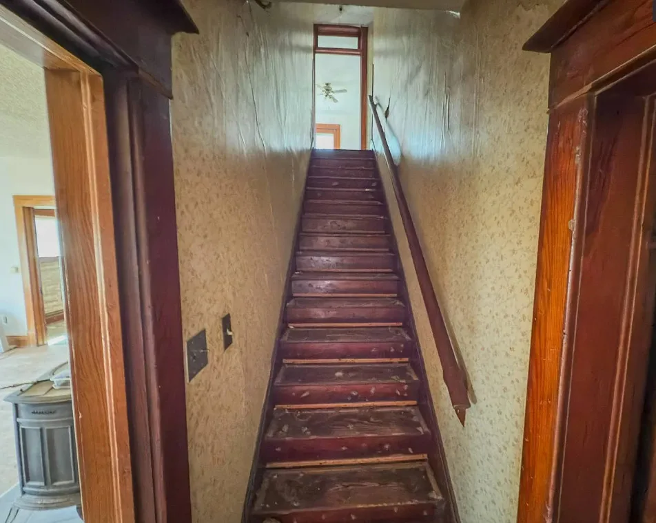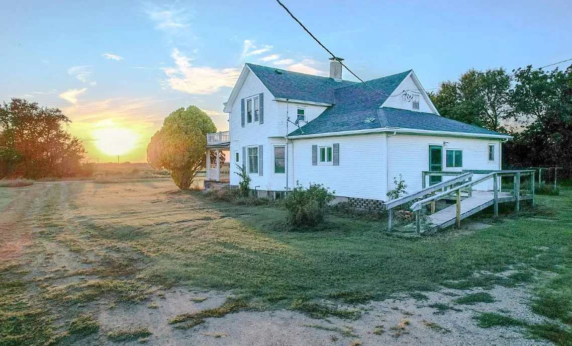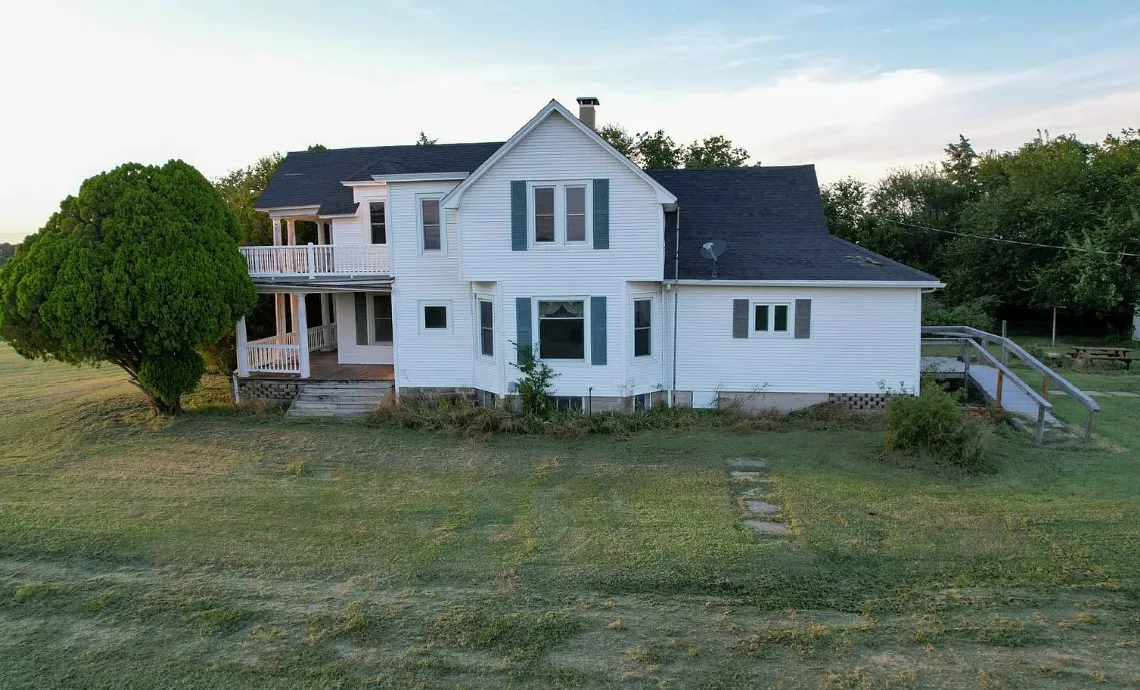 This house has a lot of potential! Nice acreage! The house was built in 1900. It is located on 4.8 acres in Lyons, Kansas. The house features double front porches, original wood floors, baseboards and solid wood doors with original hardware. Glad they got the carpeting up. There are a couple of outbuildings on the property. Three bedrooms, one bathroom and 2,352 square feet. $125,000