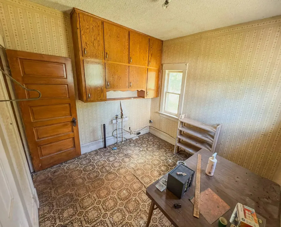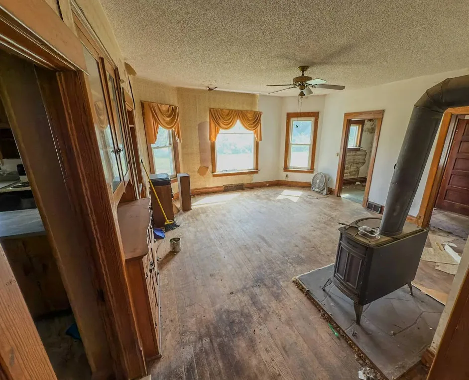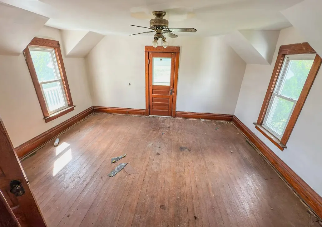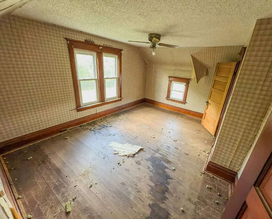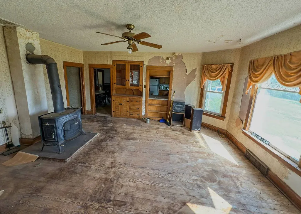 This house has a lot of potential! Nice acreage! The house was built in 1900. It is located on 4.8 acres in Lyons, Kansas. The house features double front porches, original wood floors, baseboards and solid wood doors with original hardware. Glad they got the carpeting up. There are a couple of outbuildings on the property. Three bedrooms, one bathroom and 2,352 square feet. $125,000