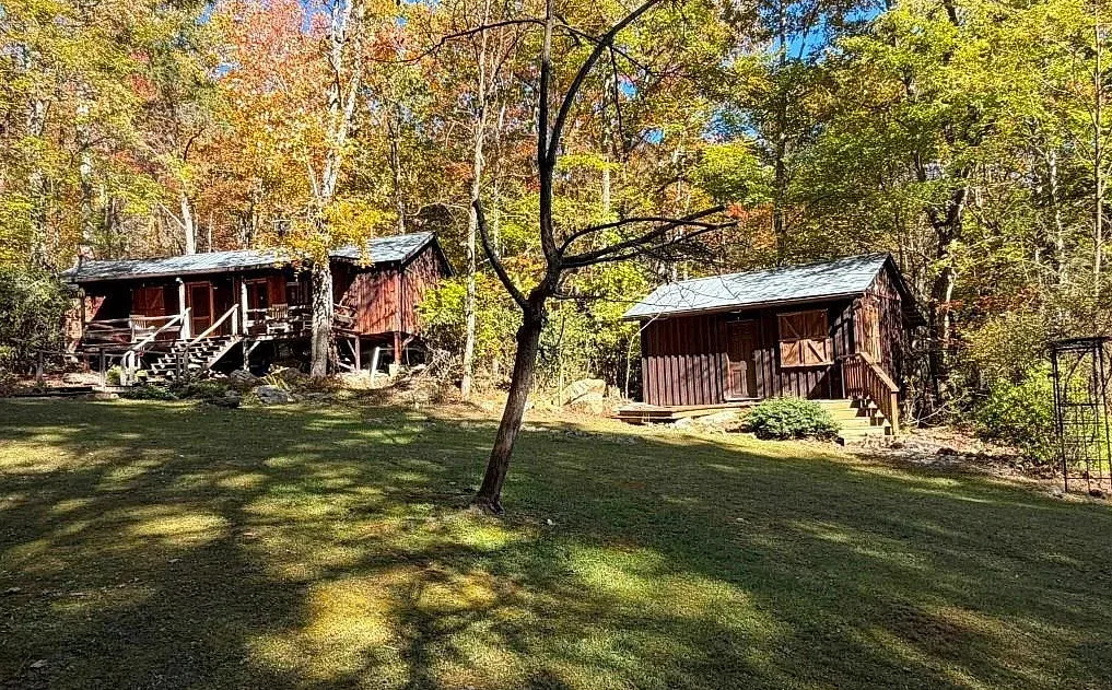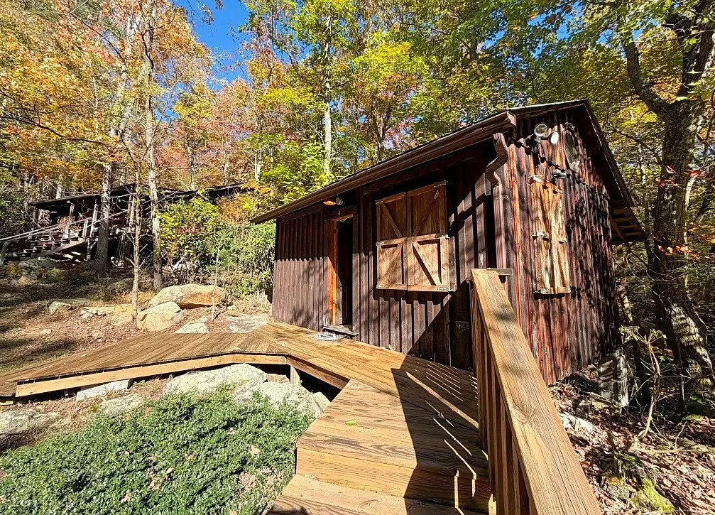 Discover Camp High Rock—an extraordinary legacy property bordering over 8,000 acres of protected natural land in Wytheville, VA. Spanning more than 9 ultra-private acres, this unique retreat features its own waterfall and a mountain spring-fed creek winding through the grounds. Once a beloved camp welcoming thousands of visitors, the property now offers a charming 2-bedroom, 1-bath cabin, a separate library that could be converted for additional living space, and a studio overlooking the bubbling waterfall—perfect for creative pursuits. Additional amenities include a spacious pole barn for storage and equipment, several bunk houses and outhouses for adventurous guests, and abundant wildlife roaming the adjacent Big Survey mountaintop reserve. Outdoor enthusiasts will appreciate the proximity to New River, Reed Creek, and Claytor Lake, ensuring endless recreational opportunities. Located just 10 minutes from downtown Wytheville and major interstates, Camp High Rock is a rare opportunity to own a private sanctuary with breathtaking views and a rich history. Plan your visit—and prepare to fall in love with this once-in-a-lifetime offering.