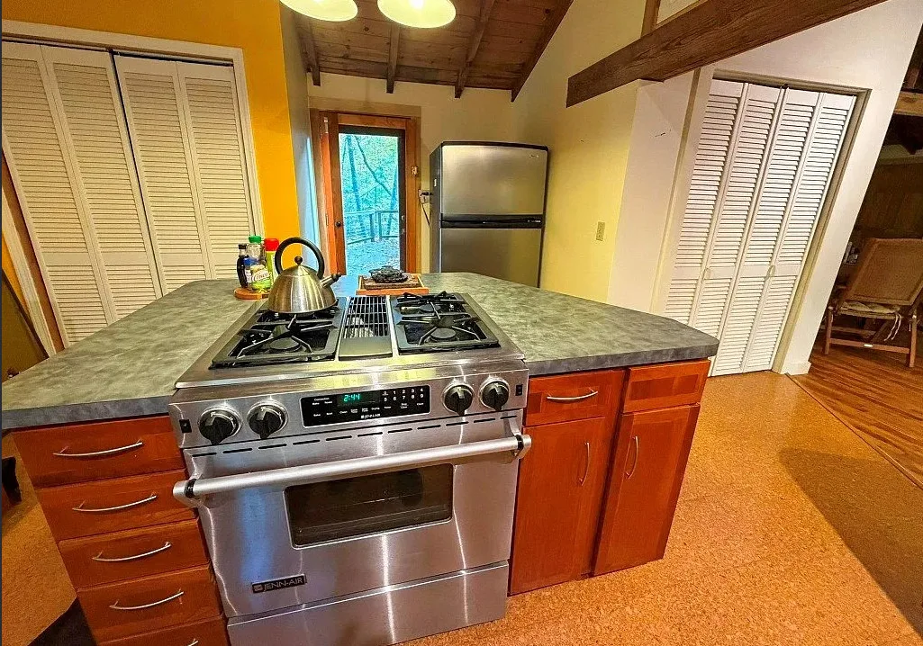 How about that private waterfall! There is even a little bunkhouse that overlooks the waterfall! This was the former Camp High Rock that once welcomed thousands of visitors. The camp was built in 1953. It is located on 9.11 acres in Wytheville, Virginia. The property includes a main house and several bunkhouses. The main house features a covered front porch, vaulted ceiling, wood floors and exposed beams. The property is surrounded by 8,000 acres of preserved land. This is a really beautiful area of Virginia. Two bedrooms, one bathroom and 1,332 square feet. $333,000