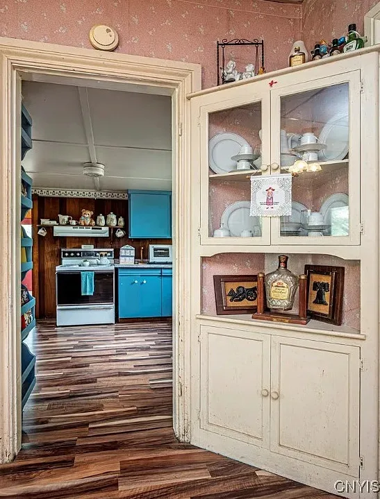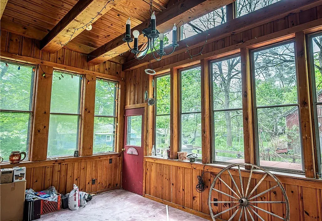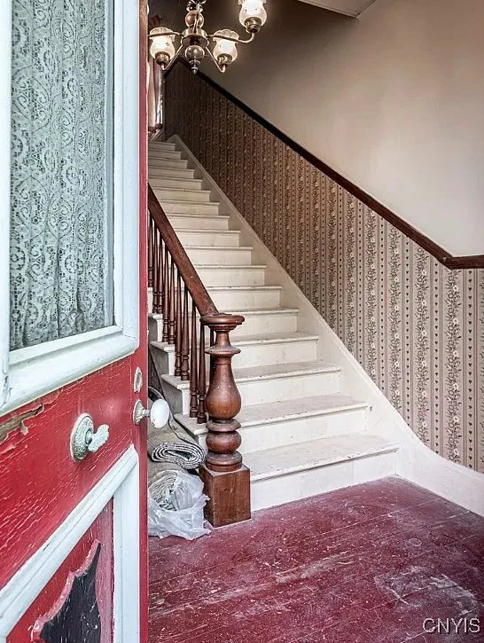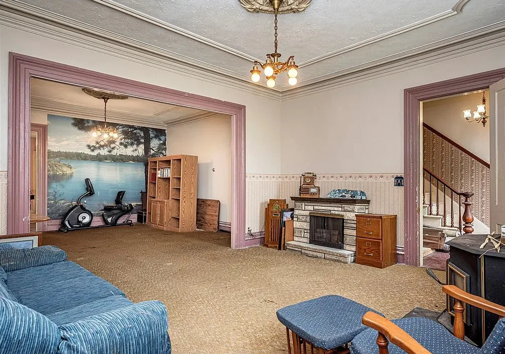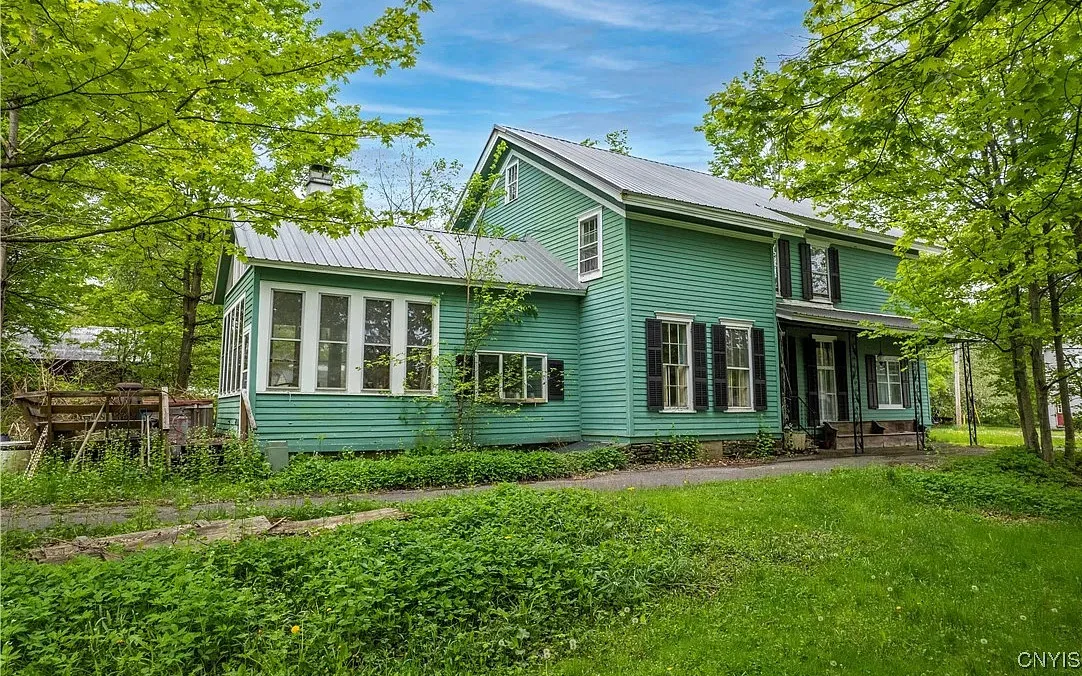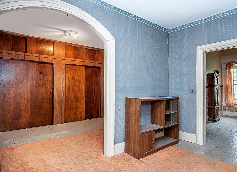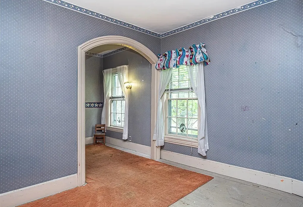 This house looks like a diamond in the rough! It has original details to work with! The house was built in 1860. It is located on 1.2 acres in Lee Center, New York. The house features double front doors, a covered side porch, nice staircase, baseboards, vintage light fixtures and ceiling medallions. There is a built in corner cabinet and crown moulding.The house definitely needs some work and undoing of past renovations, but it has nice potential. Four bedrooms, two bathrooms and 2,500 square feet. $119,900