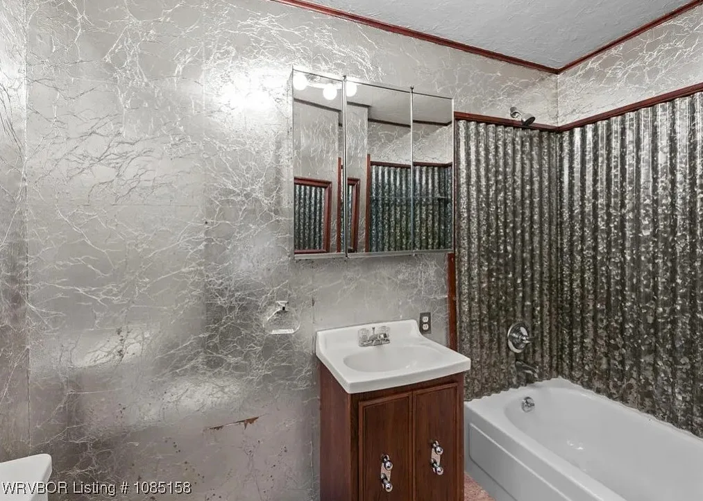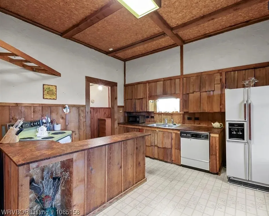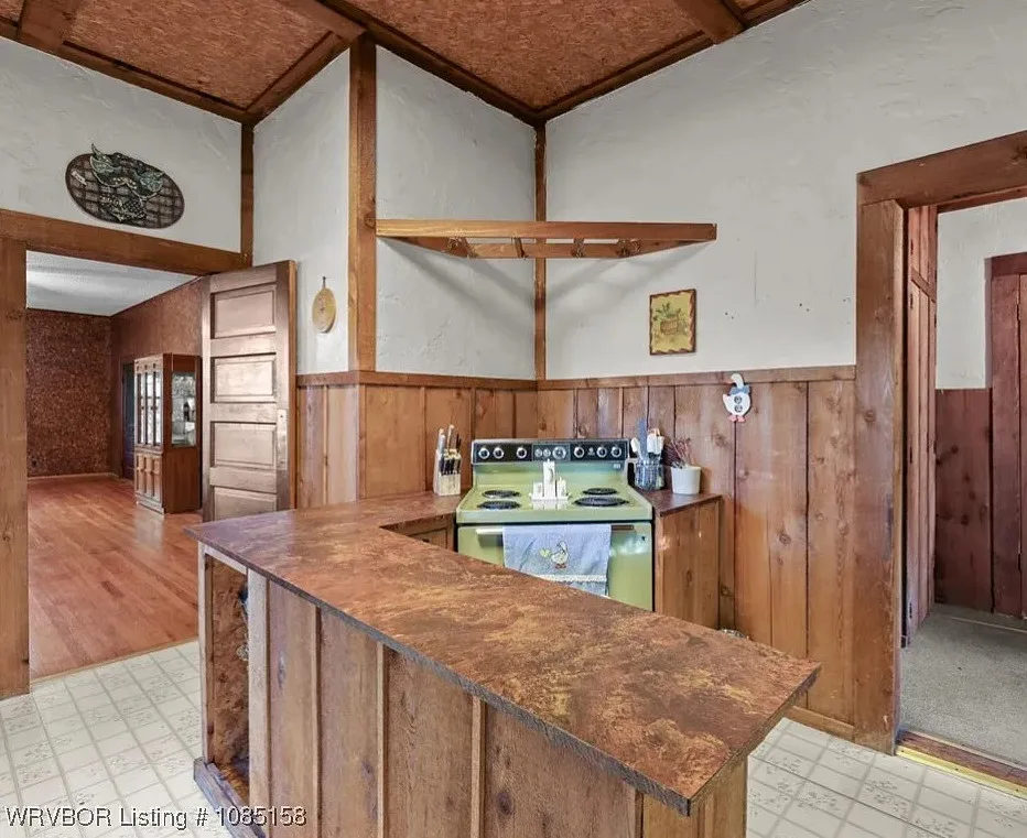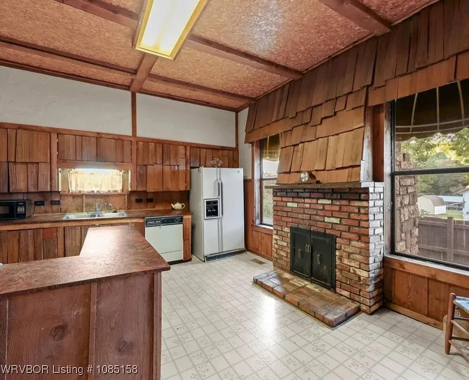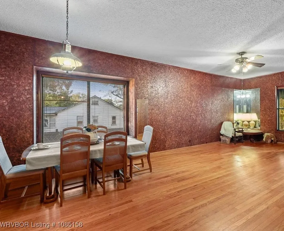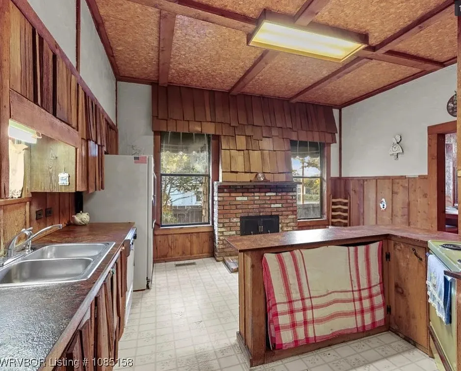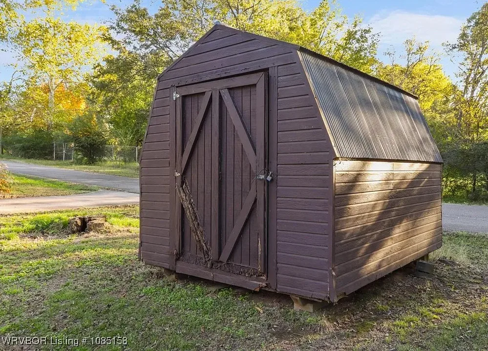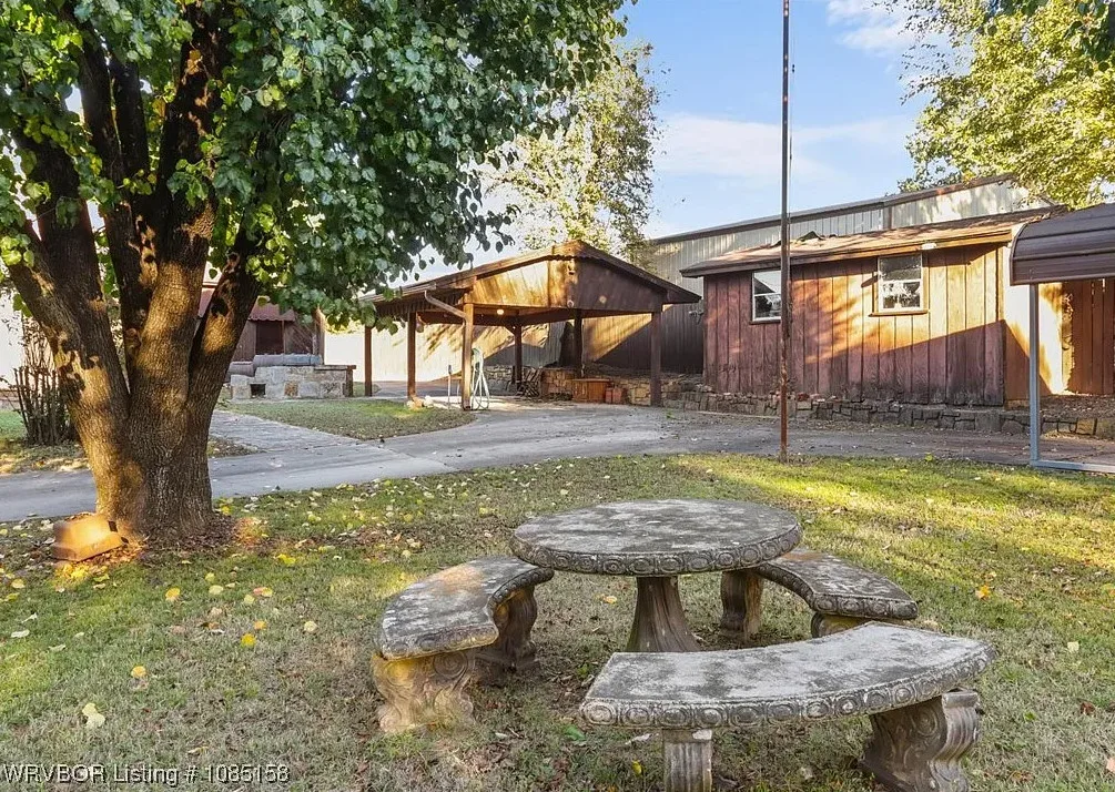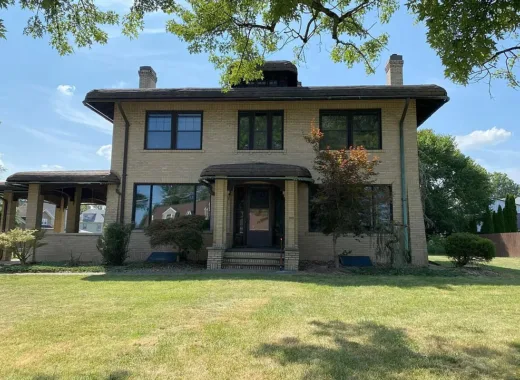 This is an interesting house in Oklahoma. I like the outdoor barbecue area. The house was built in 1910. It is located on .32 acre in Poteau, Oklahoma. The house features a large covered front porch, wood floors, brick fireplace in the kitchen, wainscoting and a large stone patio with barbecue. The property has two carports and a detached storage shed. Three bedrooms, two bathrooms and 1,521 square feet. $160,000