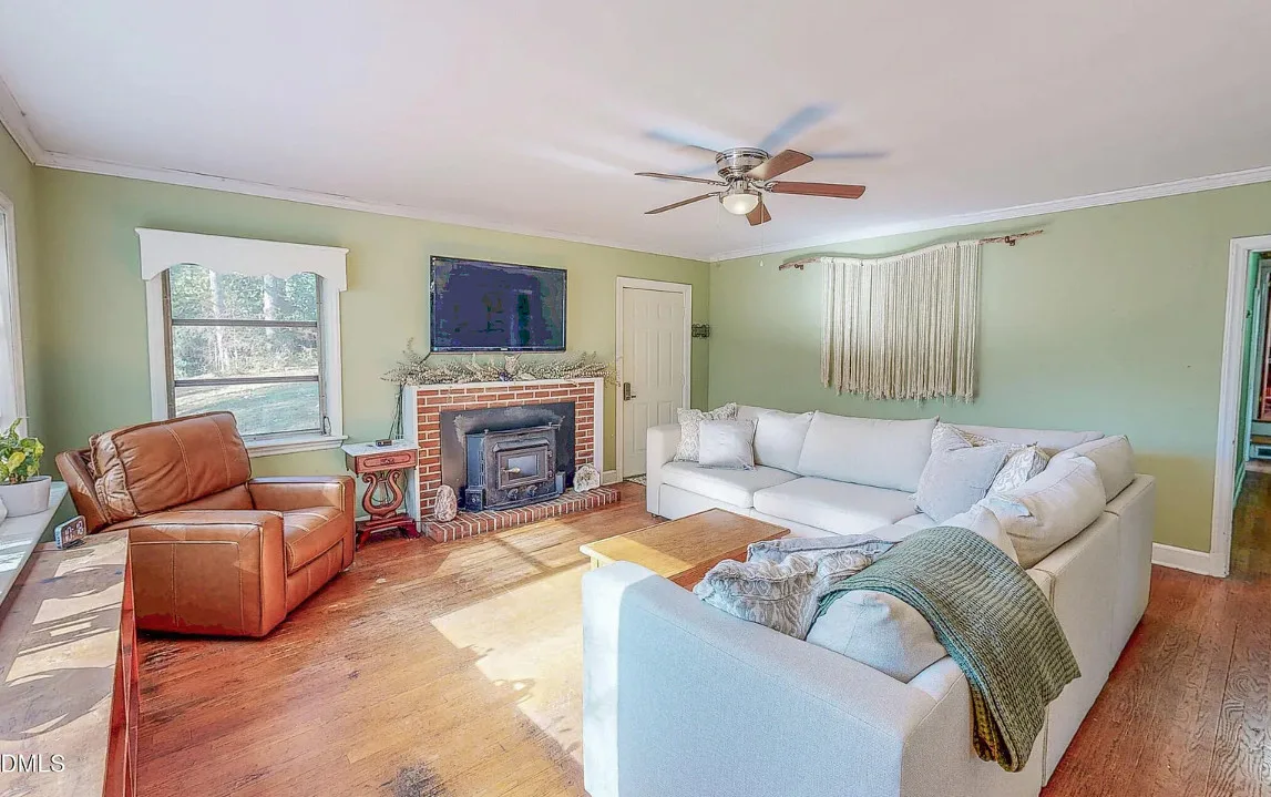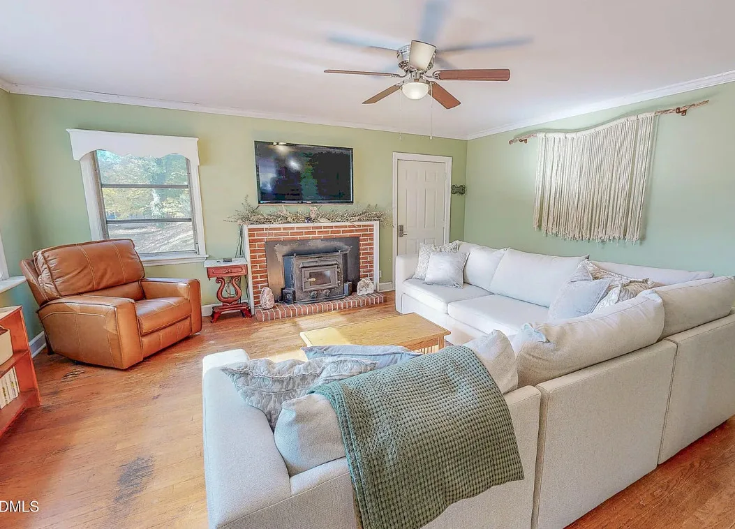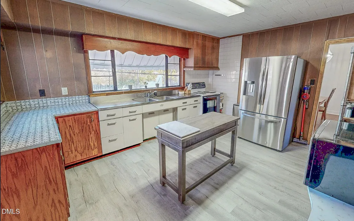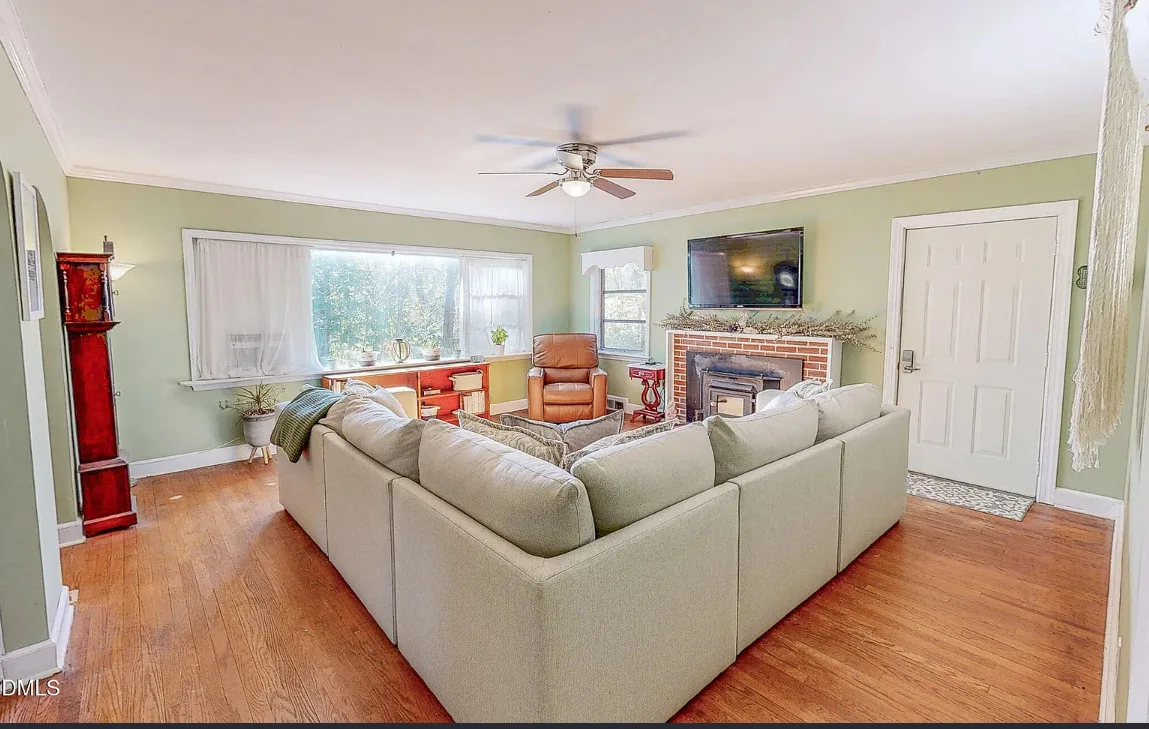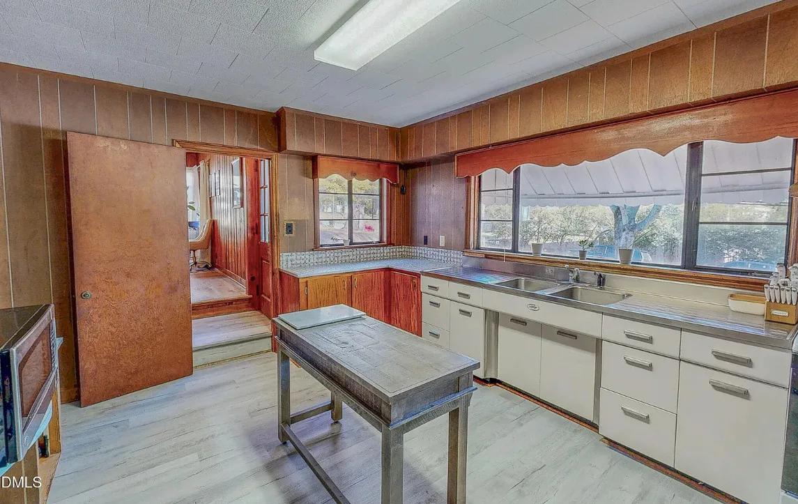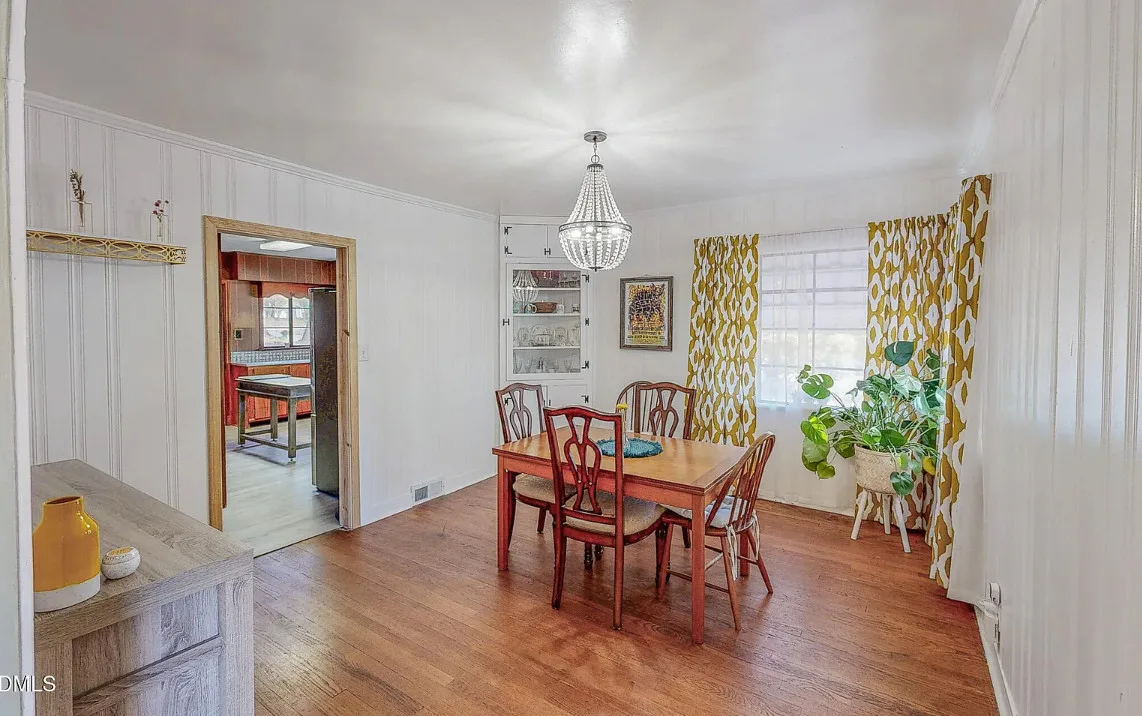 I love that back patio! There are some nice trees in the yard and the interior is nice! The house was built in 1901. It is located on .87 acre in Roxboro, North Carolina. The house features original wood floors, a lot of natural light, spacious kitchen and a den with knotty pine. There is an attached garage. The lot is large with mature trees and a beautiful backyard patio. Two bedrooms, one bathroom and 1,702 square feet. $229,900
