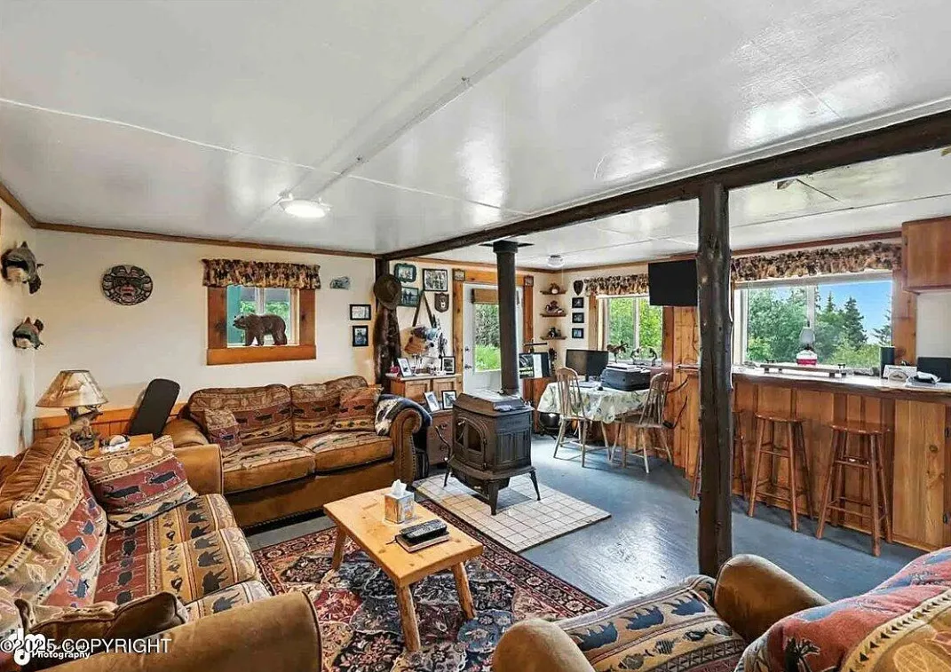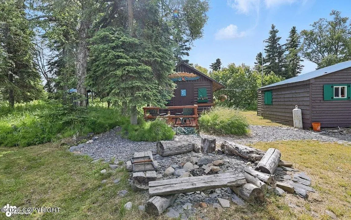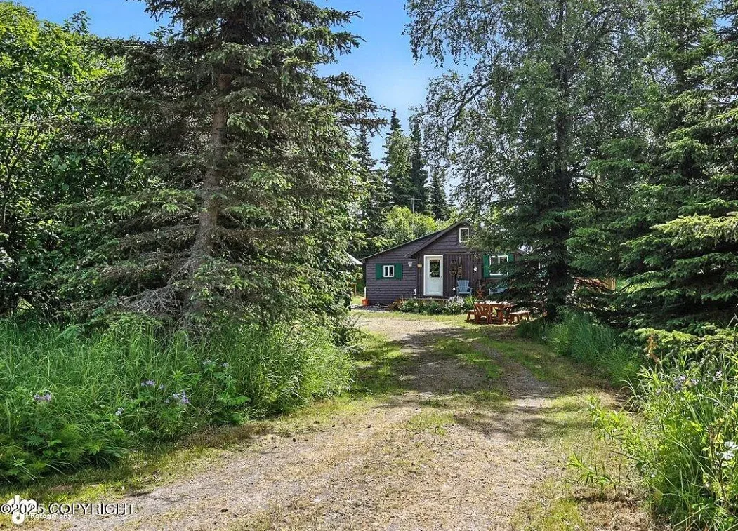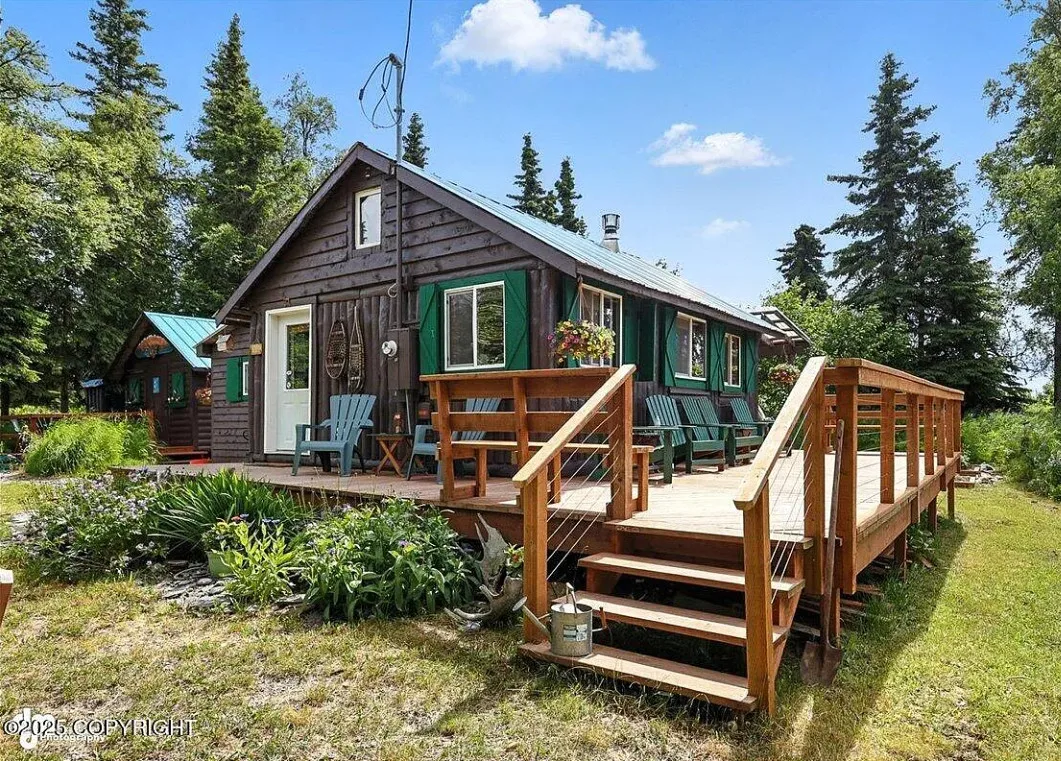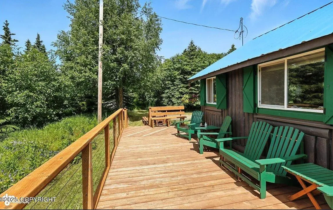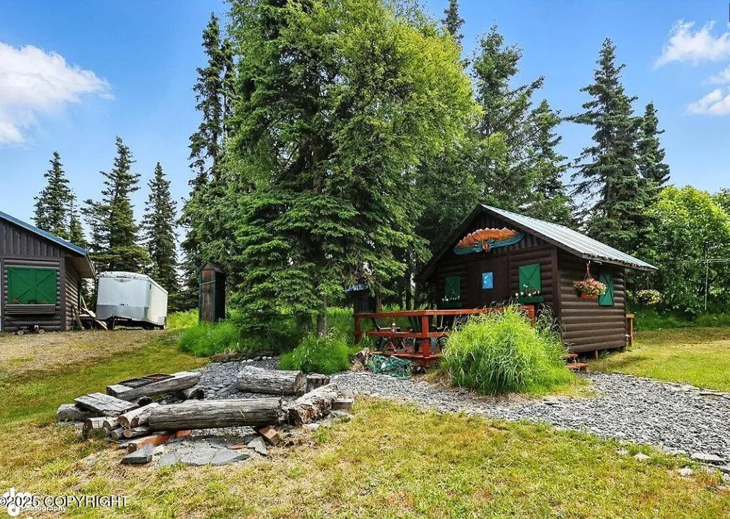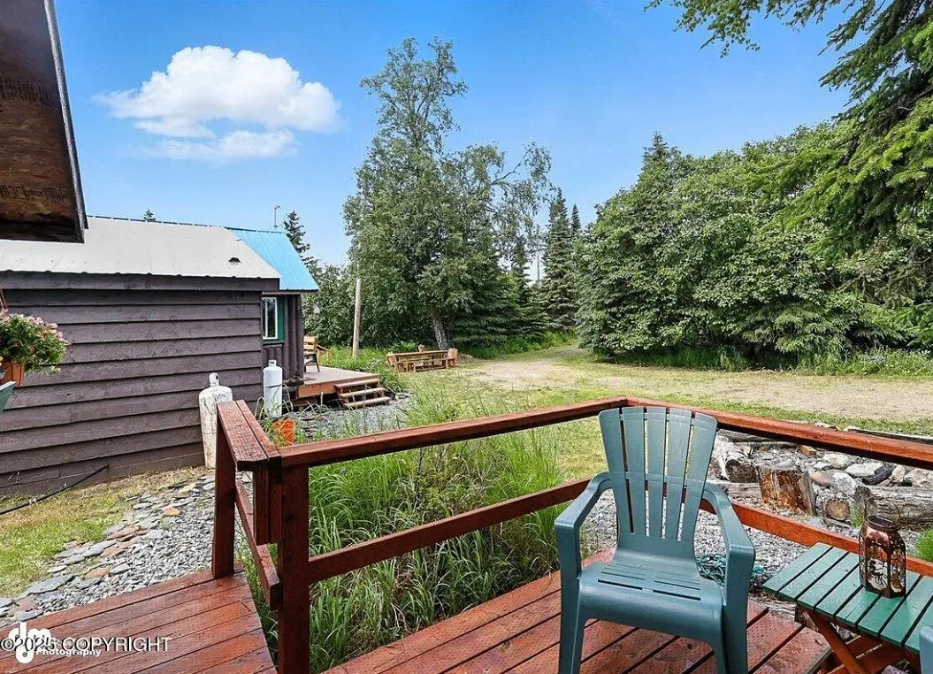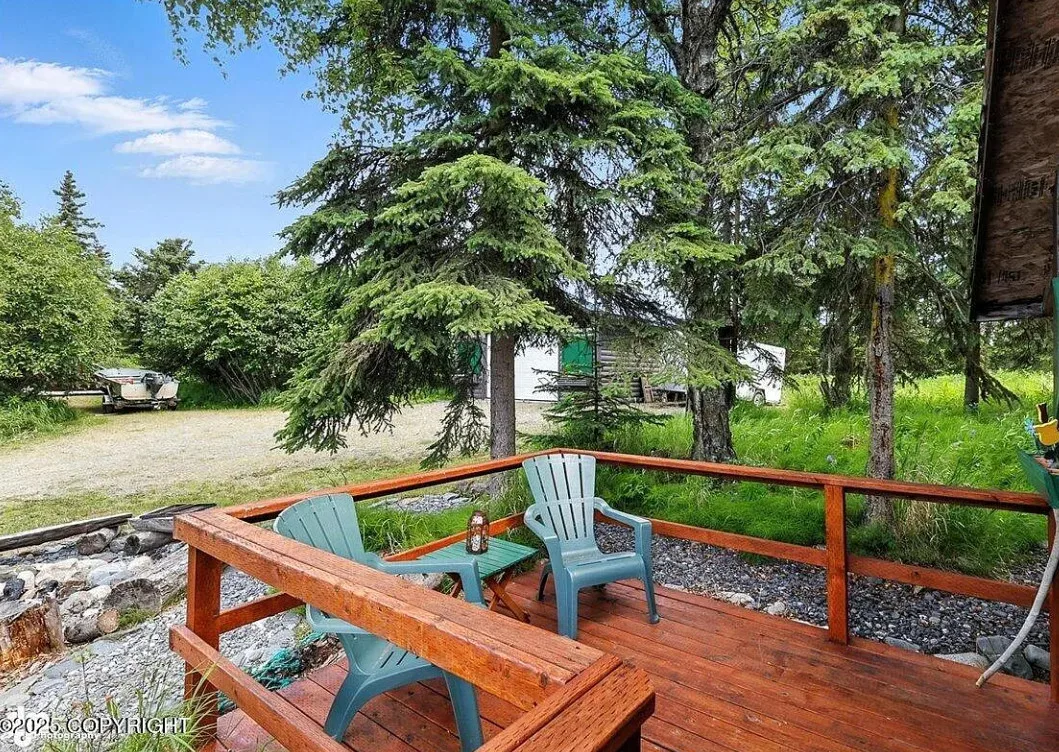 Alaska time! Love that there is a detached bunk house! Pretty setting! The house was built in 1949. It is located on 1.98 acres in Clam Gulch, Alaska. The house features a large deck, large open rooms and a log exterior. There is a detached bunk house and a detached garage. Two bedrooms, two bathrooms and 822 square feet. $250,000