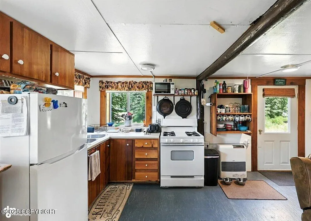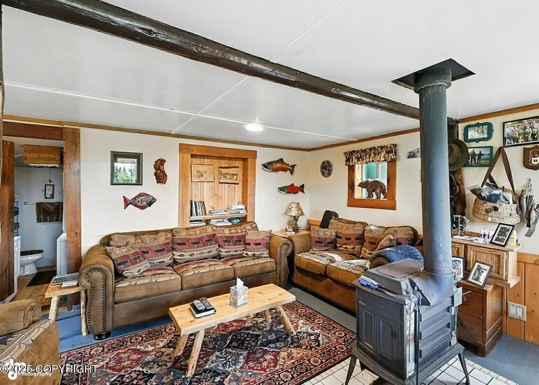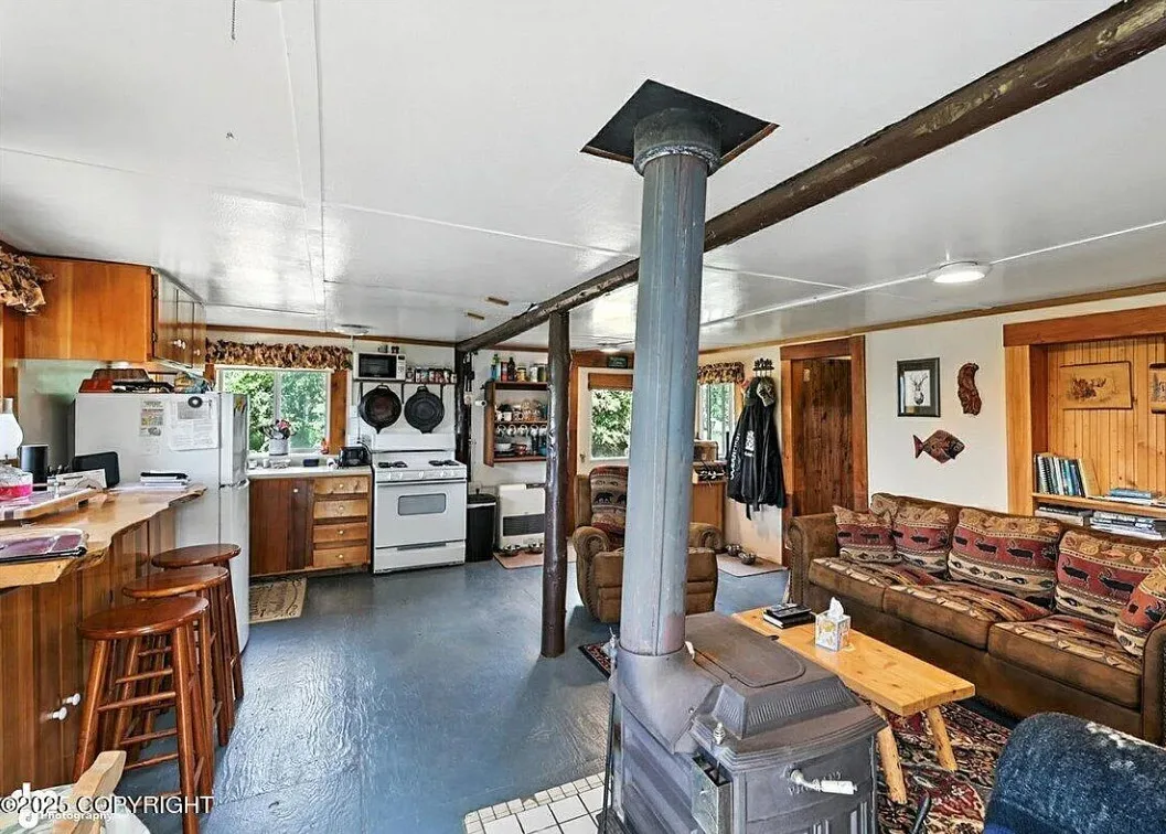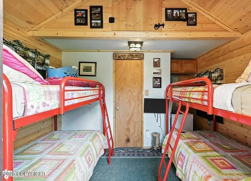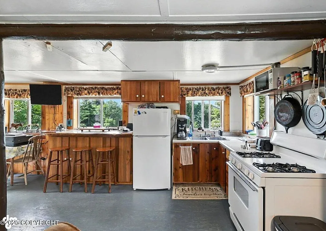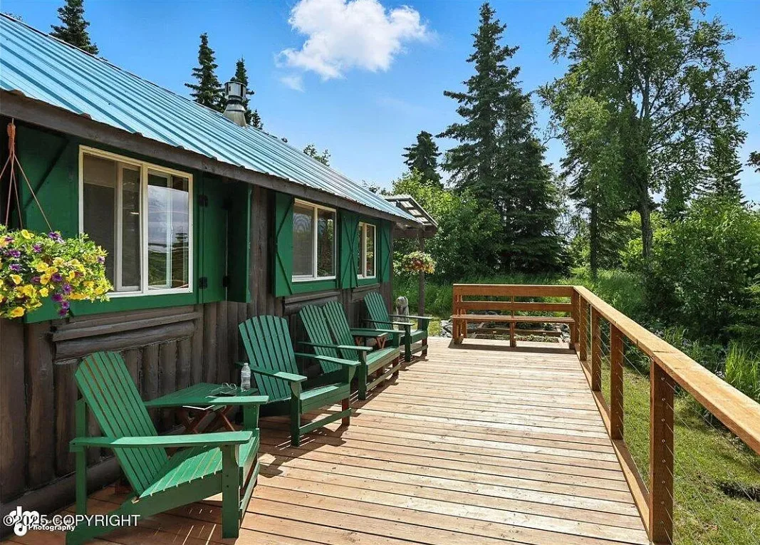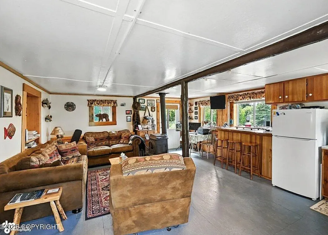 Alaska time! Love that there is a detached bunk house! Pretty setting! The house was built in 1949. It is located on 1.98 acres in Clam Gulch, Alaska. The house features a large deck, large open rooms and a log exterior. There is a detached bunk house and a detached garage. Two bedrooms, two bathrooms and 822 square feet. $250,000