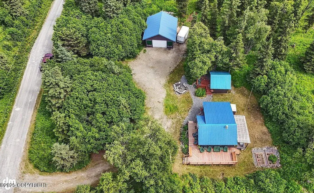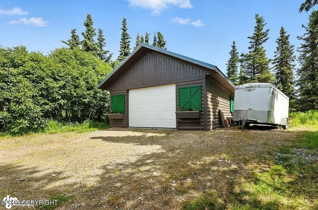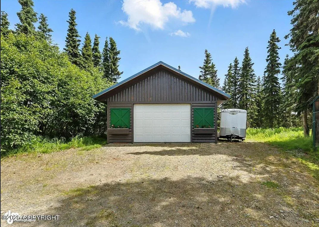CABIN IN THE WOODS. Enjoy Alaska’s summer adventures with room for friends! Cute cabin with additional bunkhouse, both with full bathrooms and a shop/garage. Peek-A-Boo views of the inlet and mountains. Store your boat in the garage and be ready for FISHING ALL SUMMER. Most furnishings will remain with purchase.