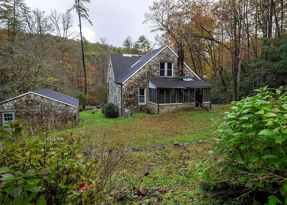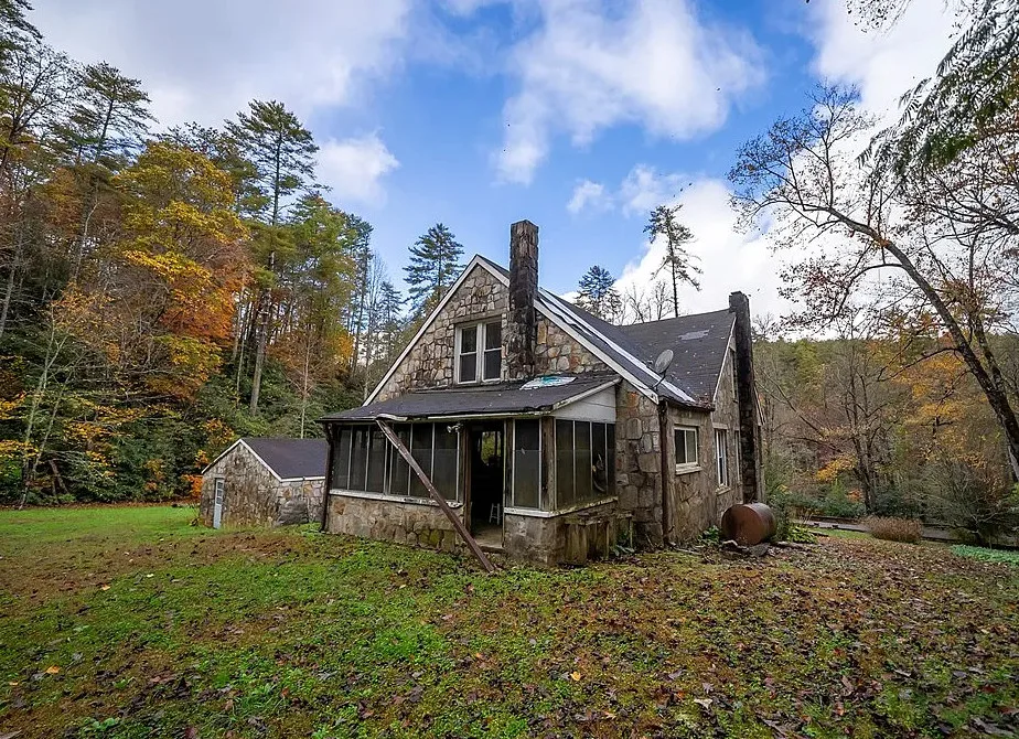 This house has a lot of potential! Love how private it is. The house is known locally as the Rock House. It has been in the same family for 60 years. The house was built in 1948. It is located on over an acre in Robbinsville, North Carolina. The house needs to have roof looked at, but I’m not really seeing water damage inside. The house features a rock exterior, a covered front porch, screened in back porch, original wood floors and baseboards. There are a couple of detached buildings on the property. Four bedrooms and two bathrooms.$189,000